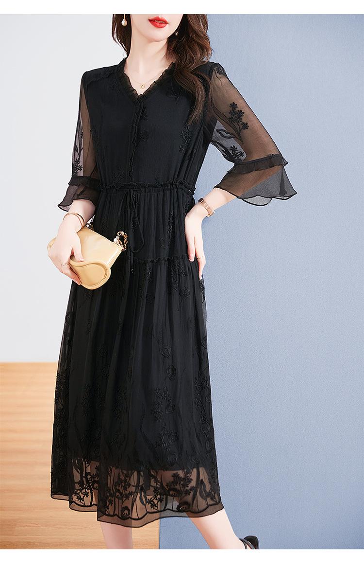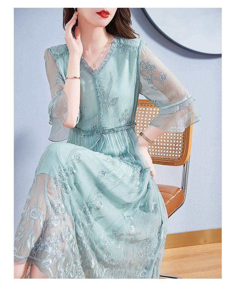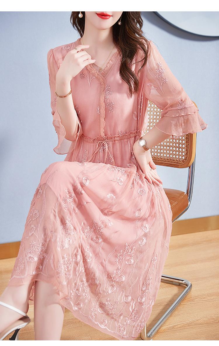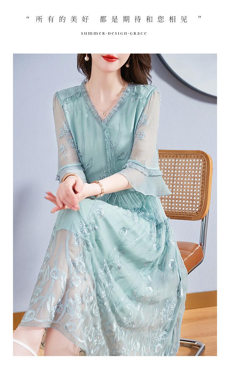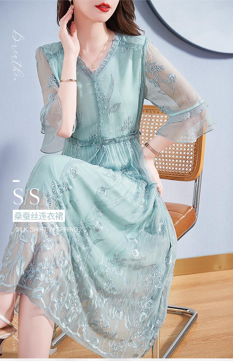 Vestido Original de Seda de Morera para Mujer Verano Elegante Ropa de Trabajo Look Adelgazante de Cintura Falda 82393266