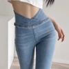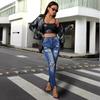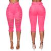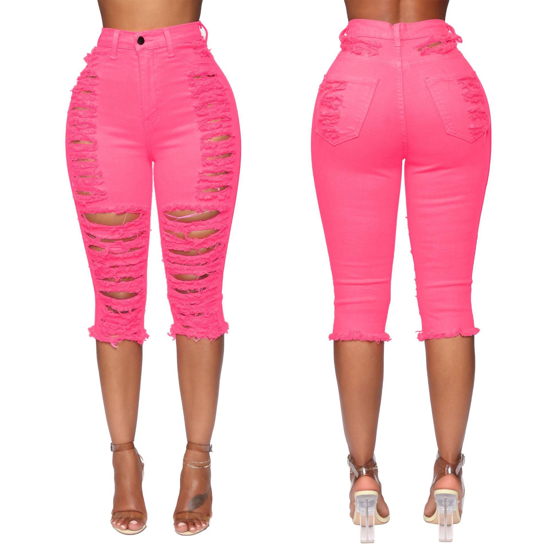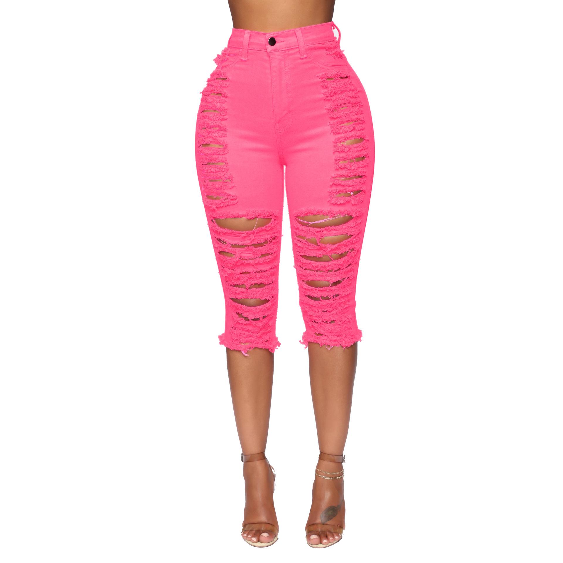 2019 Nueva Moda Europea y Americana Hecho a Mano Deshilachado Cintura Alta Lavado Elástico Sexy Denim Pantalones Recortados