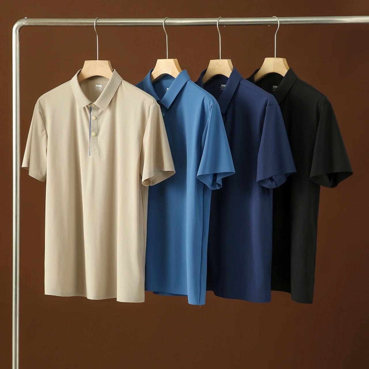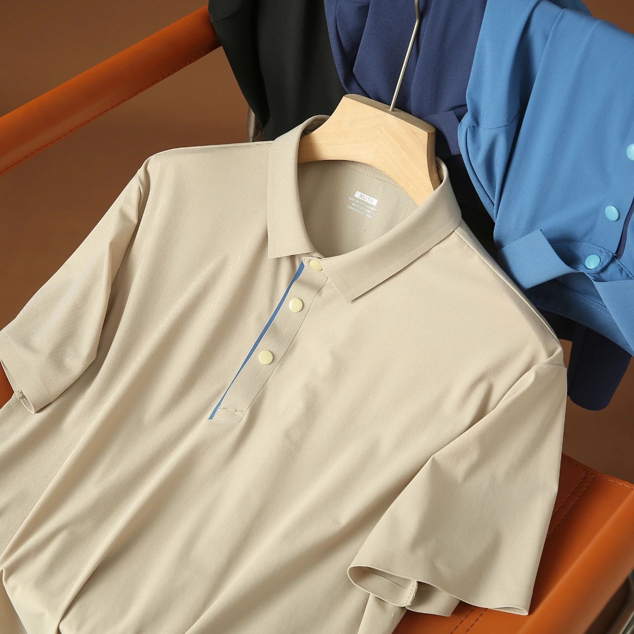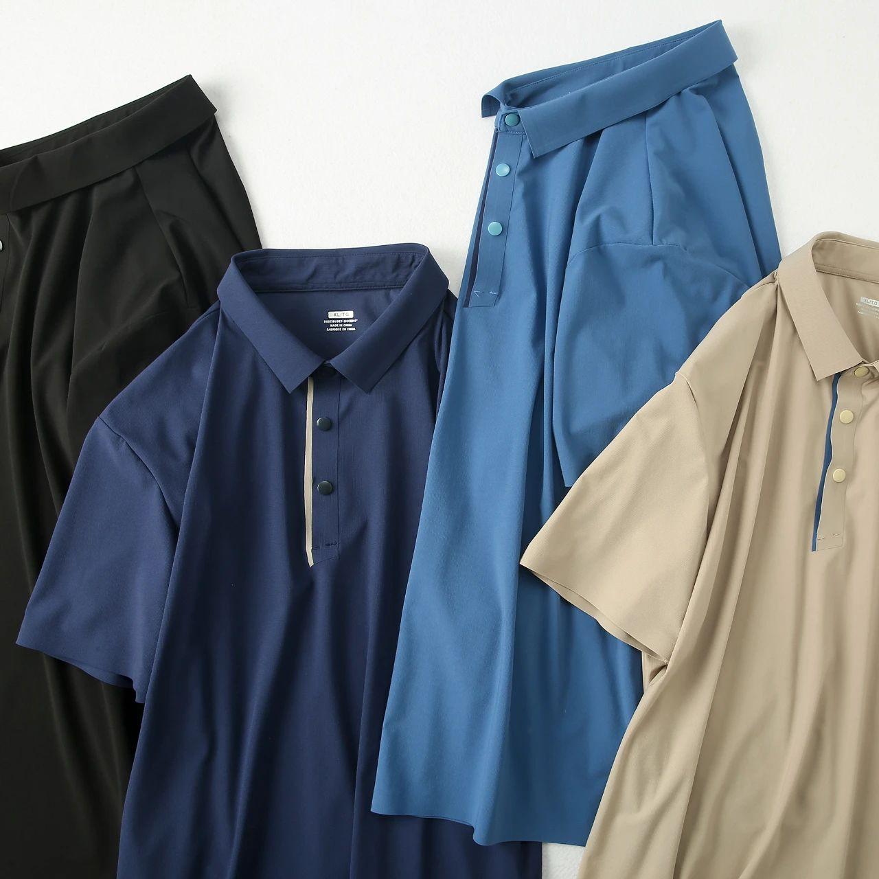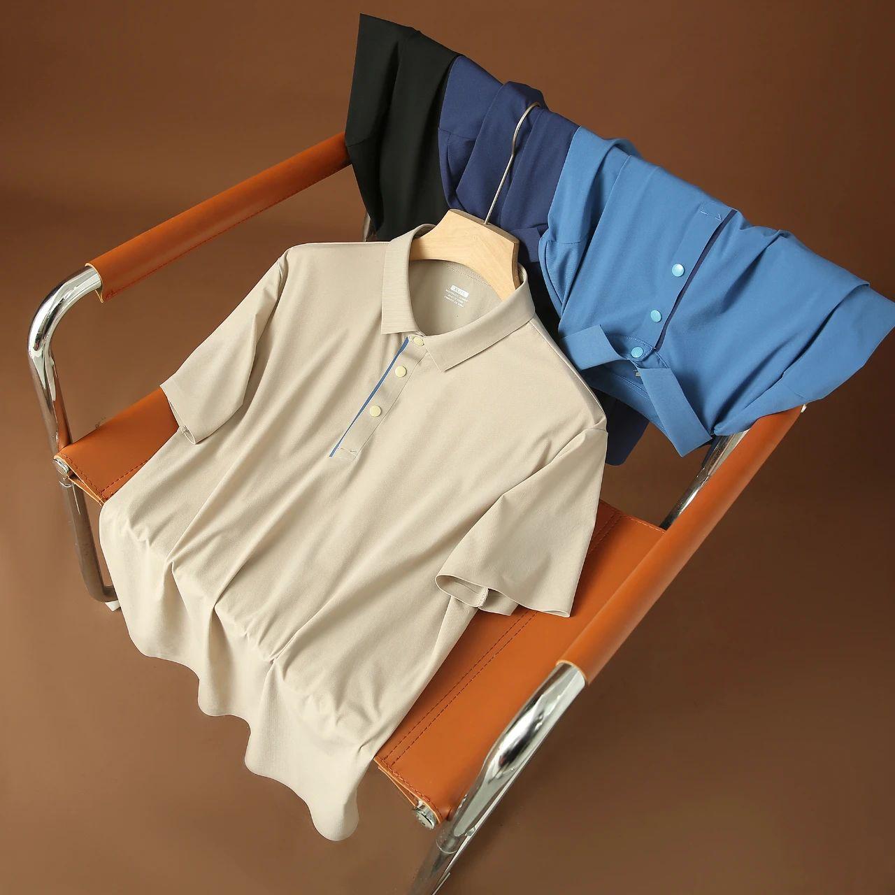 ¡Línea de lujo ligera! ¡Tela de seda de hielo sin costuras! ¡Corte láser! Polo de manga corta para hombre, estilo informal de negocios y actividades al aire libre
