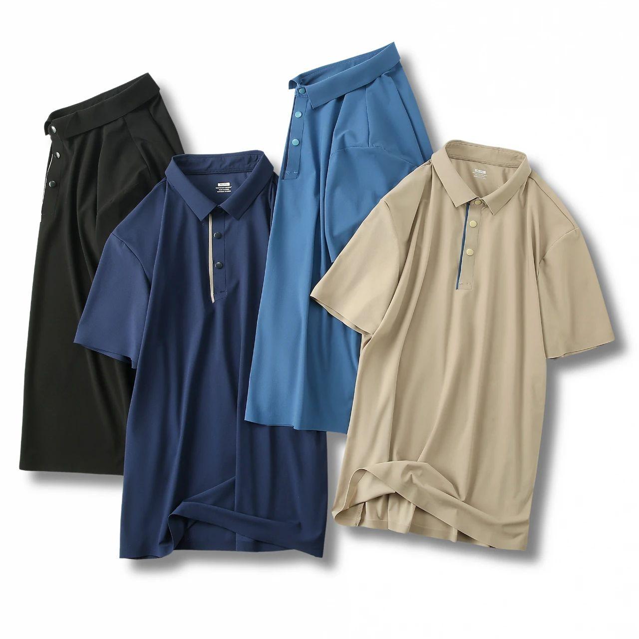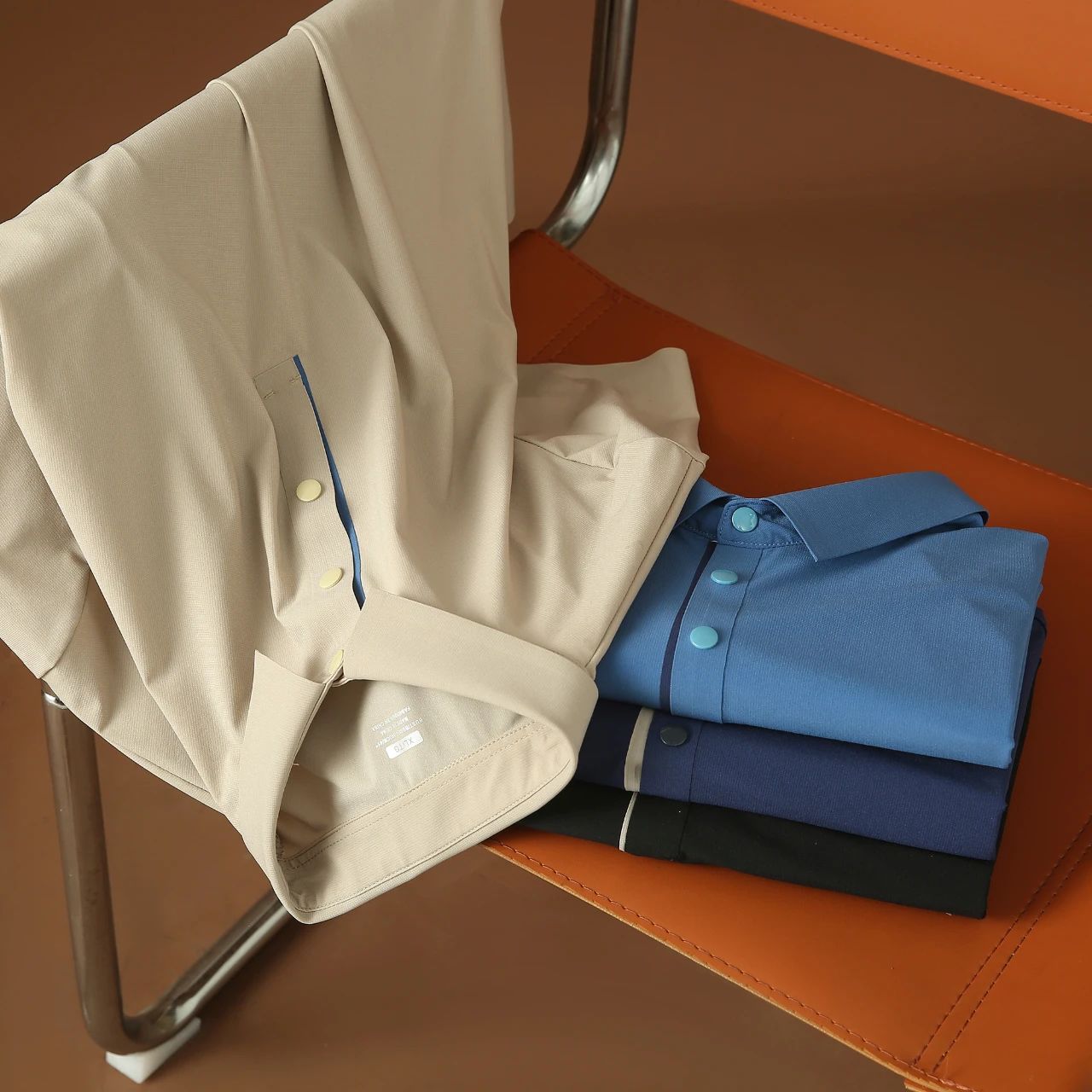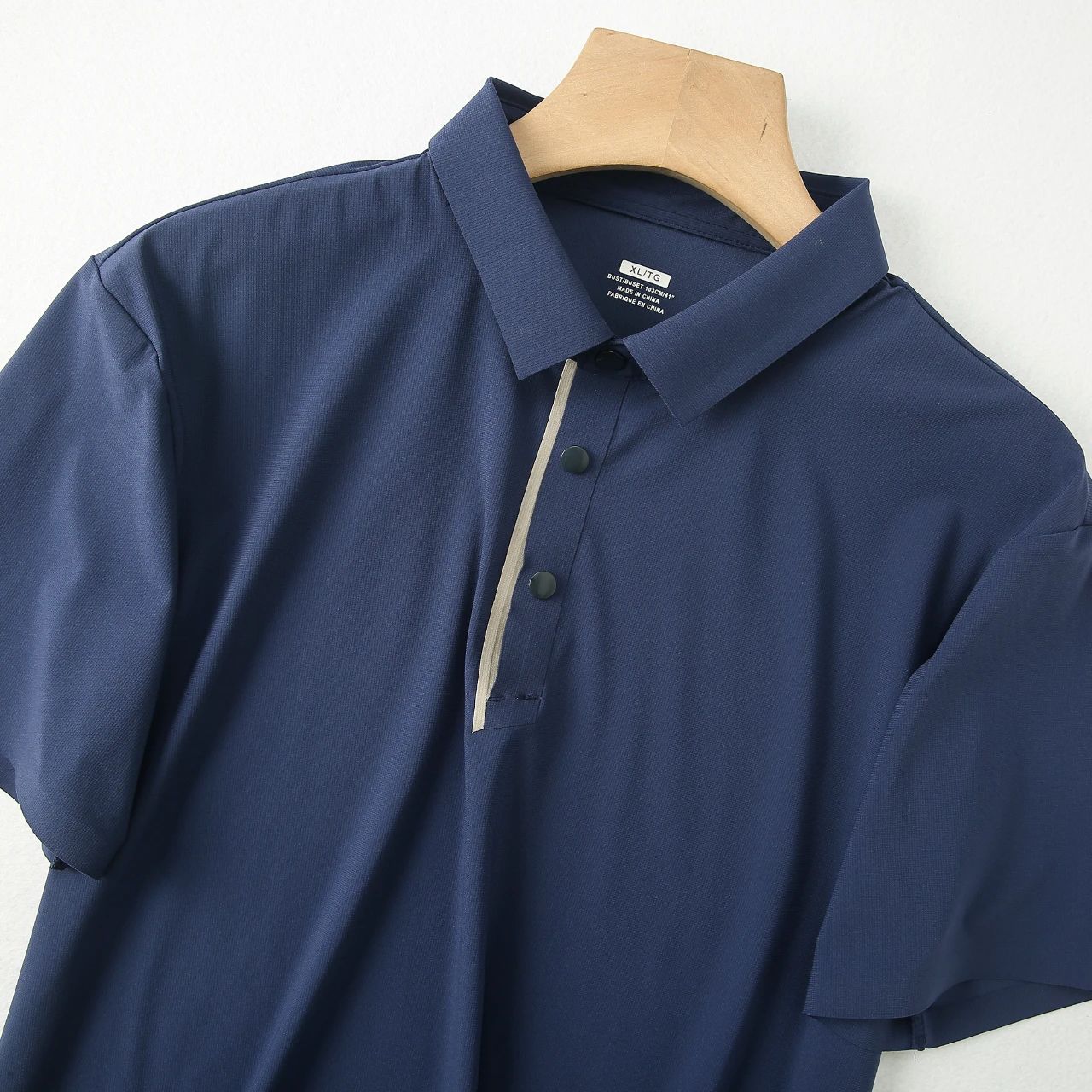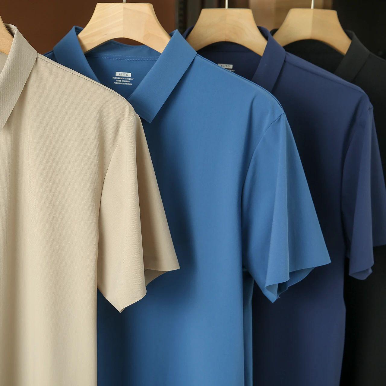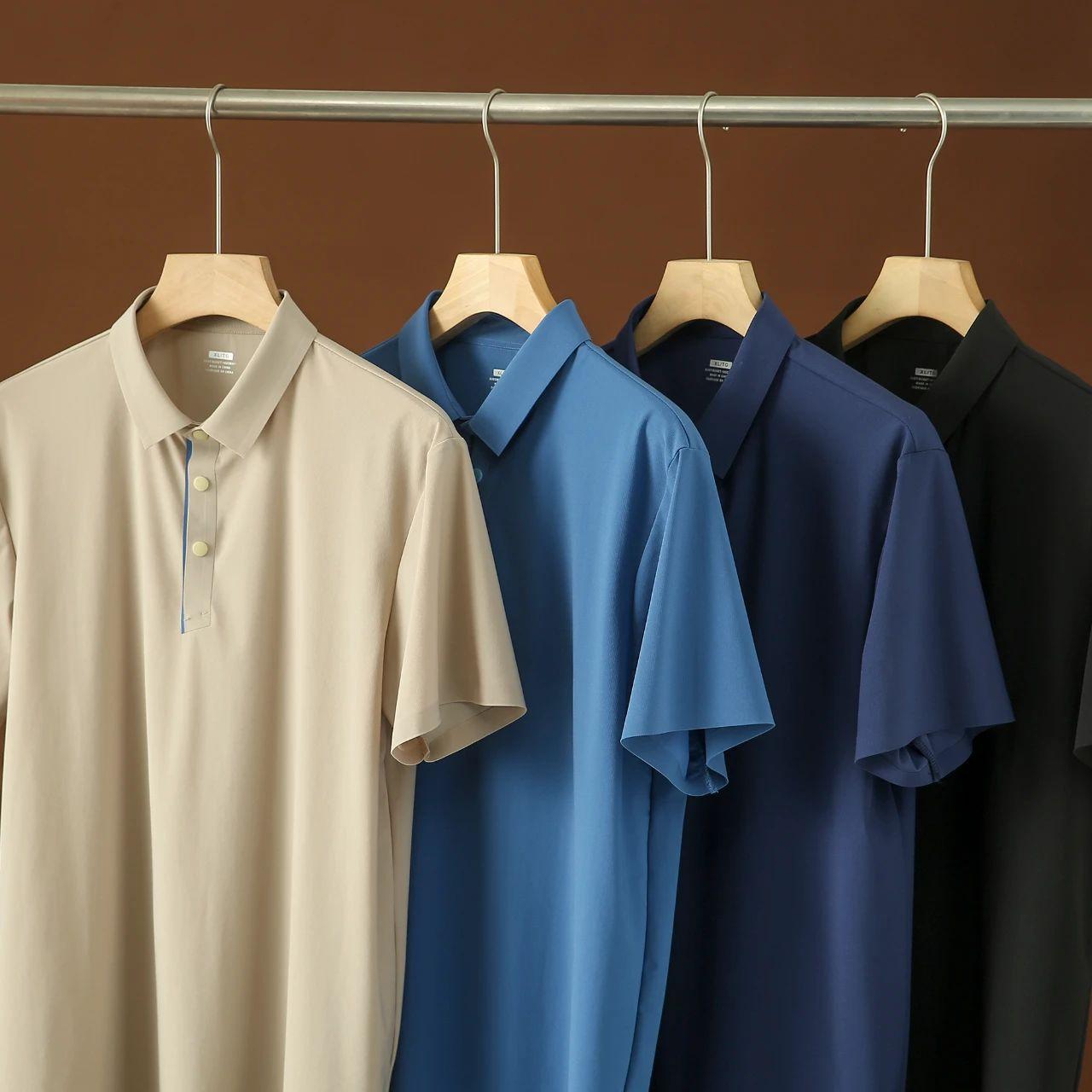 ¡Línea de lujo ligera! ¡Tela de seda de hielo sin costuras! ¡Corte láser! Polo de manga corta para hombre, estilo informal de negocios y actividades al aire libre