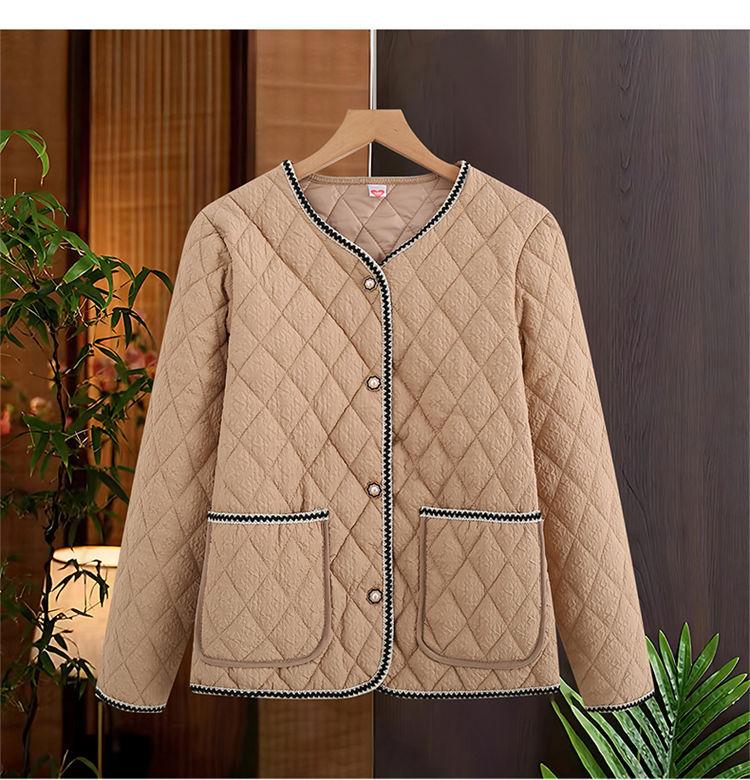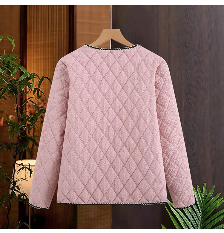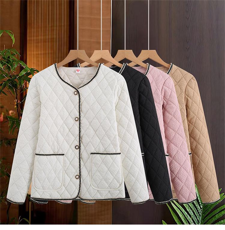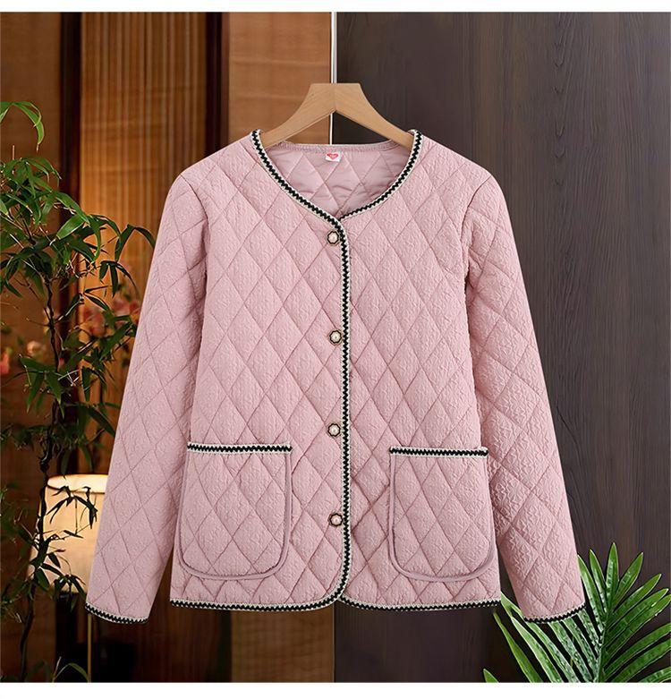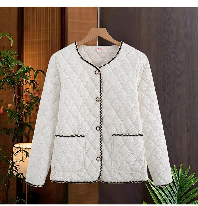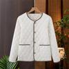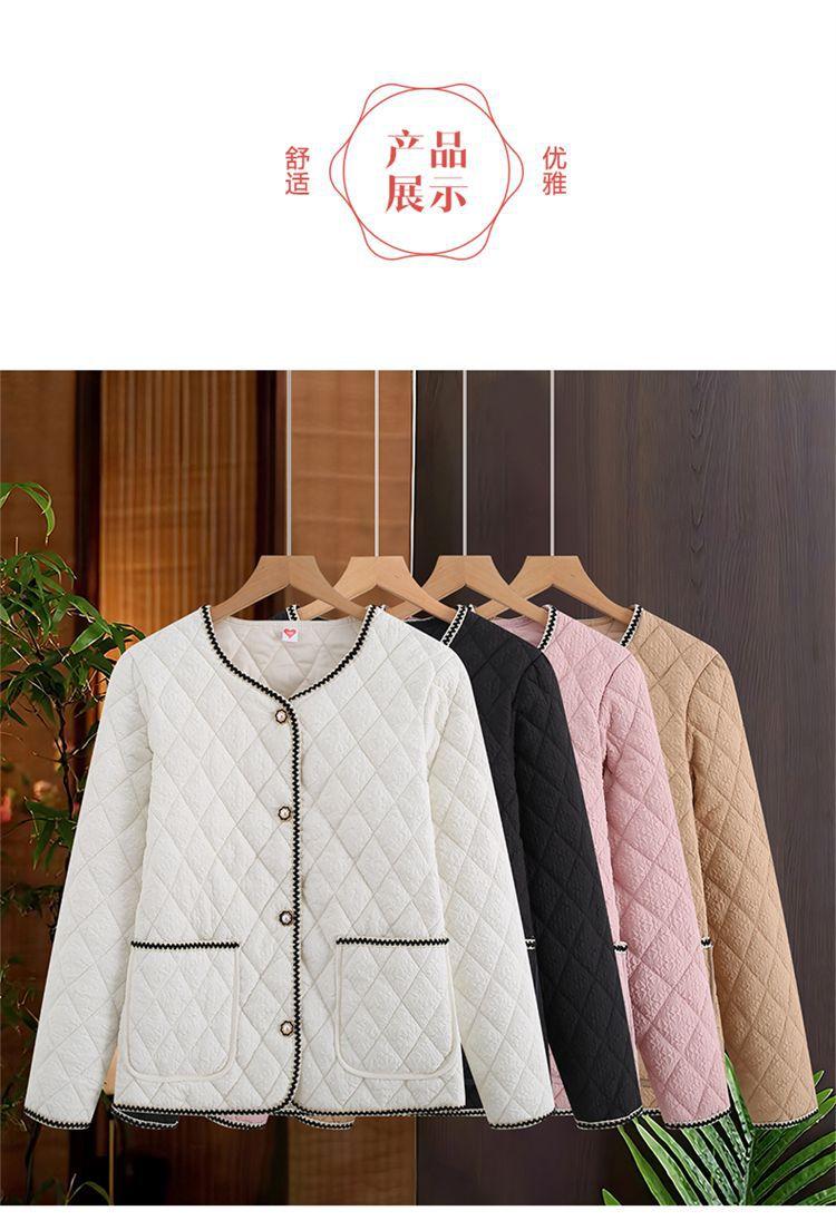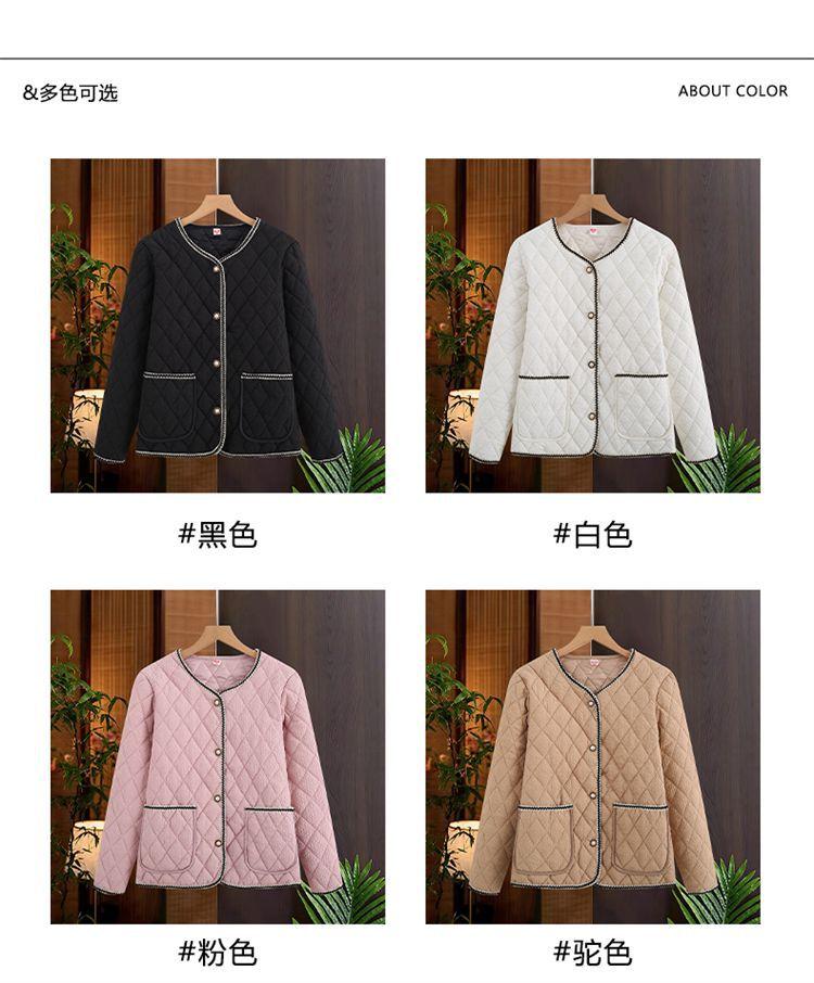 Abrigo ligero acolchado de algodón estilo Xiaoxiang para mujer, abrigo para madre joven, ropa de otoño e invierno, rombo nuevo 2024, abrigo corto acolchado de algodón para mujer con cuello redondo