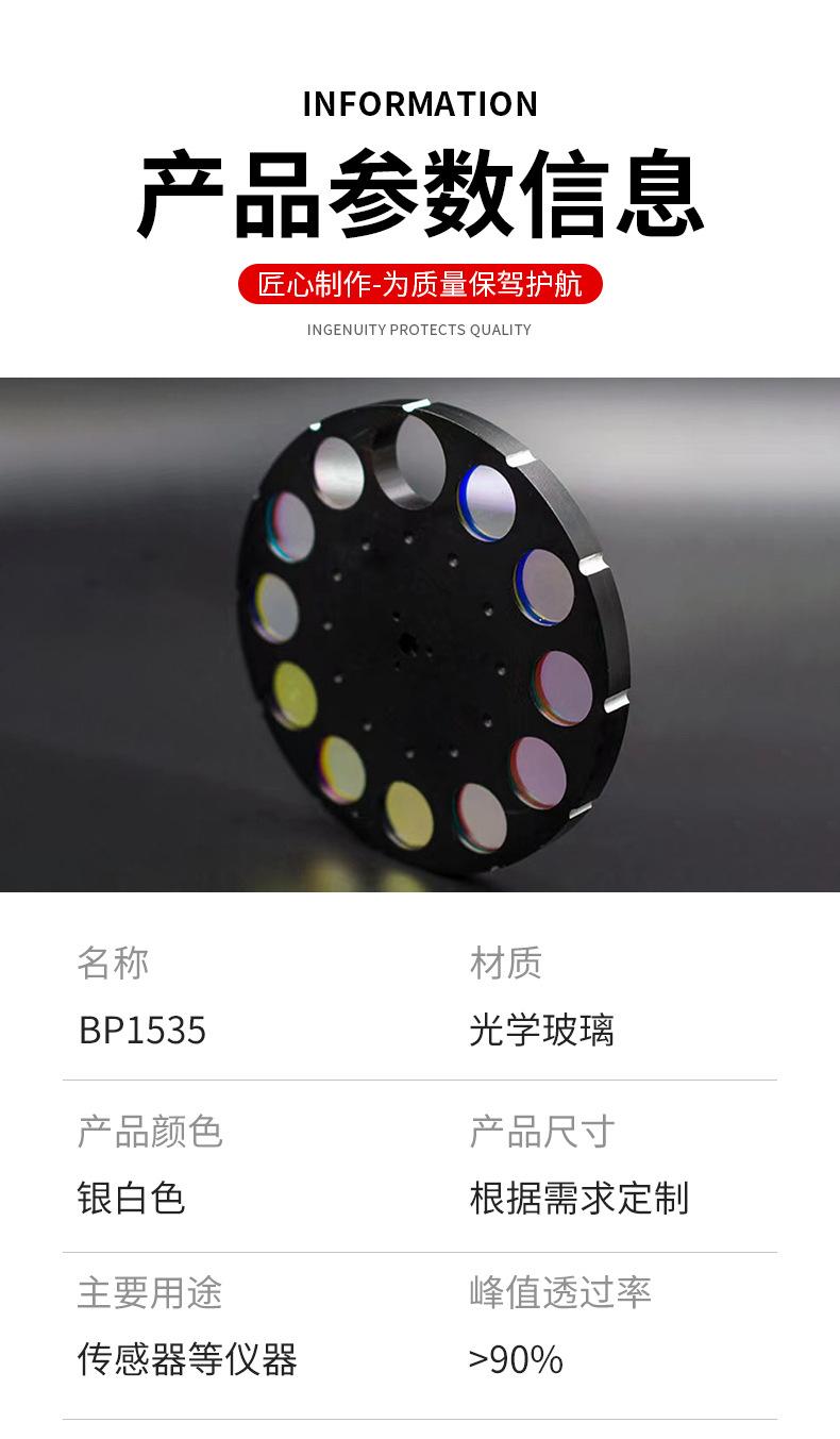 Filtro de vidrio óptico BP1535nm filtro infrarrojo fabricantes lente de detector de análisis de calidad del agua