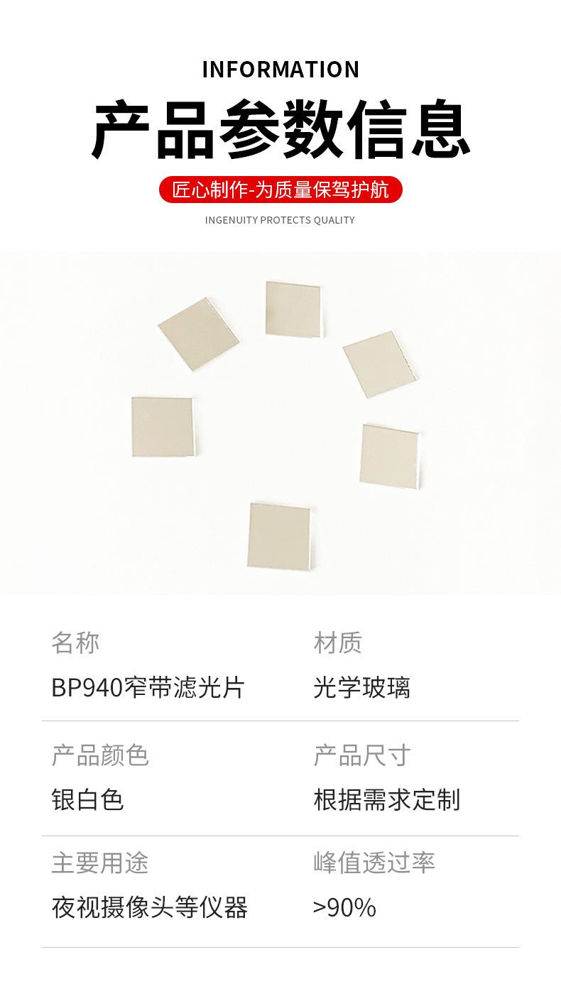 Filtro de paso de banda 940 para instrumentos ópticos Filtro 940 para reconocimiento facial Lentes recubiertas de vidrio óptico
