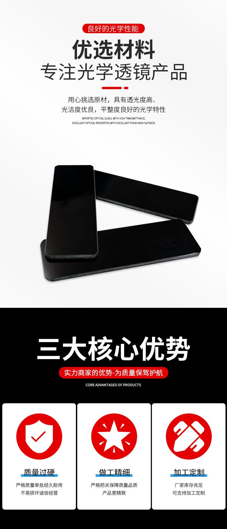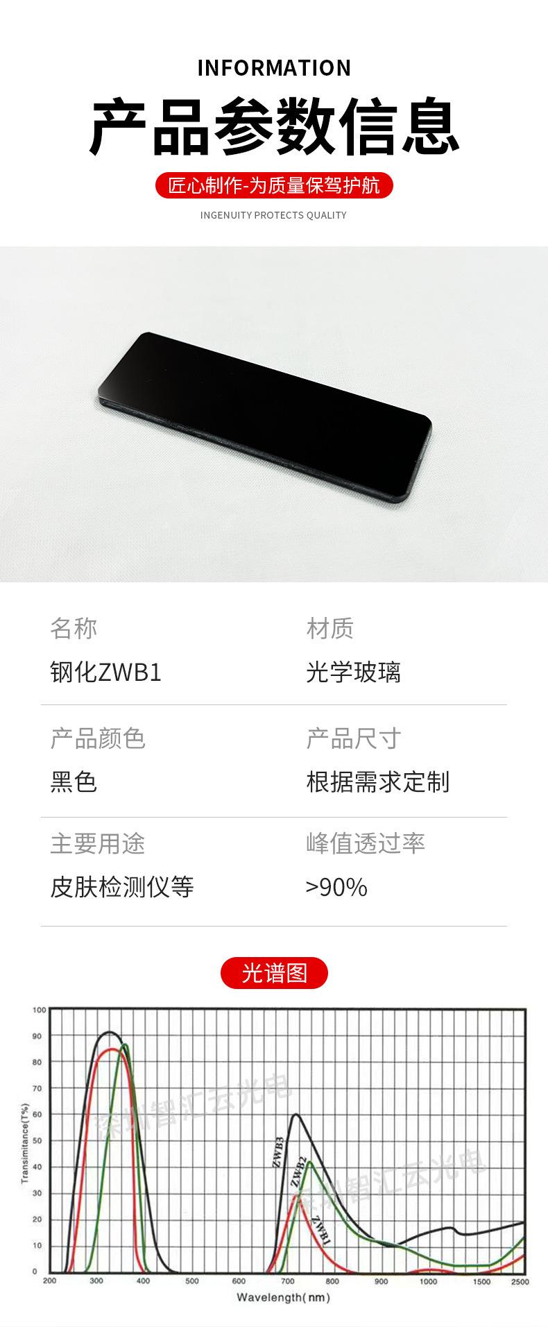 Filtro UV negro de alta permeabilidad ZWB1 serie vidrio óptico negro instrumento de detección de piel lente óptica