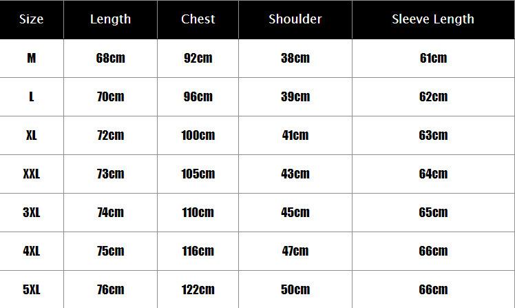 M, L, XL, XXL, XXXL, 4XL, 5XL