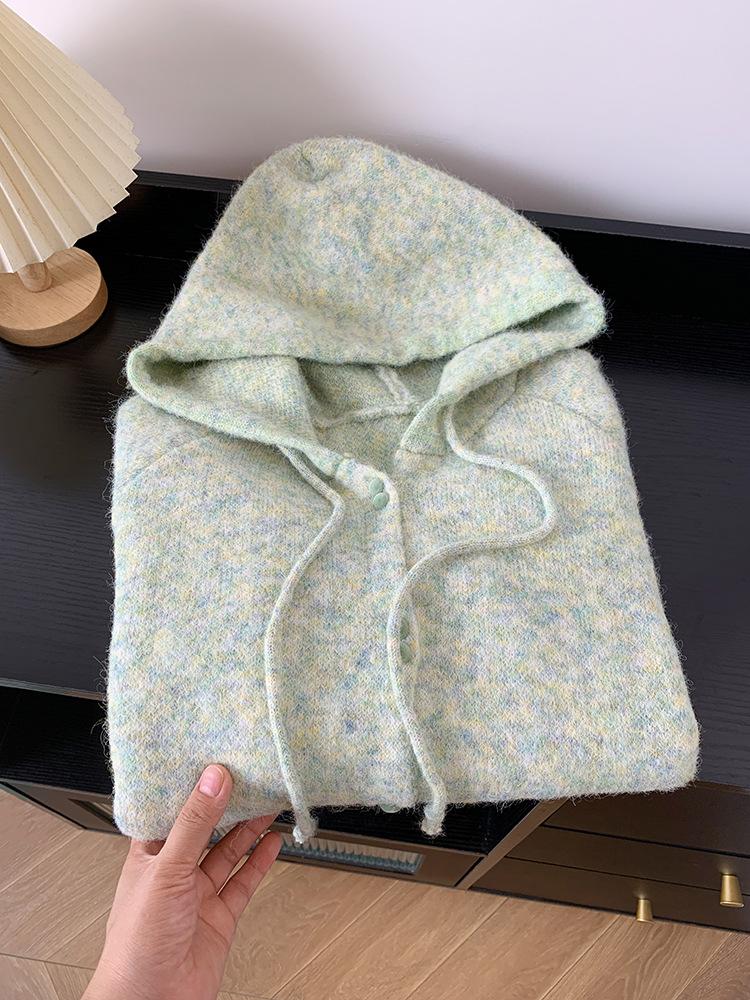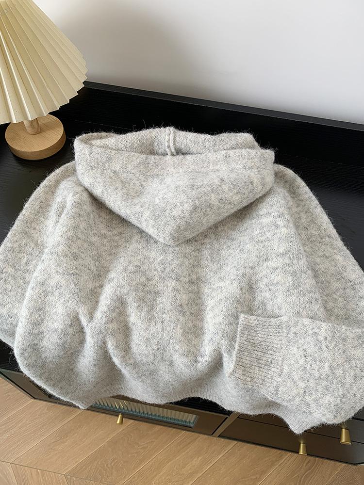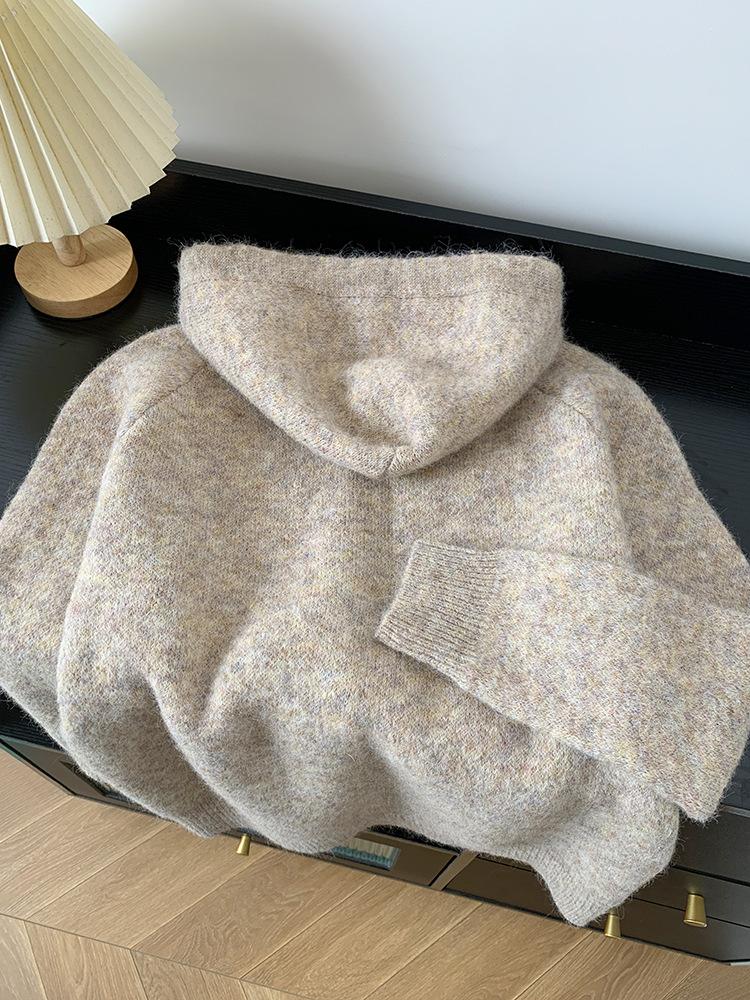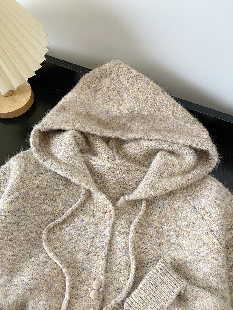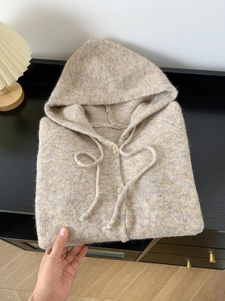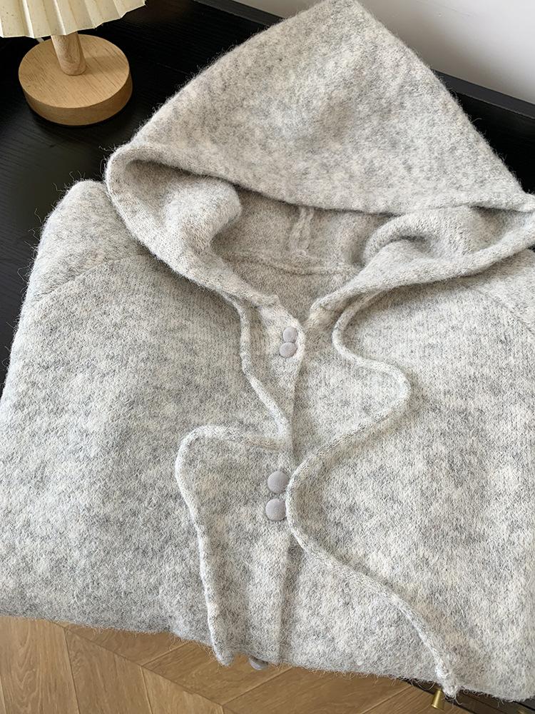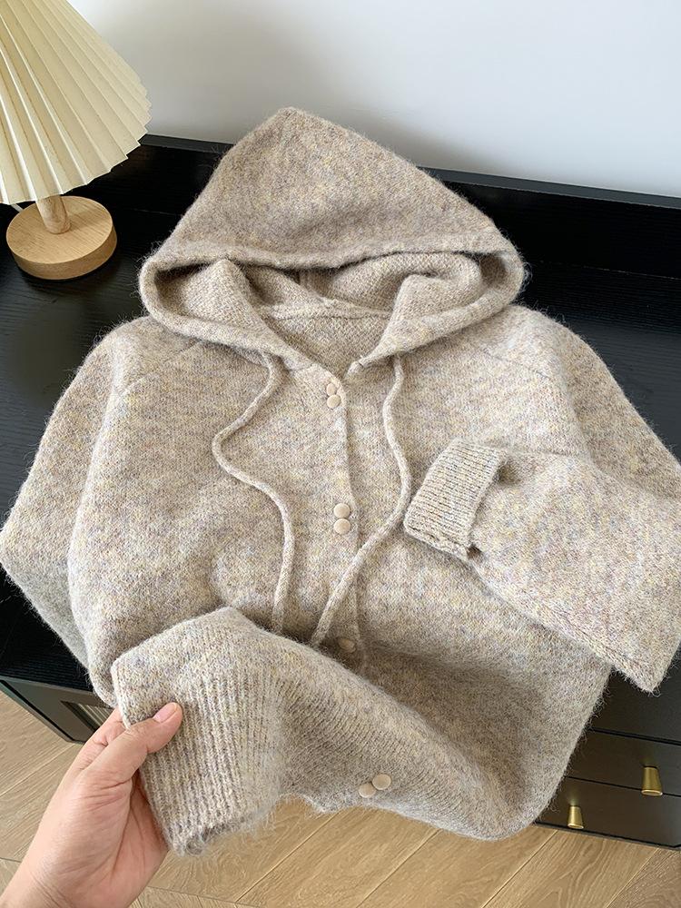 Cárdigan de punto con capucha de estilo holgazán para mujer 2024 Otoño e Invierno Look holgado adelgazante Suéter versátil para mujer