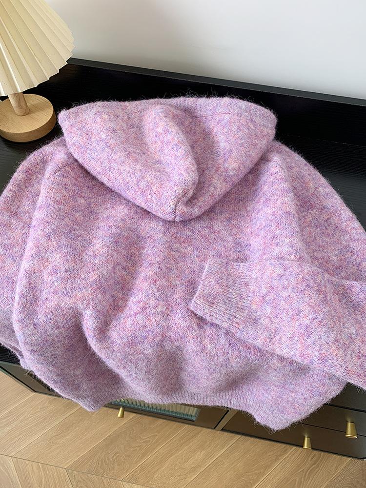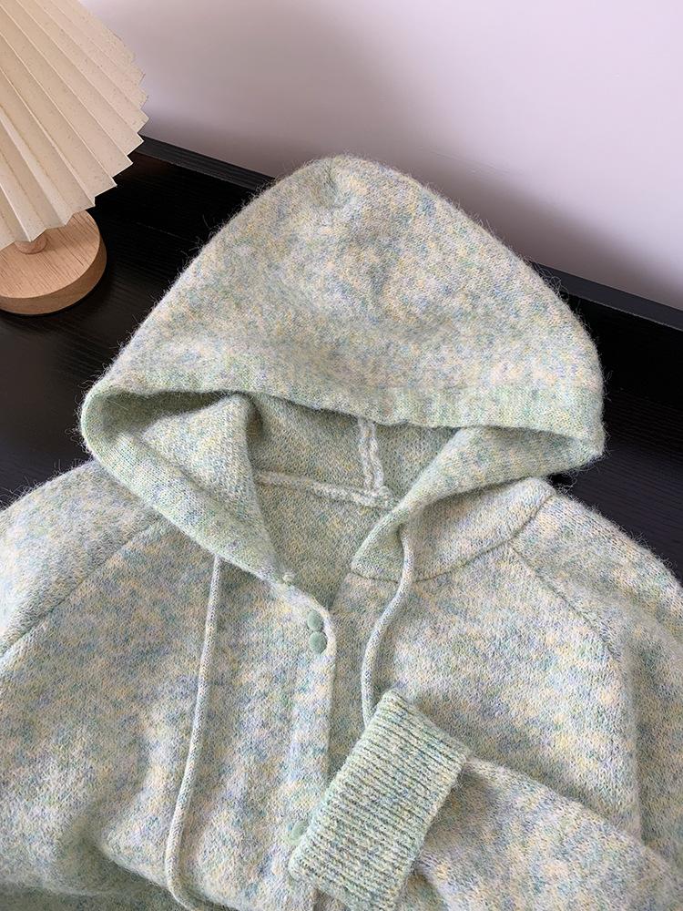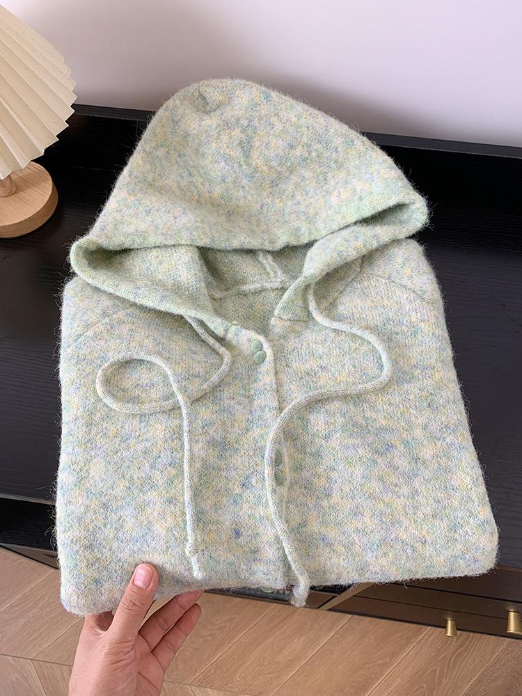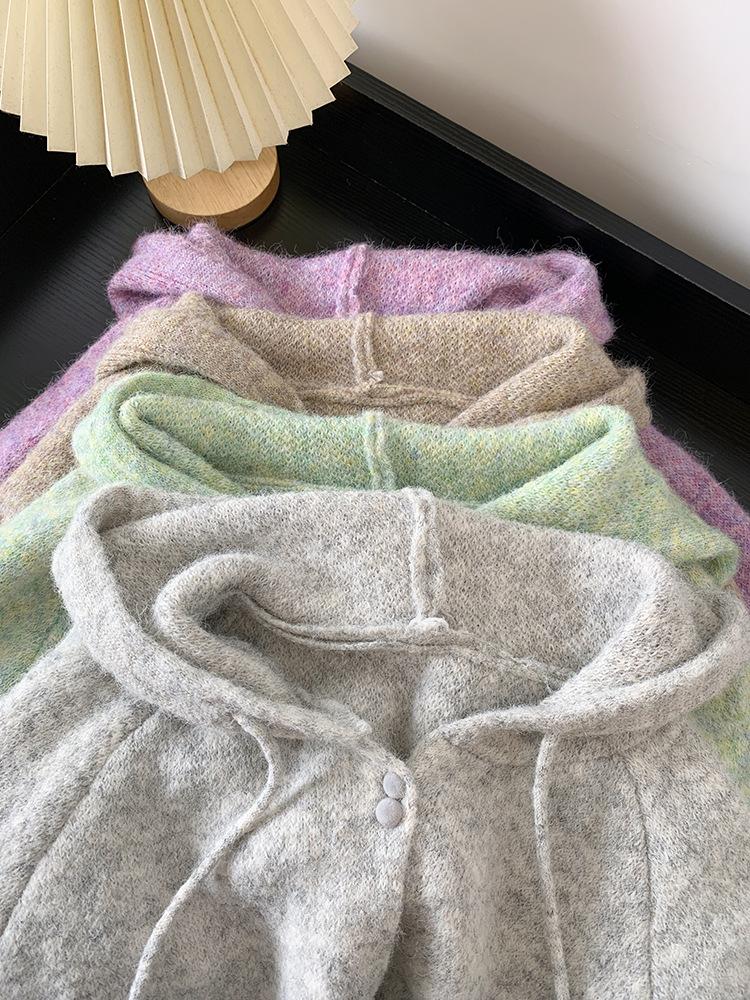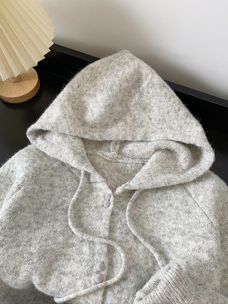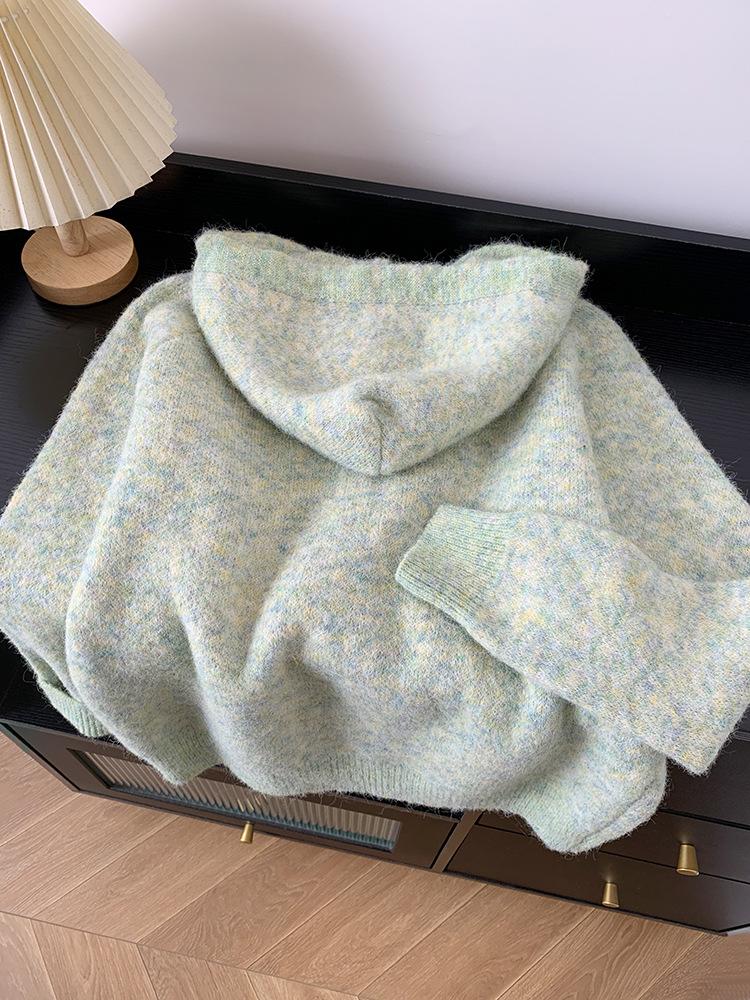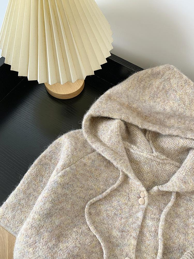 Cárdigan de punto con capucha de estilo holgazán para mujer 2024 Otoño e Invierno Look holgado adelgazante Suéter versátil para mujer
