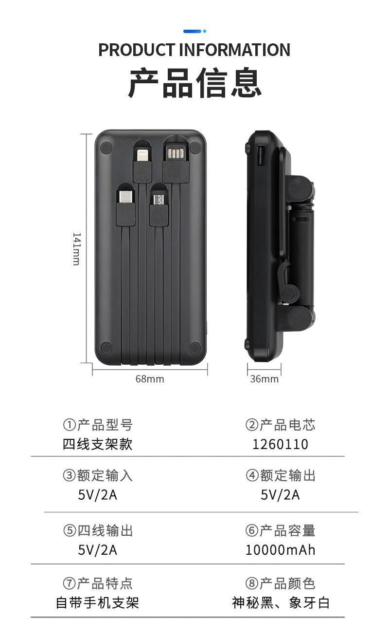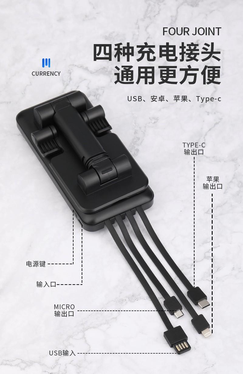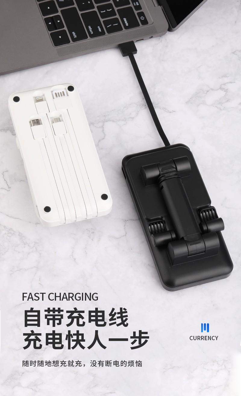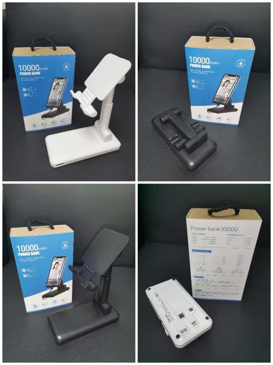 Soporte para teléfono móvil tres en uno, energía móvil en vivo con carga de cuatro cables, tesoro de 10000 mAh, fuente de regalo de fábrica