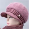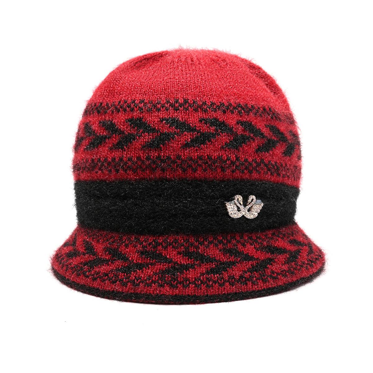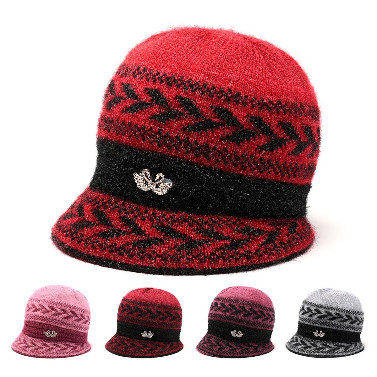 Sombrero de invierno nuevo para mujer de mediana edad y anciana, sombrero de lana cálido con forro polar para anciana, sombrero tejido para abuela con protección para las orejas