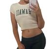 Camiseta de comercio exterior transfronterizo, moda de verano, nueva impresión de letras, informal, ajustada, de manga corta, sencilla, estilo Hong Kong, top de ombligo