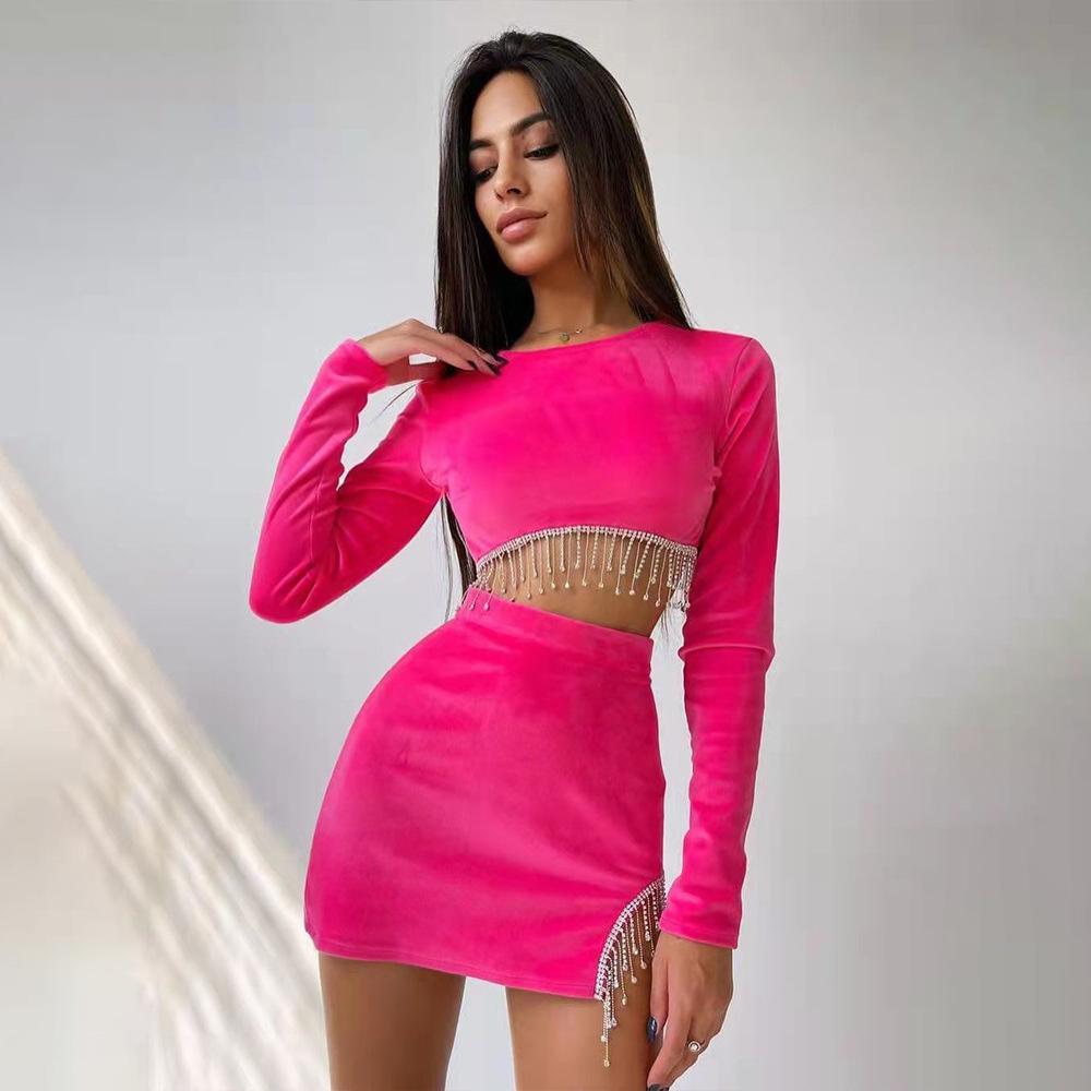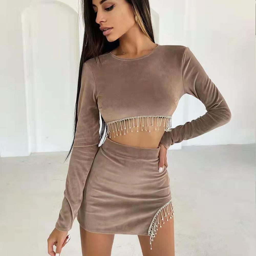 2023 Amazon primavera ins nuevo traje de mujer con borlas sexy de manga larga y cadera estilo Chanel moda femenina