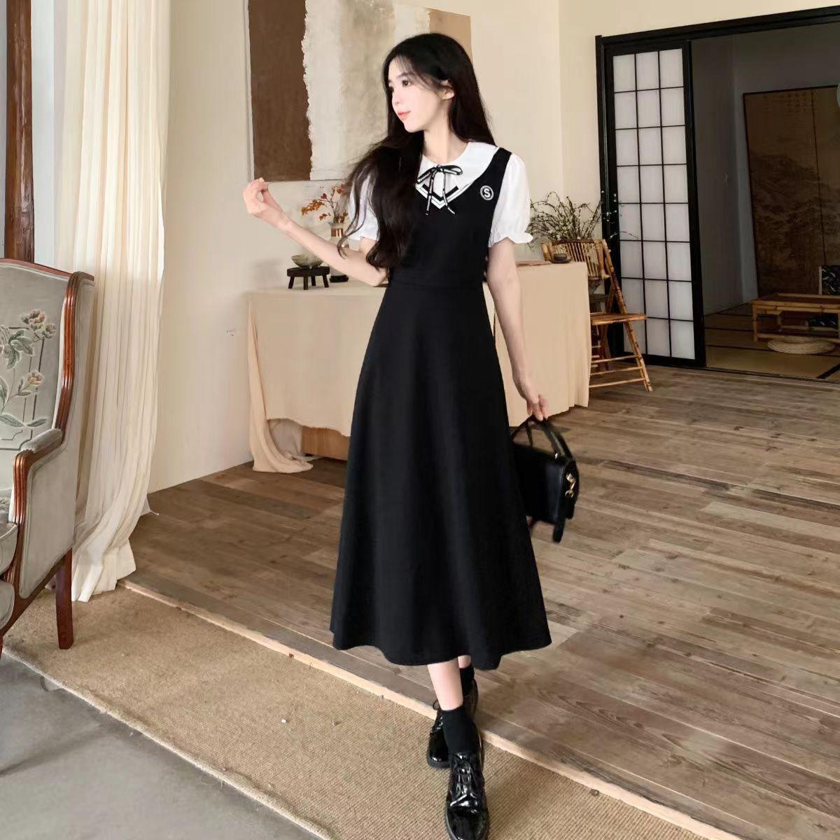 Vestido de talla grande para mujer, nuevo vestido de verano de estilo coreano, estilo académico, elegante, de corte A, para chica gordita, que cubre la piel, adelgazante, de longitud media.
