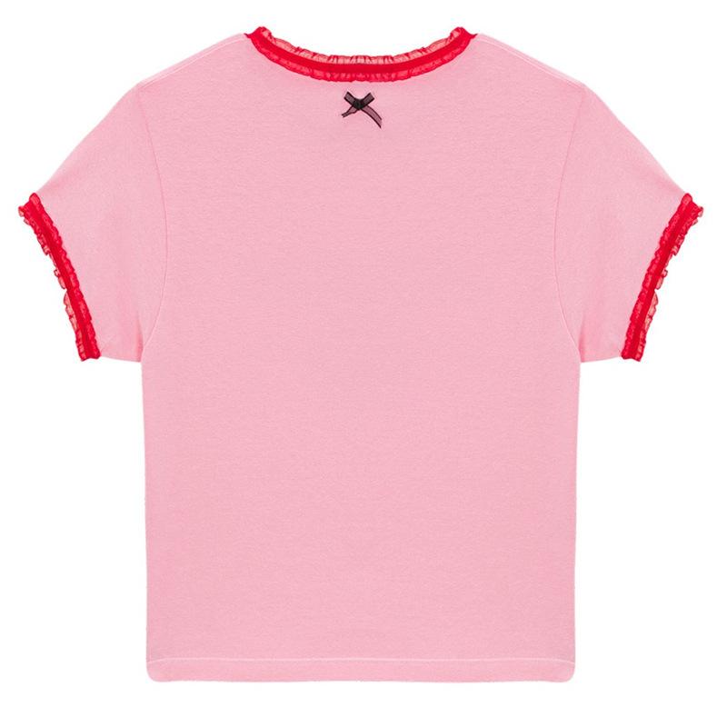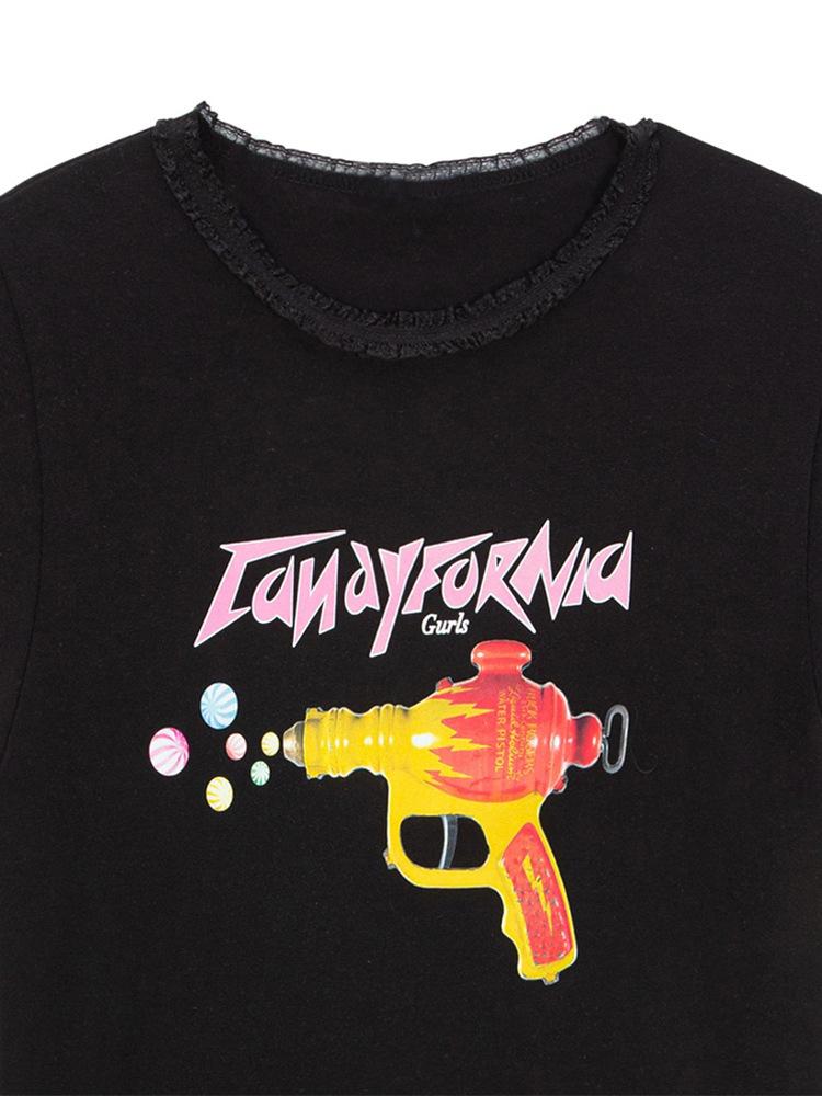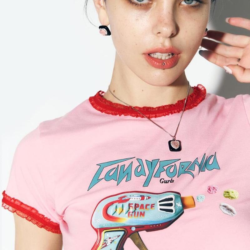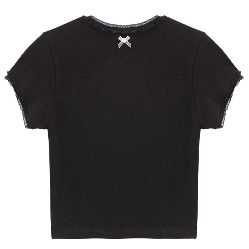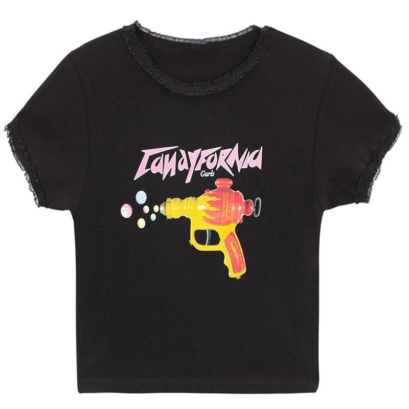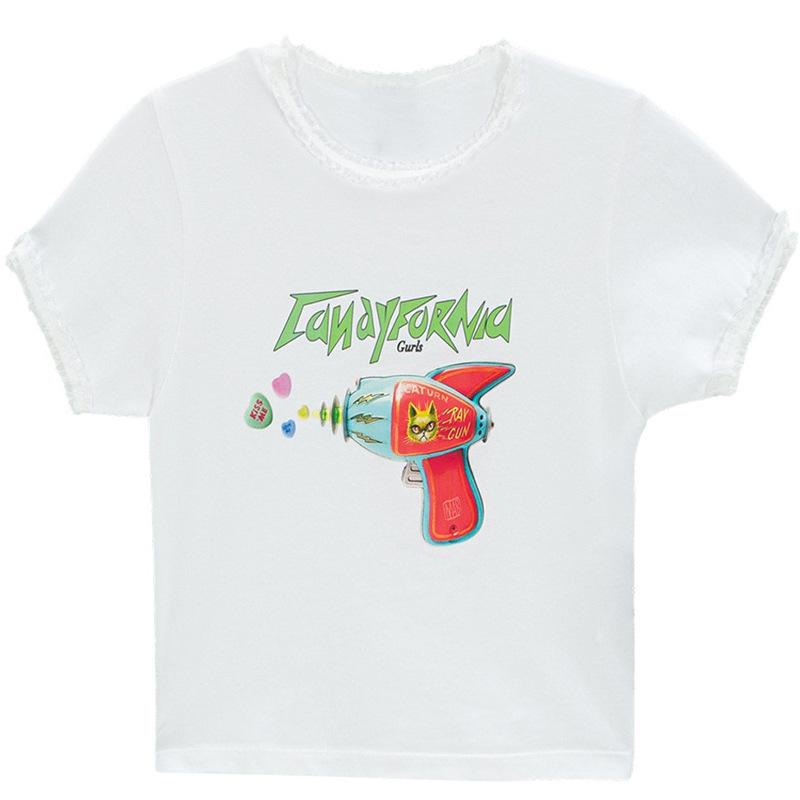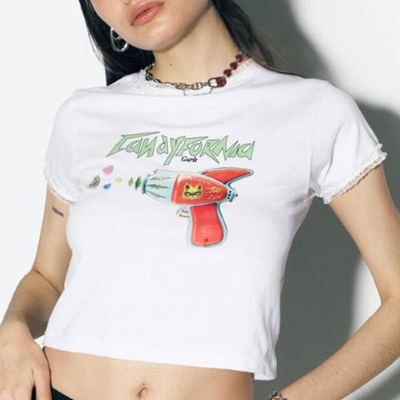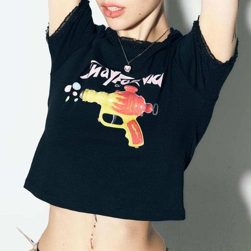 Ropa Nueva de Primavera y Verano 2024 para Mujer Ins Europeo y Americano Calle Estampado de Letras Encaje Ombliguera Corta Sexy para Mujer