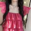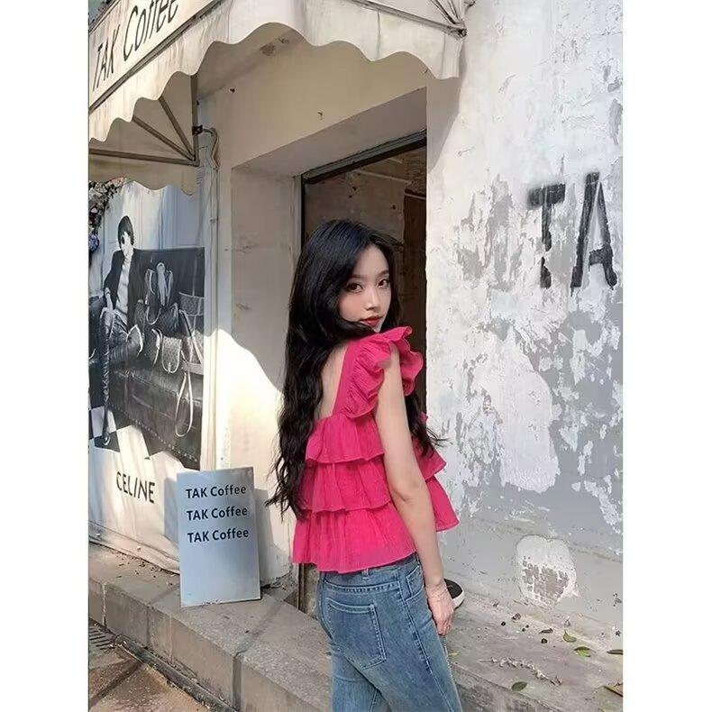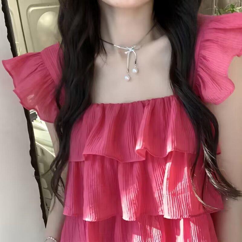 2025 Súper Hada Cuello Cuadrado Francés Manga Corta Cintura Camisa de Gasa Diseño Nicho Dulce Camisa Pequeña para Mujer