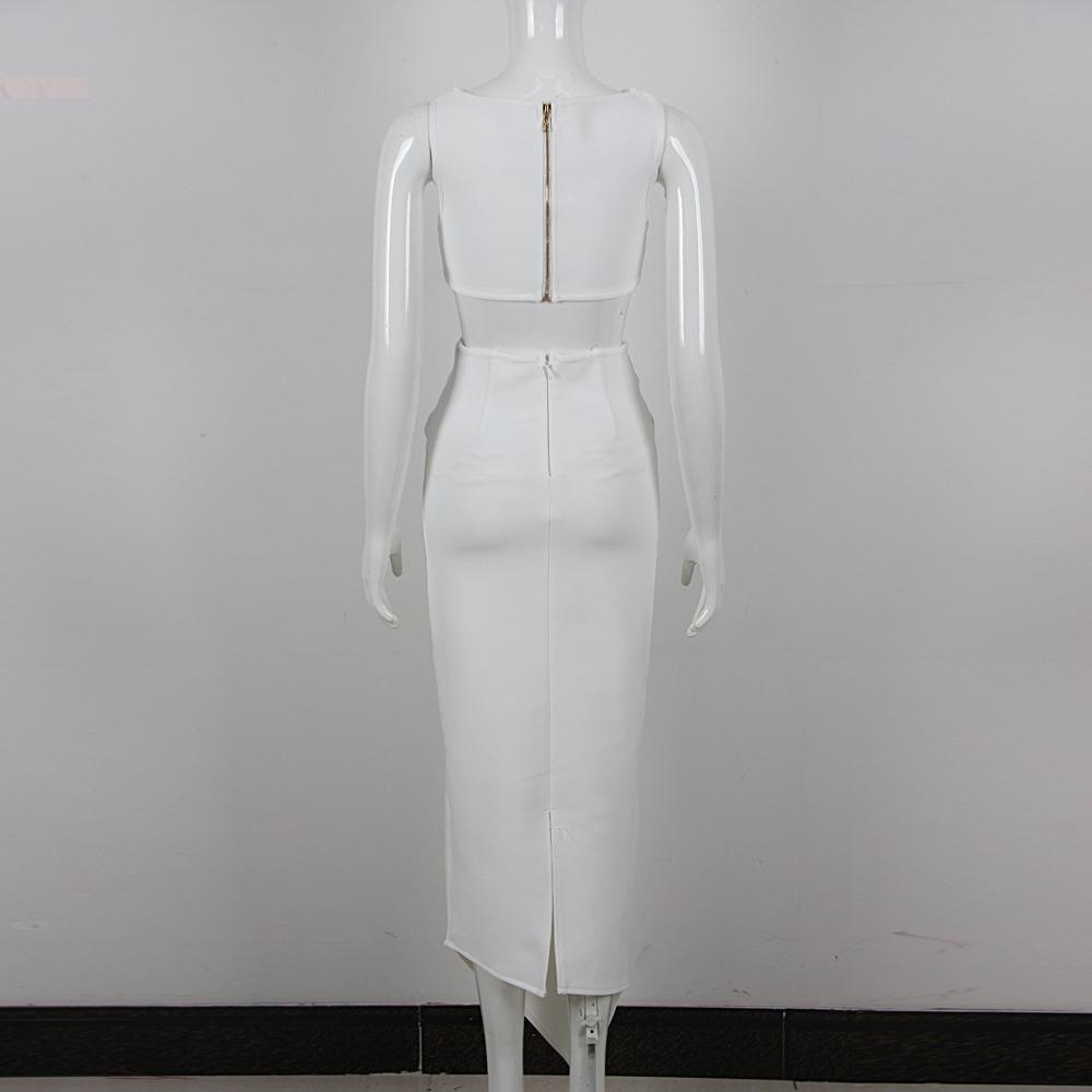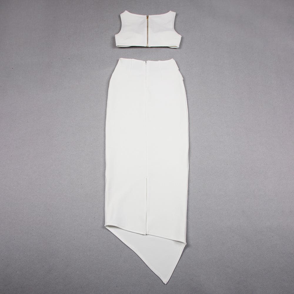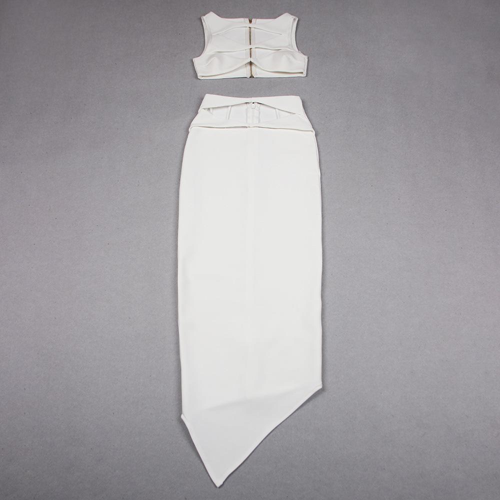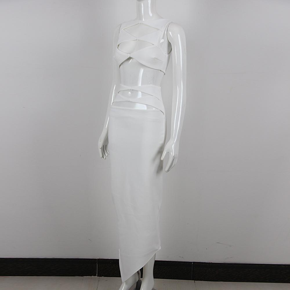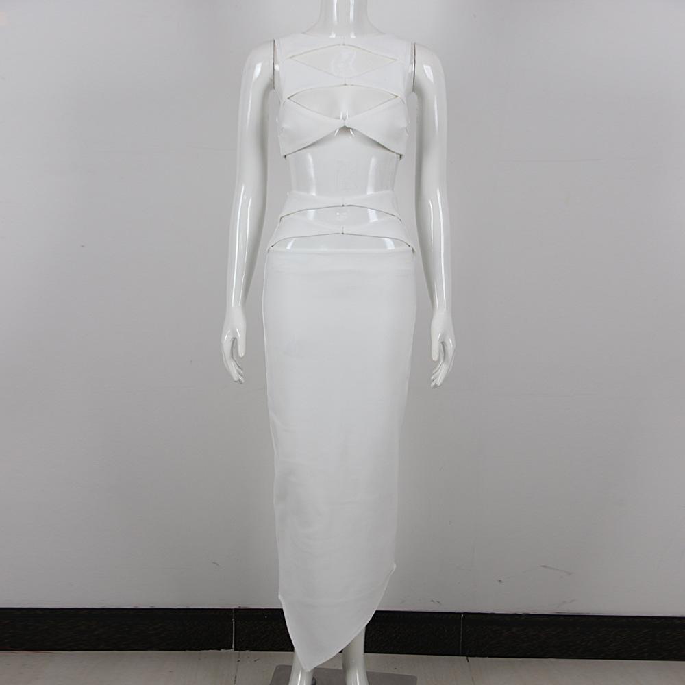 Primavera y Verano Moda Nueva Europea y Americana para Mujer Sexy Hueco Ajustado Cintura Alta Vendaje Cadera Vestido Conjunto de Dos Piezas