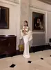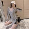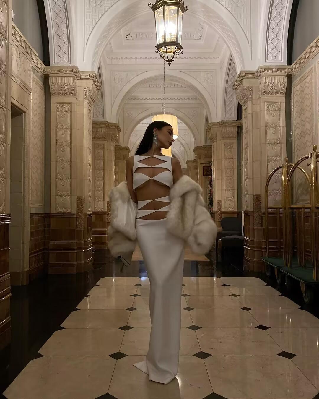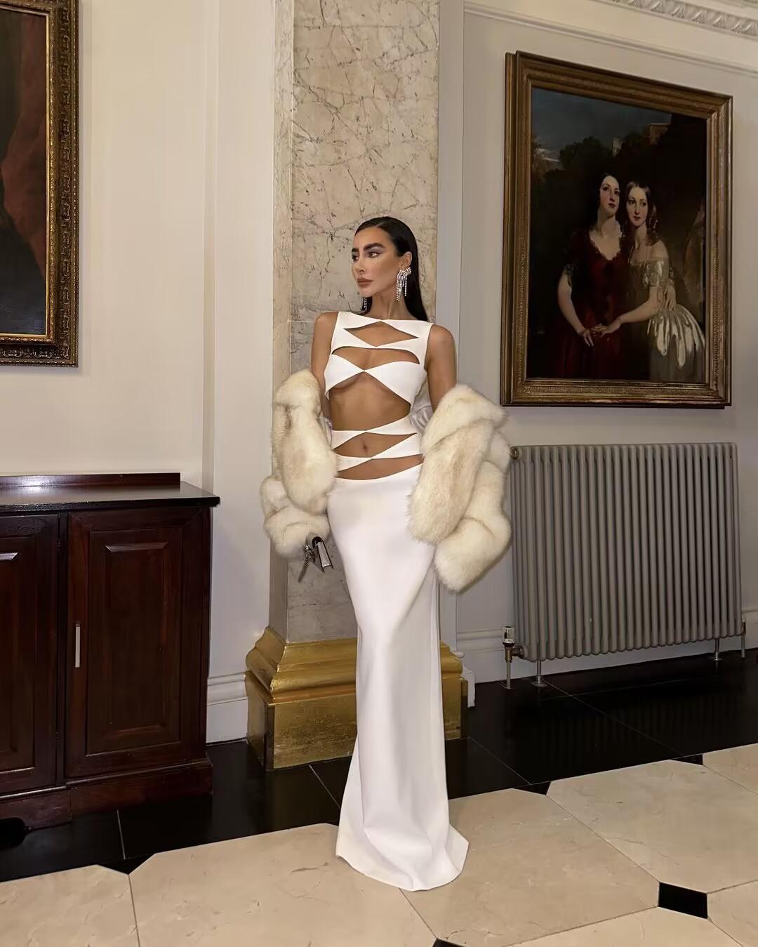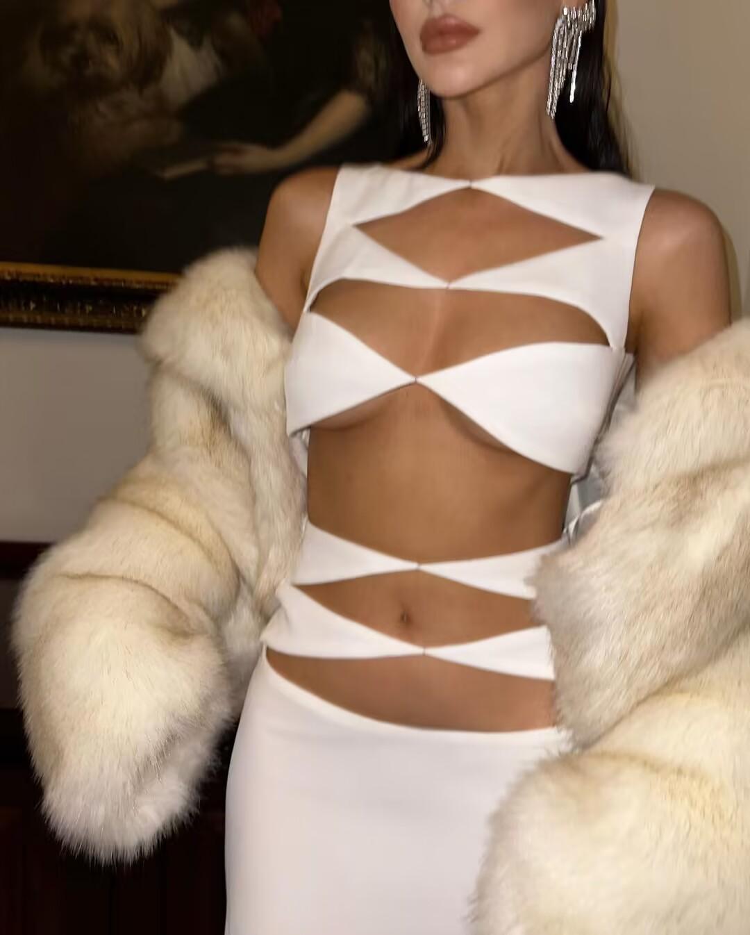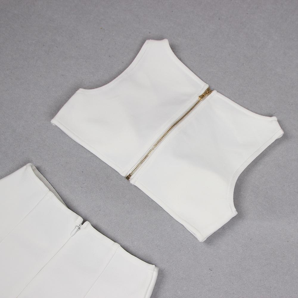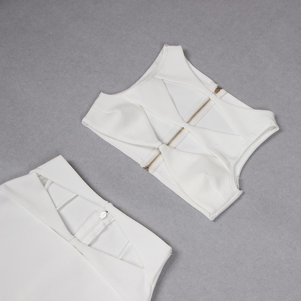 Primavera y Verano Moda Nueva Europea y Americana para Mujer Sexy Hueco Ajustado Cintura Alta Vendaje Cadera Vestido Conjunto de Dos Piezas