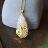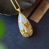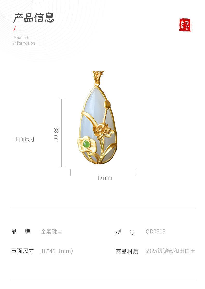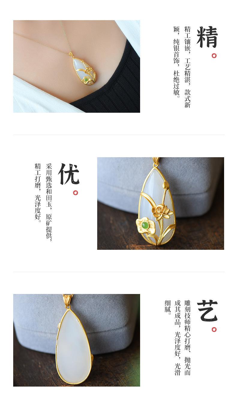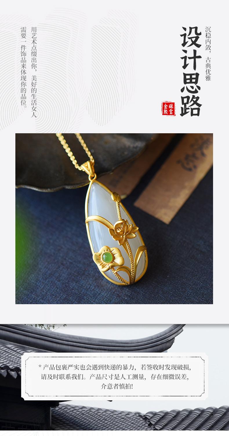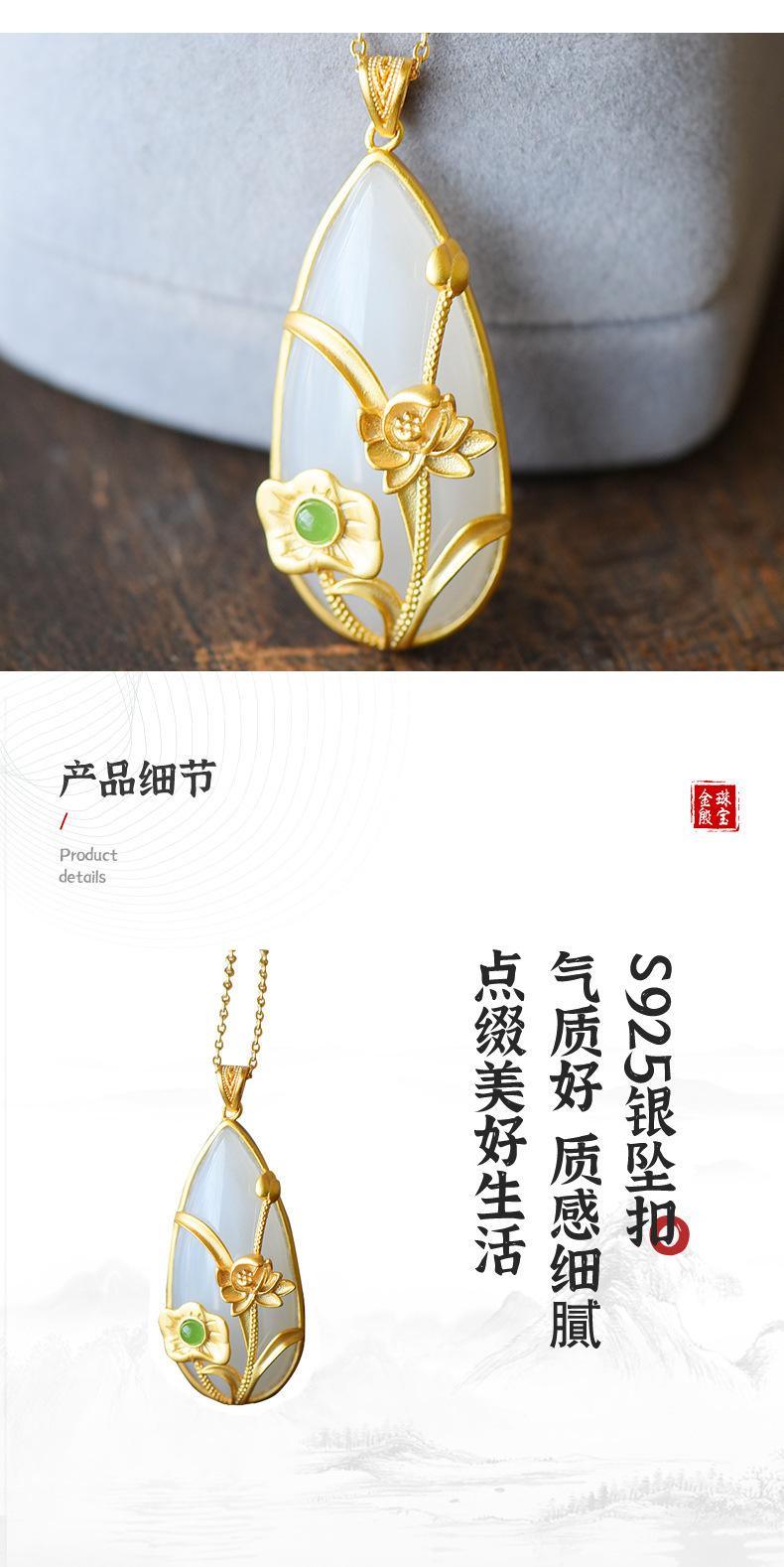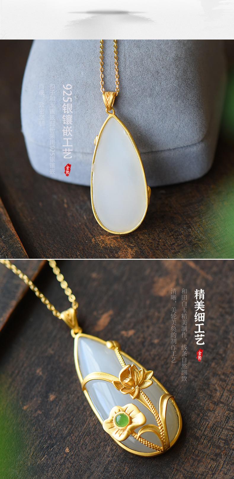 Pingente de jade Hetian retrô da moda, folha de lótus dourada, atmosfera simples, pingente de jade branco Hetian incrustado em prata s925