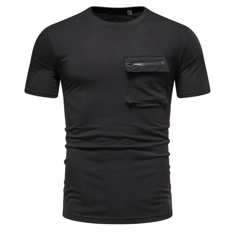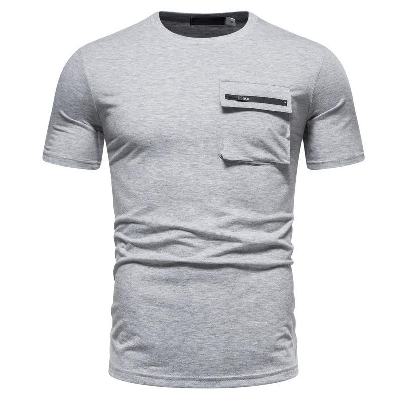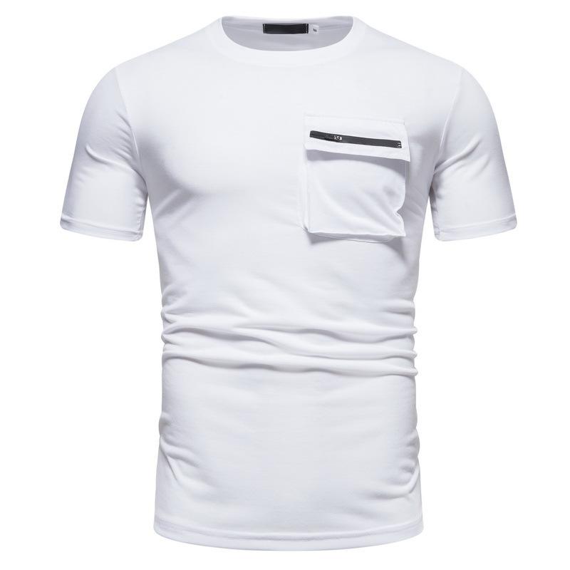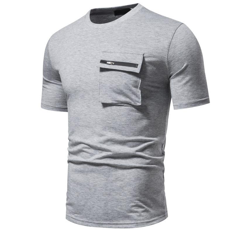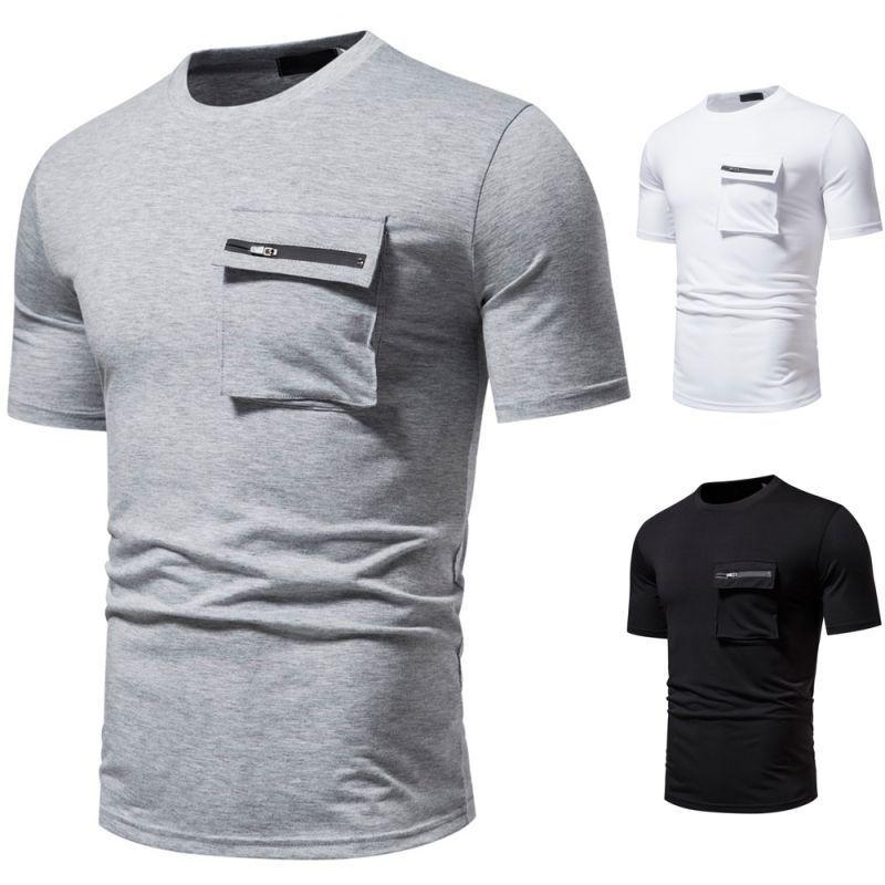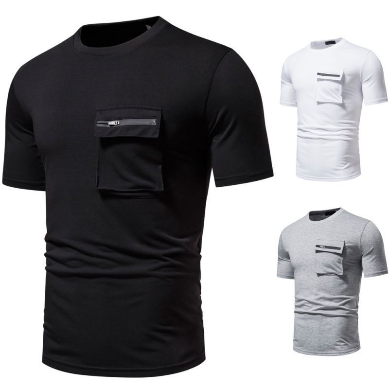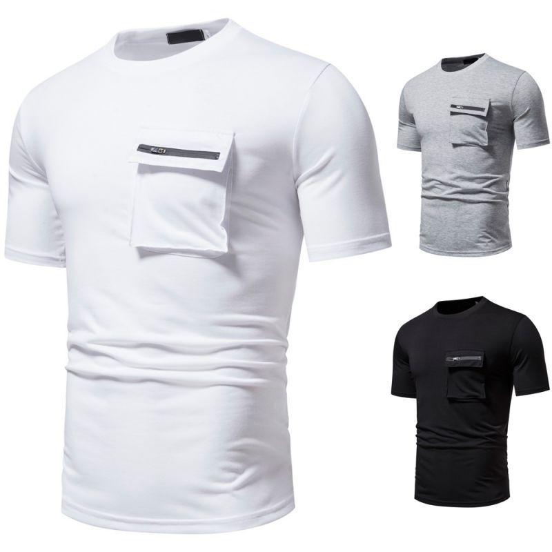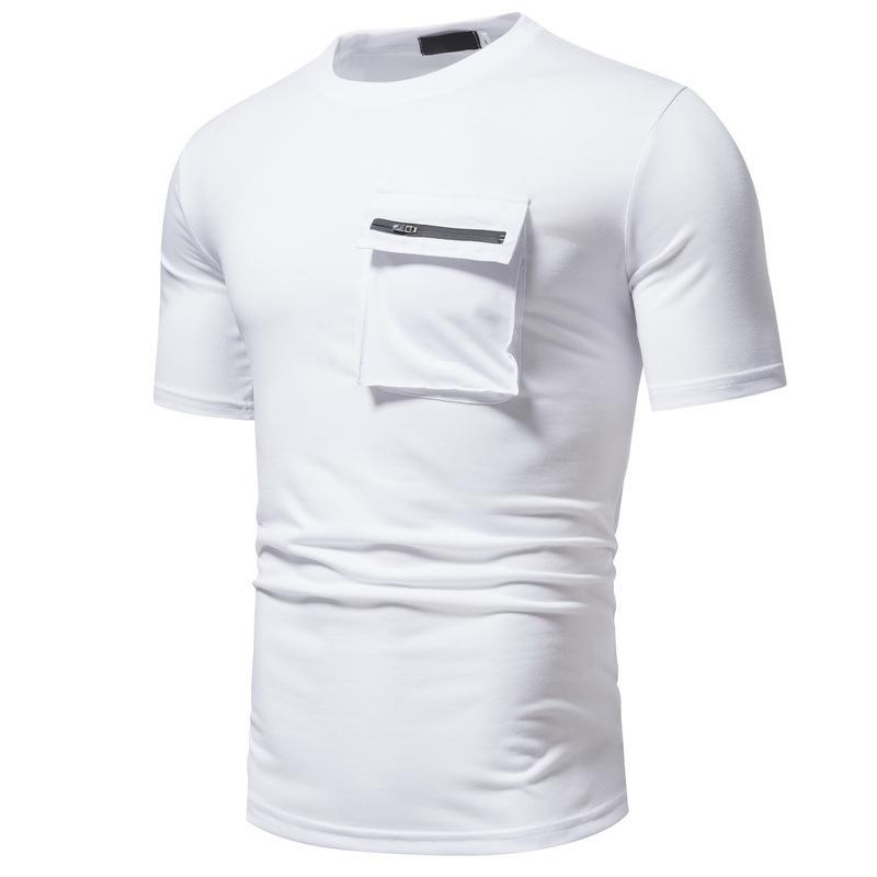2024 Verano Manga Corta Verano Nuevo Moda Hombre Casual Manga Corta Camiseta Decoración Bolsillo Pecho Cuello Redondo Manga Corta Camiseta