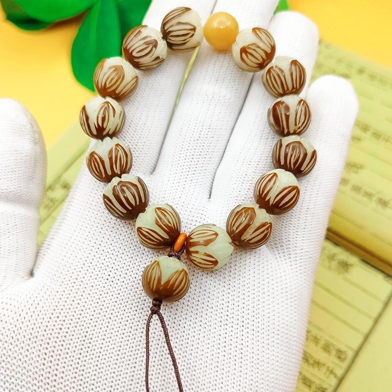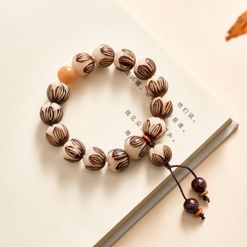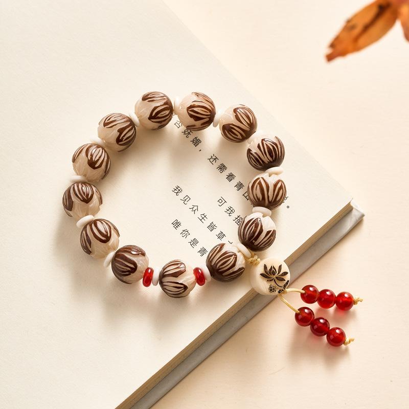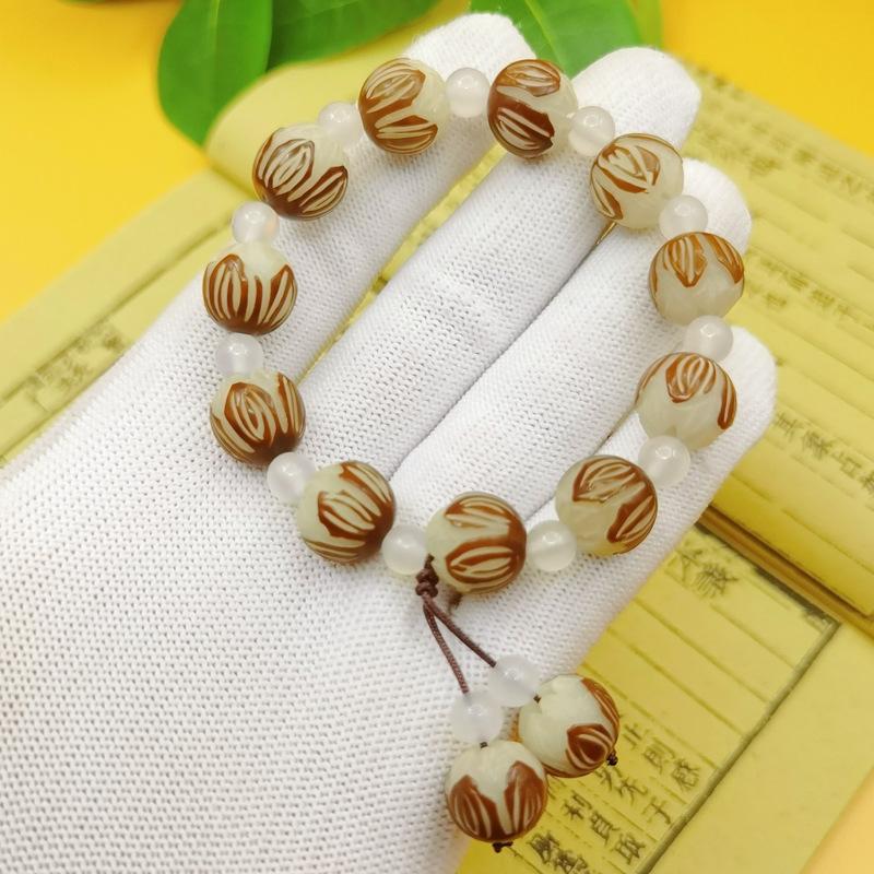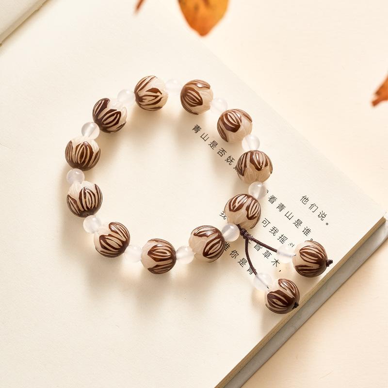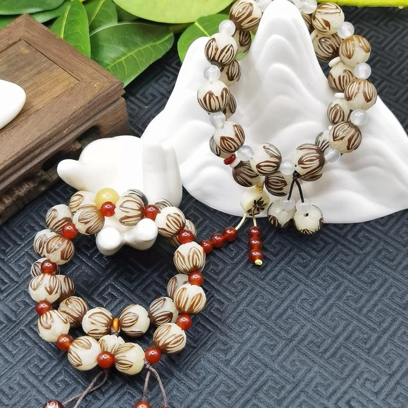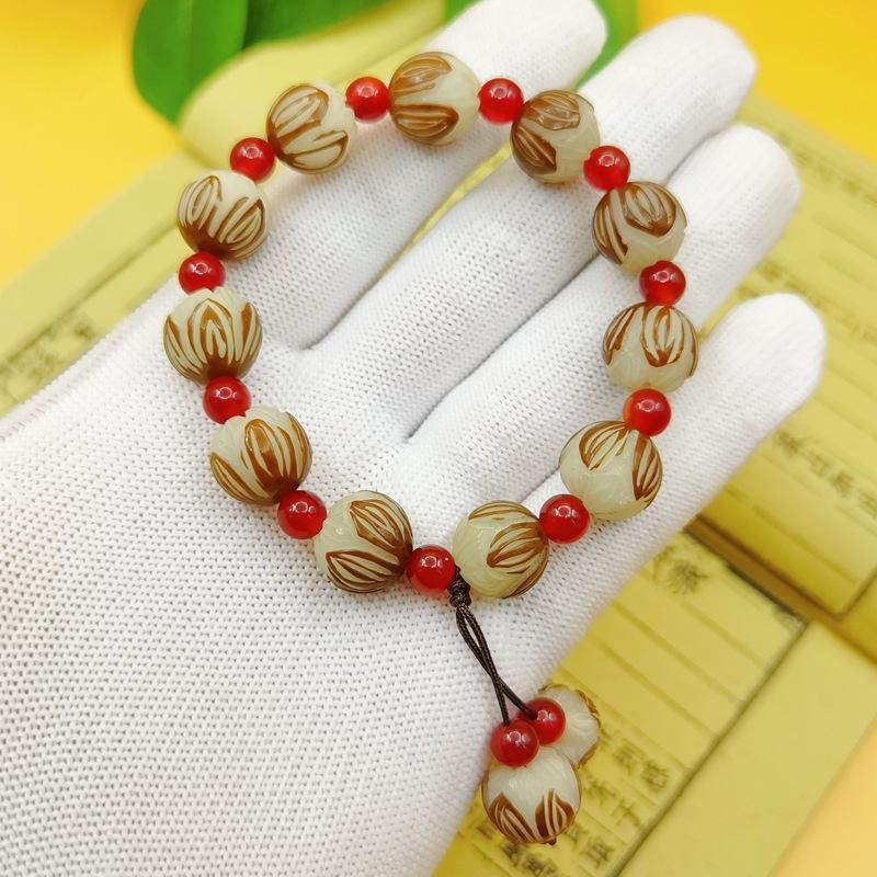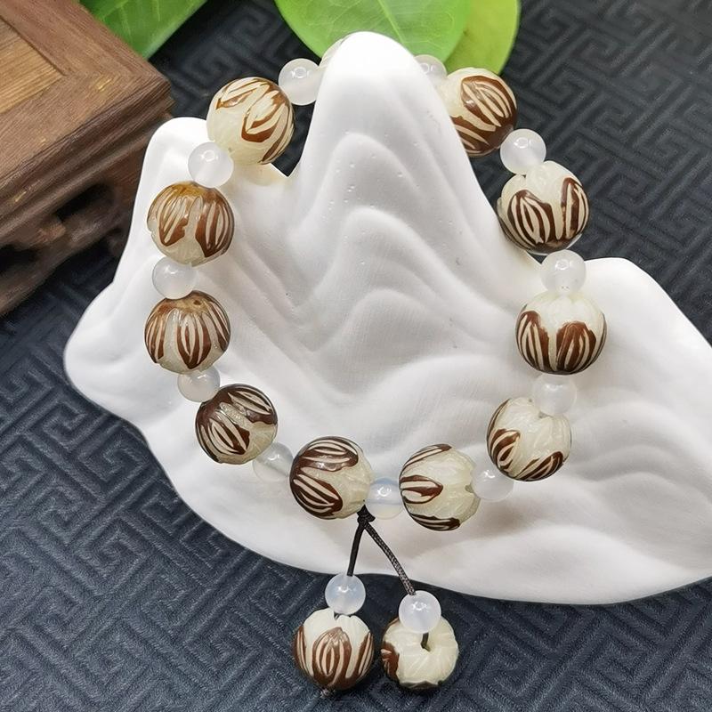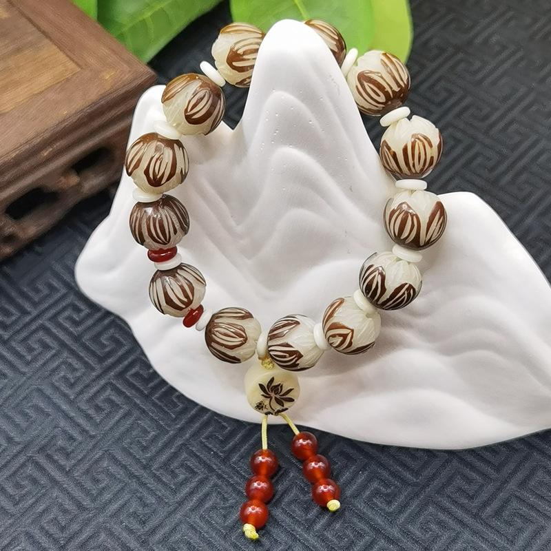 Leathered lotus white agate bracelet 11-12mm, Leathered lotus blood sandalwood auspicious cloud bracelet 11-12...
