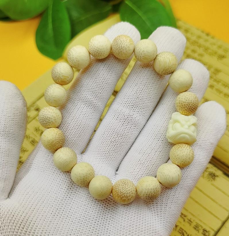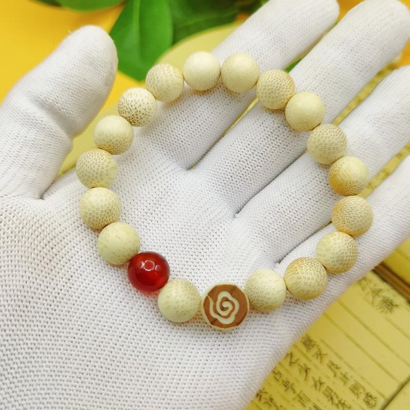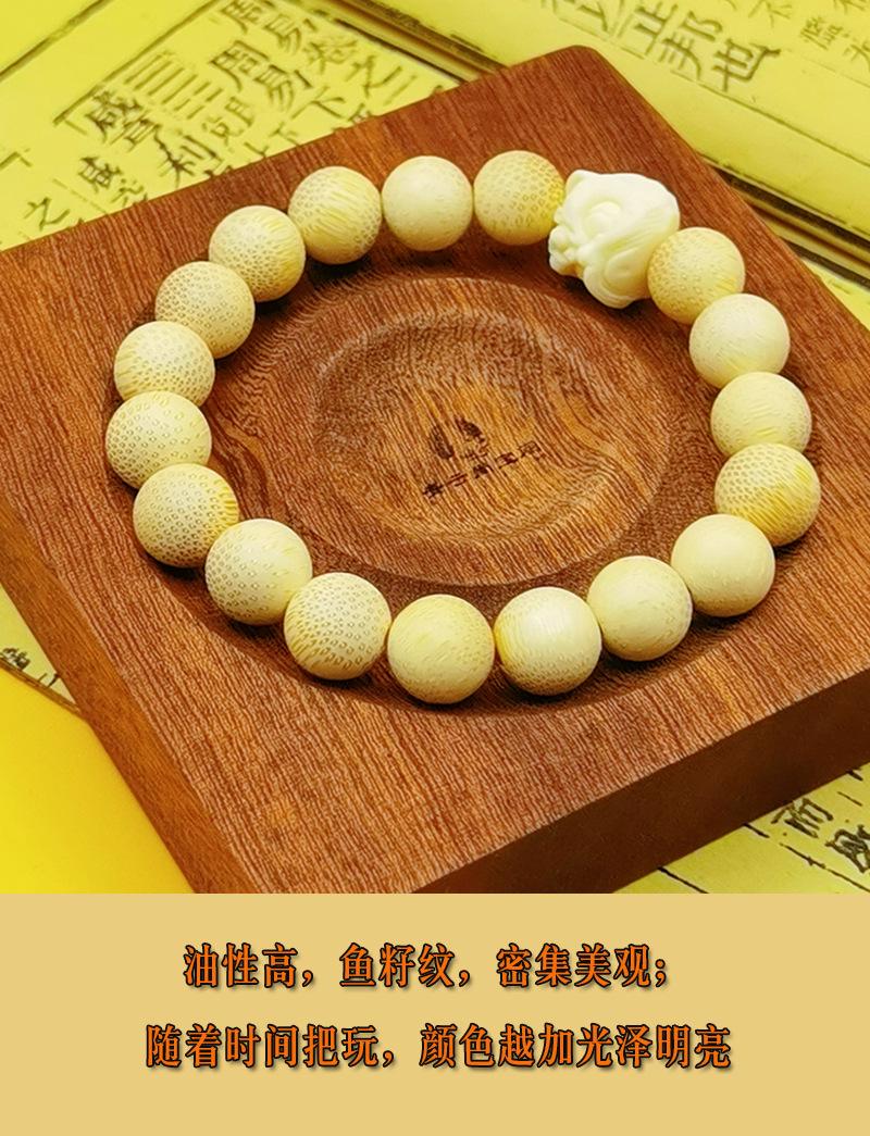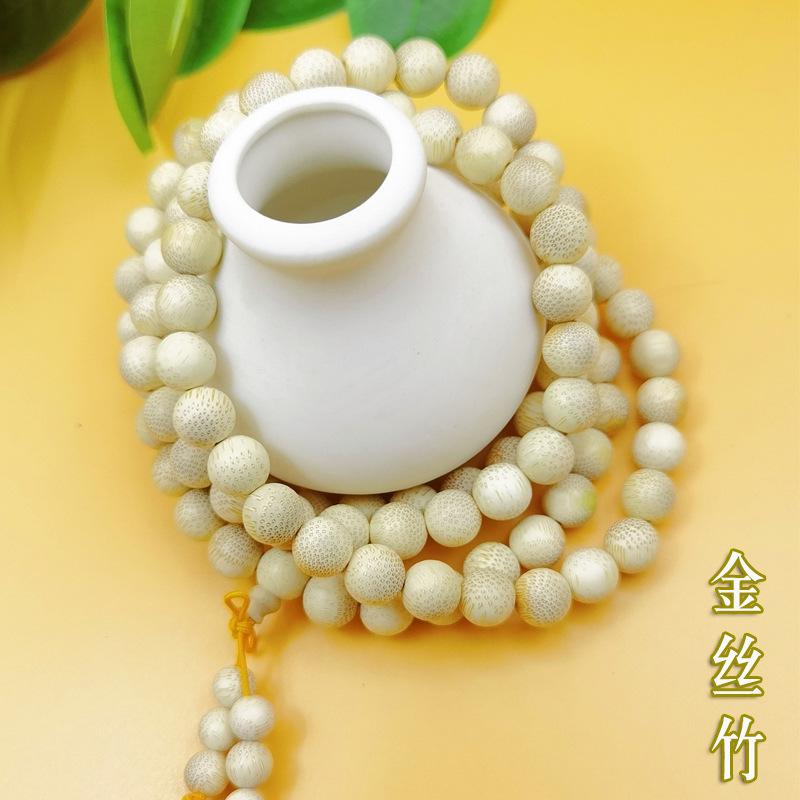 Pulsera de bambú dorado de 108 cuentas, de alta densidad, con patrón de semillas de pescado, unisex, rosario de bambú.