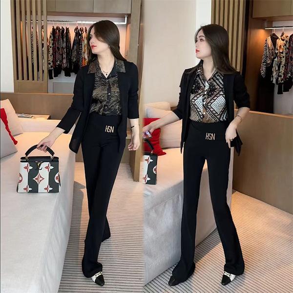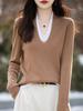 Nuevo cárdigan de punto falso de dos piezas de otoño para mujer, estilo occidental, combina con todo, manga larga, para mamá, top holgado adelgazante que cubre la carne para mujer