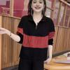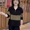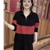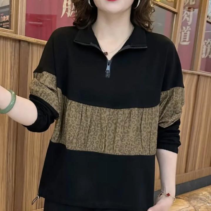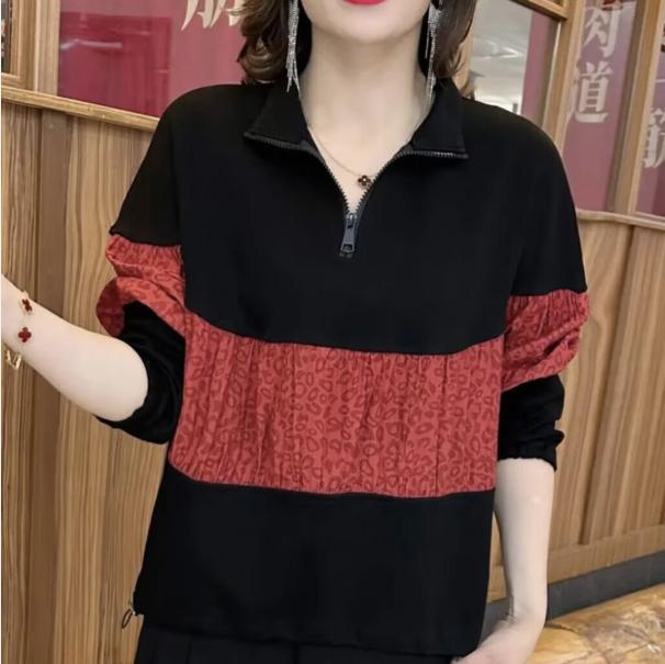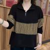 Primavera Nuevo Cuello Alto combinación de colores manga larga ropa de mamá de mediana edad suéter holgado versátil moda costuras top con cremallera para mujer