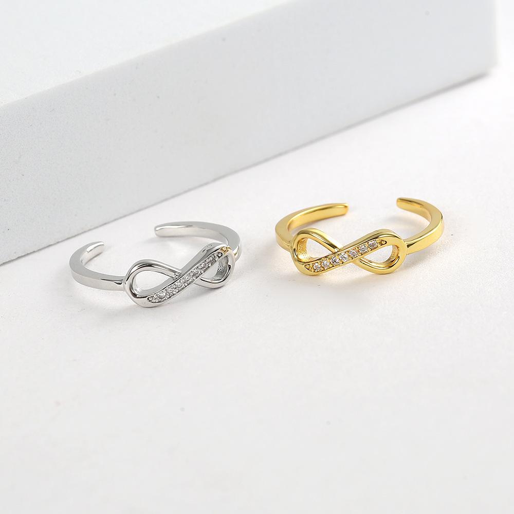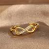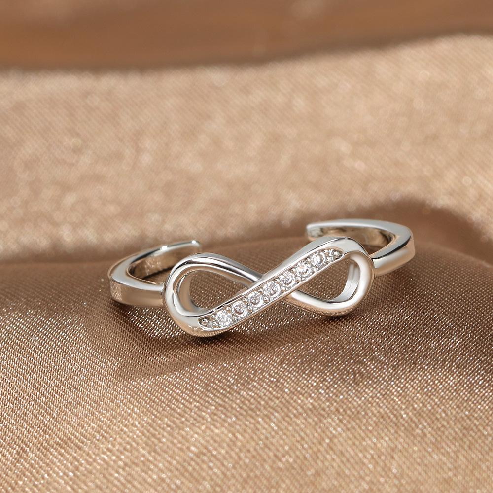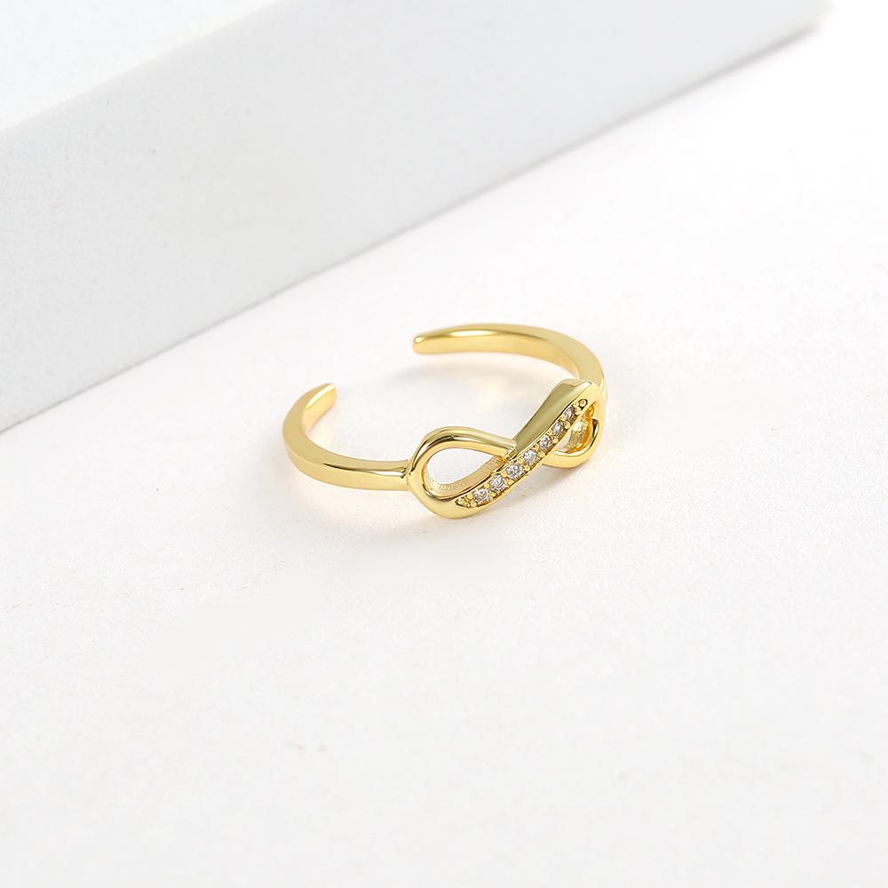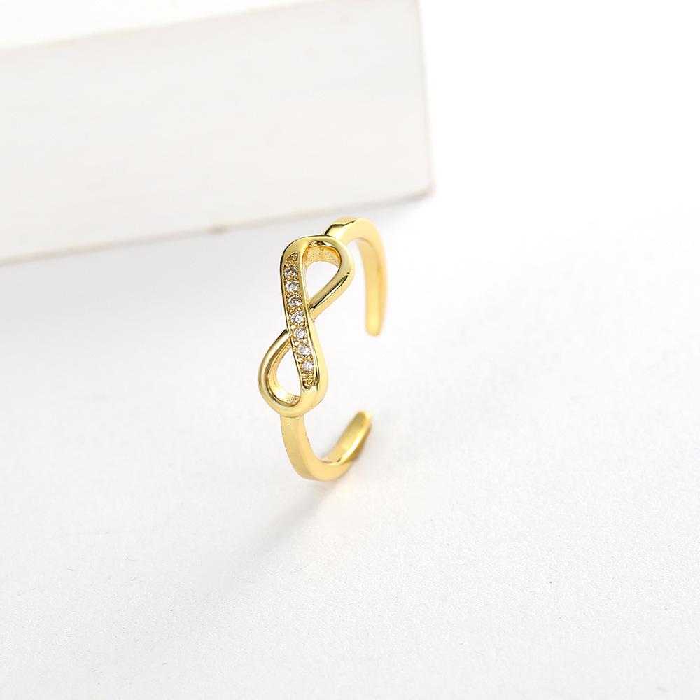 2023 nuevo anillo abierto de 8 palabras de estilo coreano simple con lazo, joyería chapada en oro transfronteriza europea y americana, entrega de una sola pieza