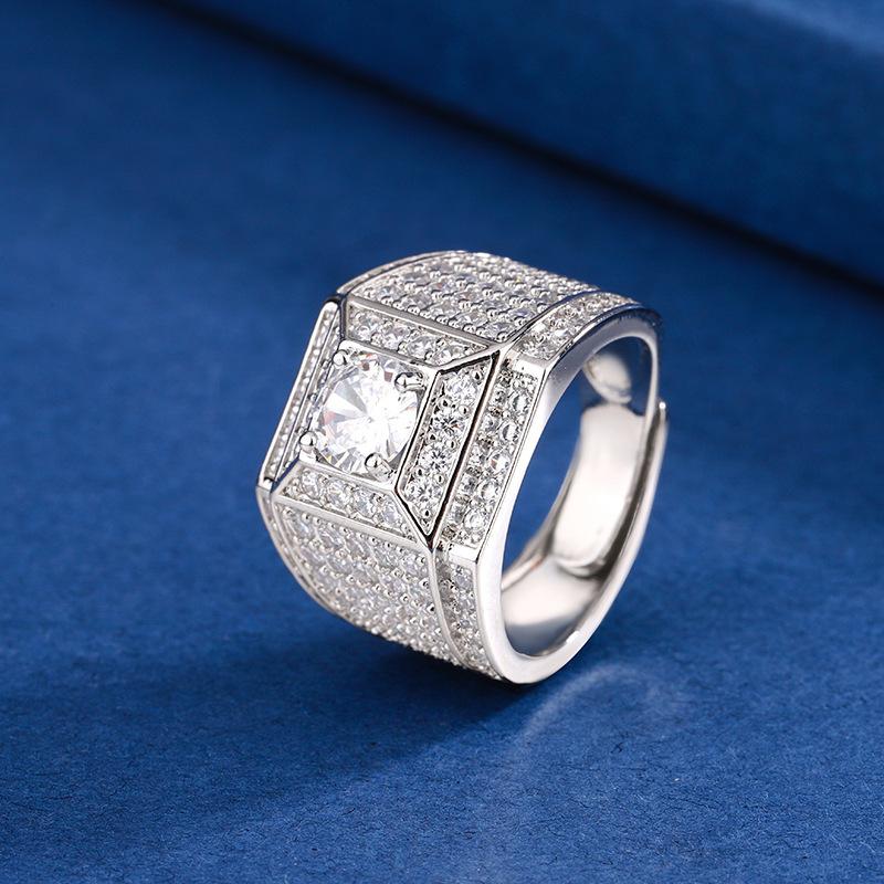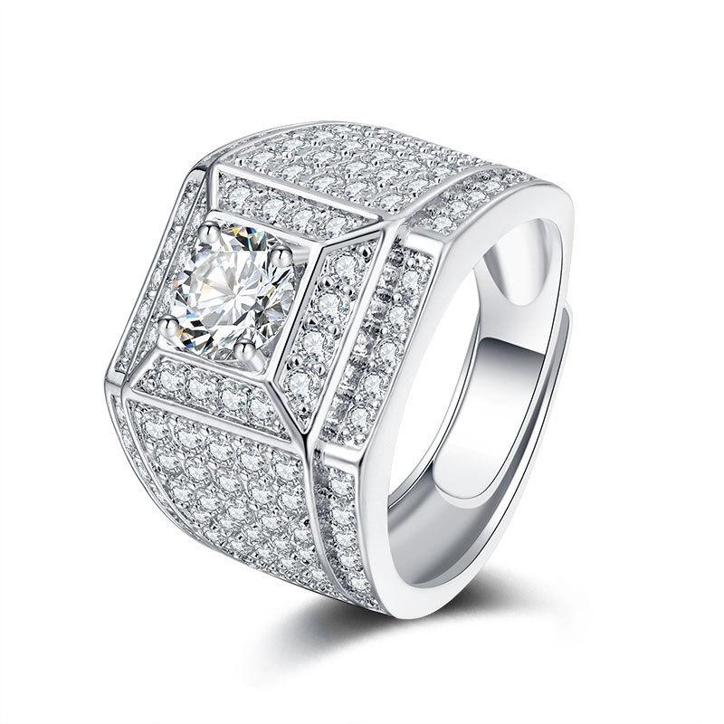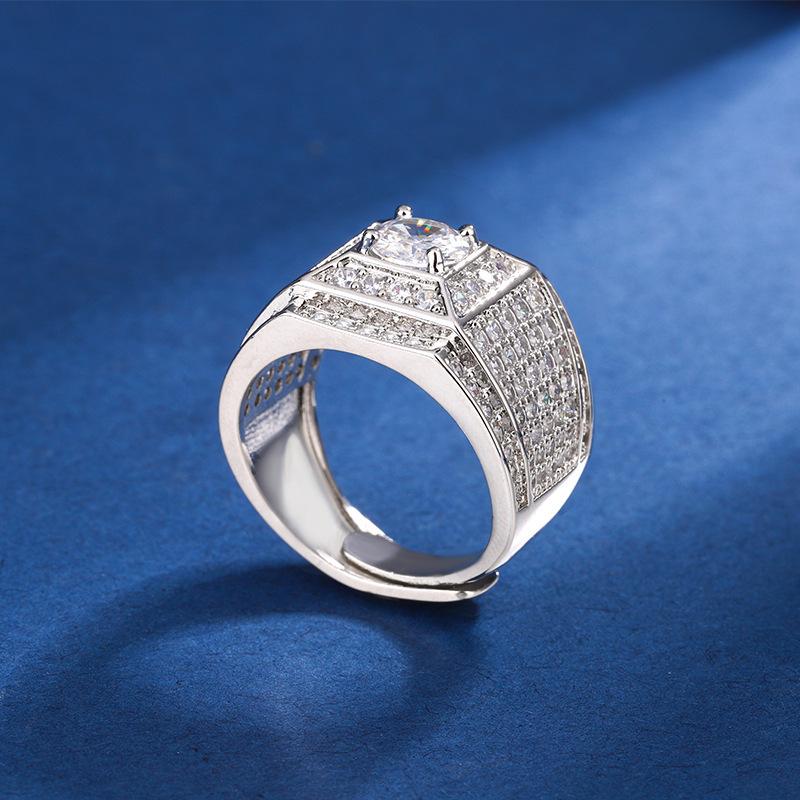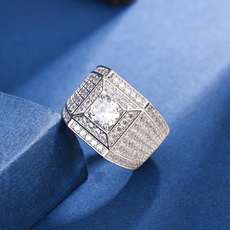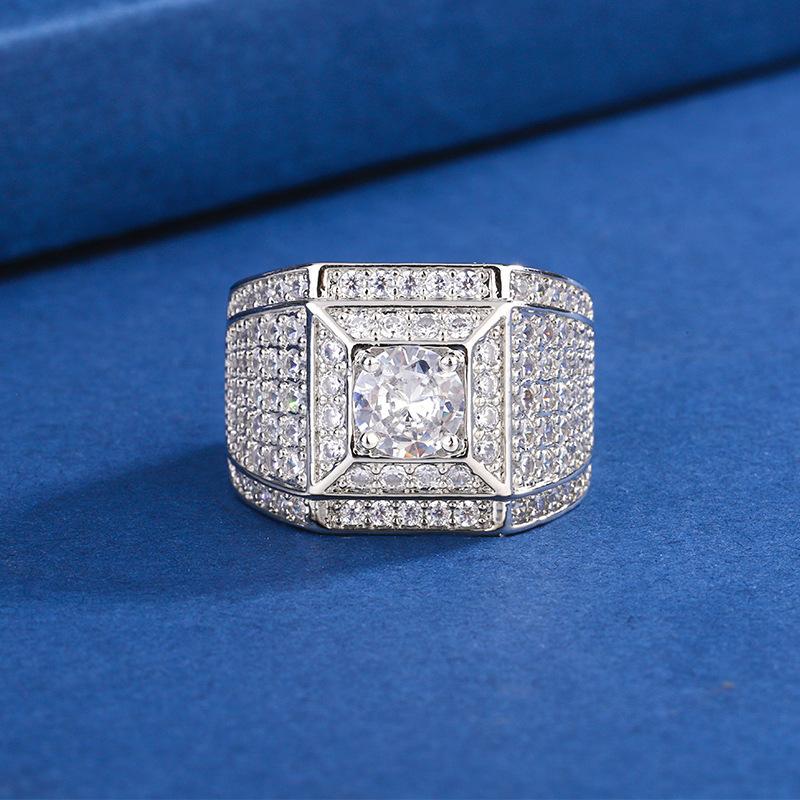Anillo de compromiso de diamantes con incrustaciones de circonitas de lujo de gran venta dominante, anillo de diamantes completo de moda europea y americana con incrustaciones de circonitas micro.