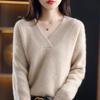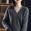 Suéter de cachemira de otoño e invierno para mujer, suéter holgado y grueso con cuello en V, estilo coreano, estilo perezoso.