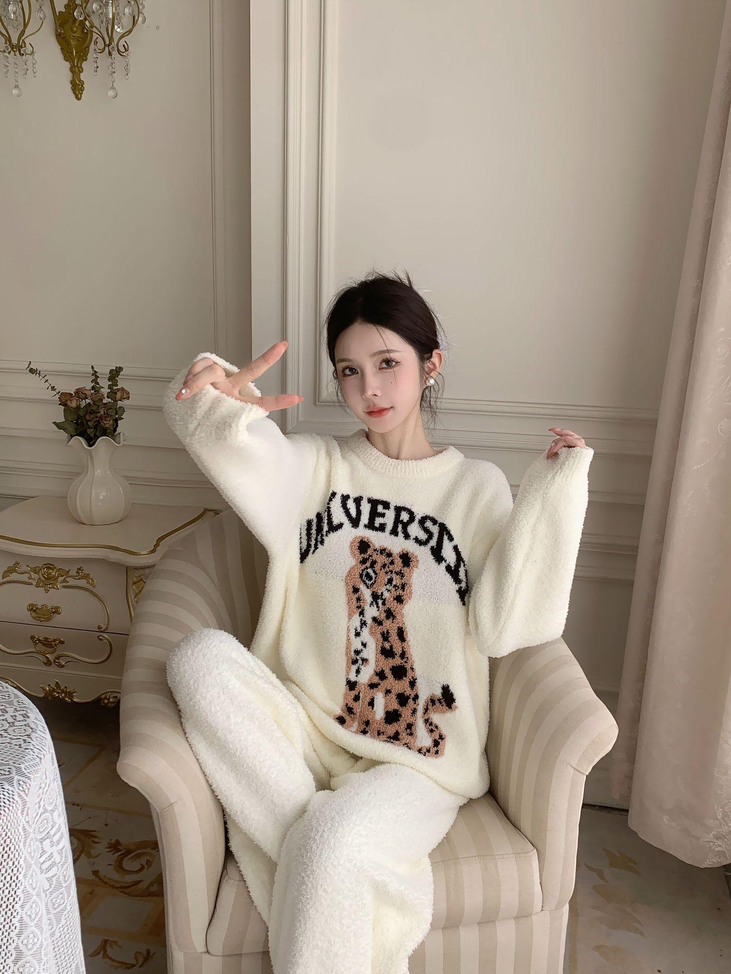 Pijamas de invierno para mujer, suaves y cálidos, de estilo japonés, de felpa suave y cerosa, ropa para el hogar, pijamas de alta gama de estilo coreano.
