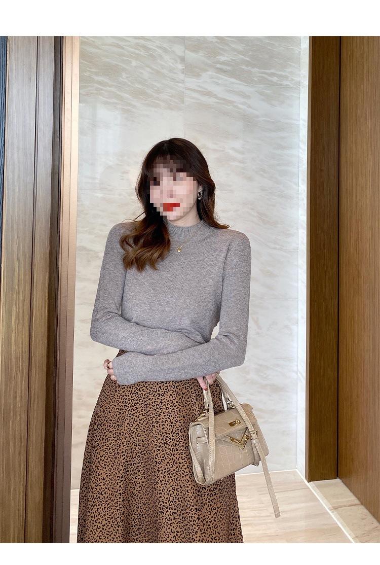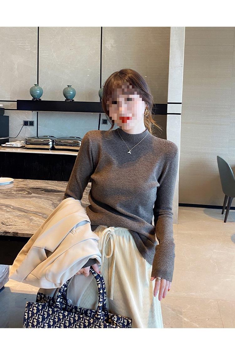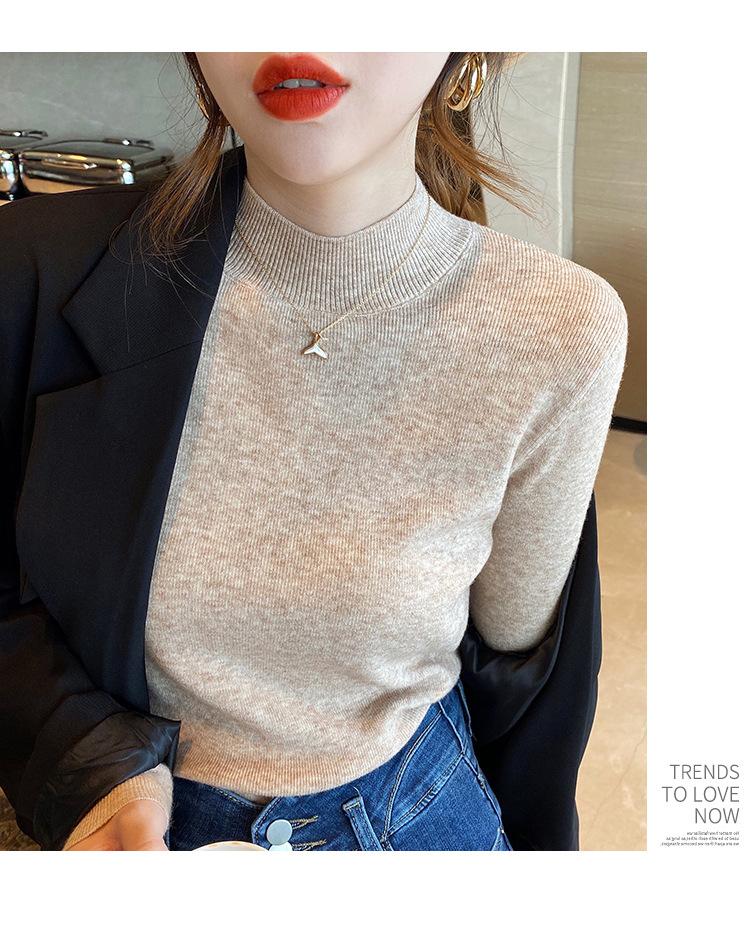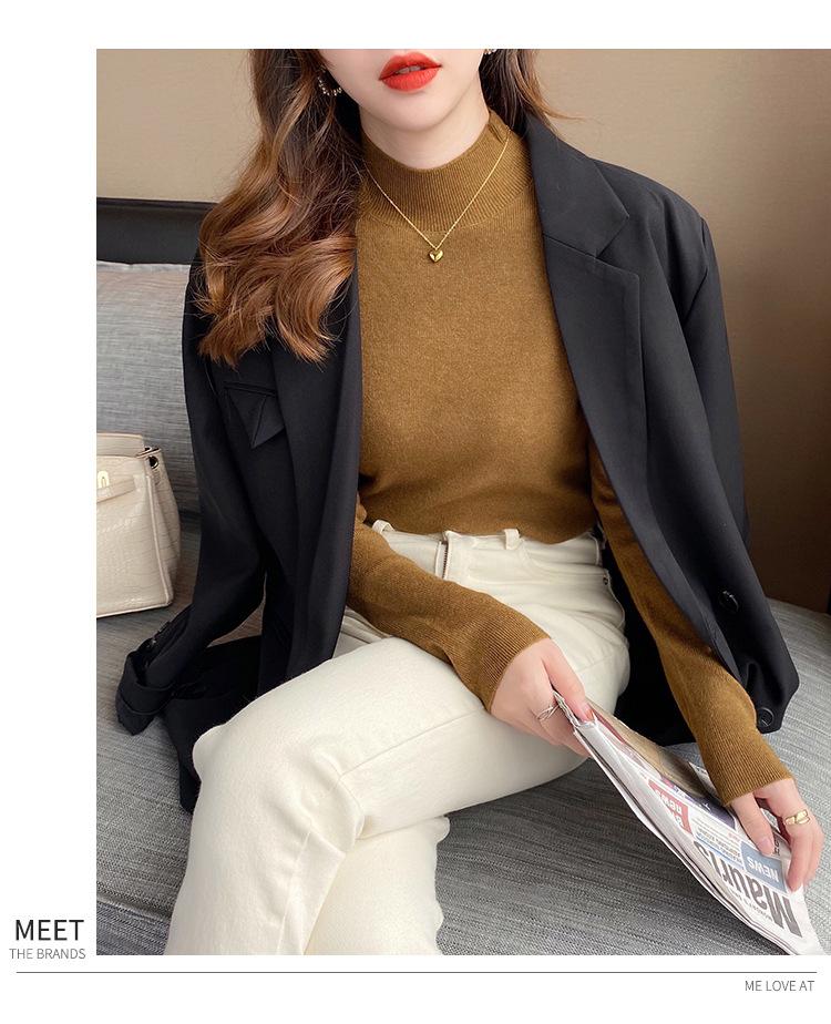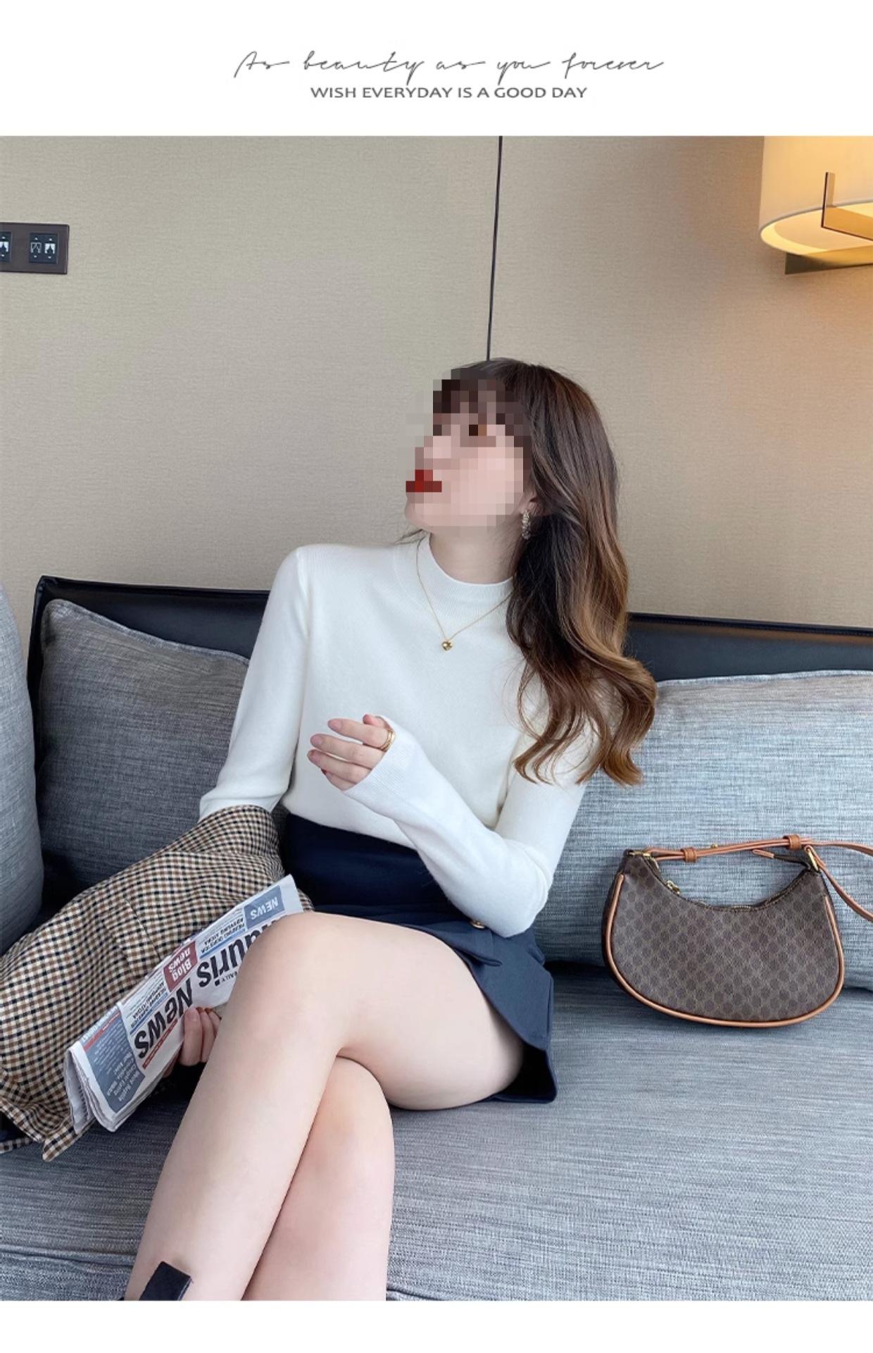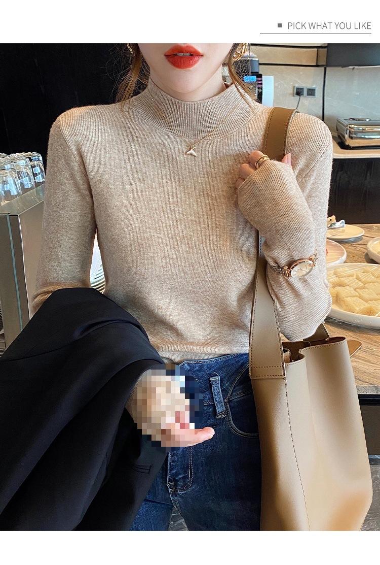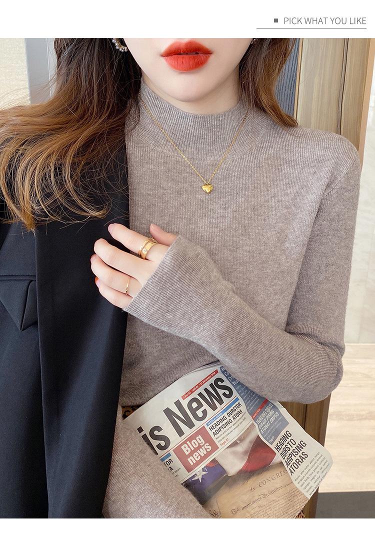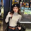 Suéter rosa holgado de estilo extranjero para mujer, camisa básica de punto con cuello alto y manga larga de primavera y otoño de 2024.