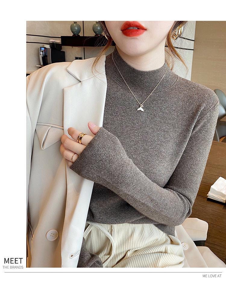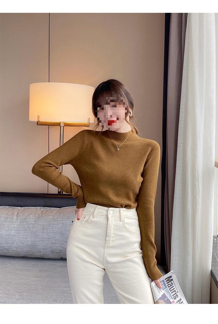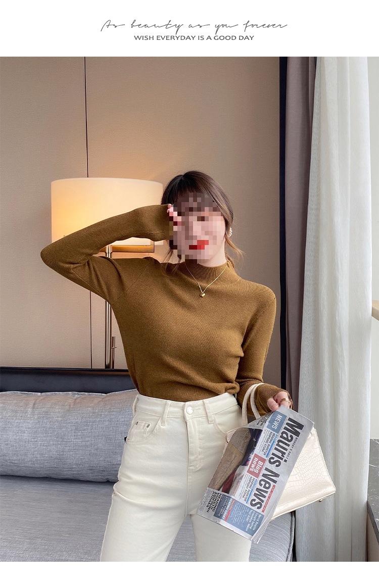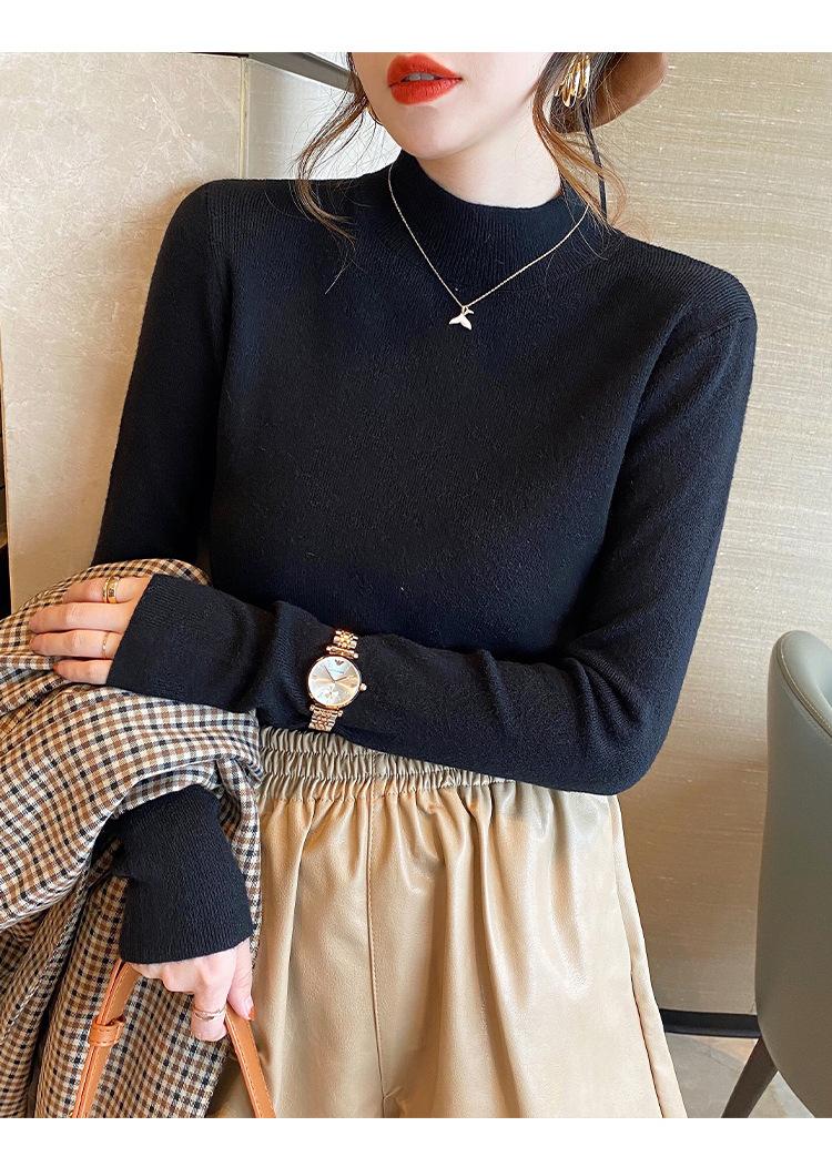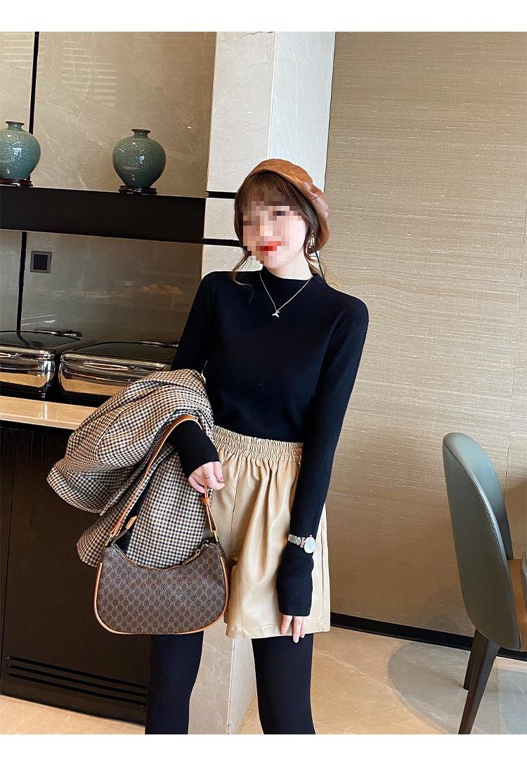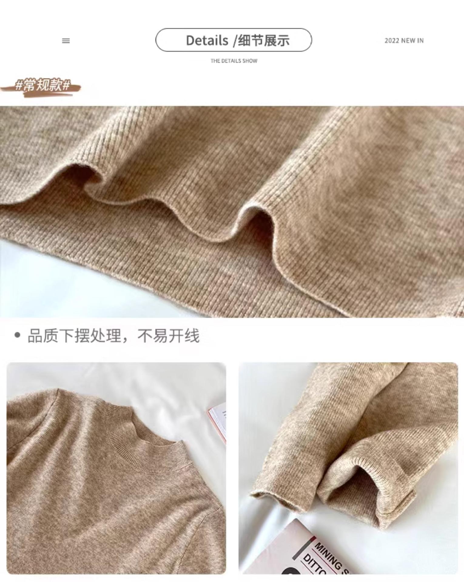 Suéter rosa holgado de estilo extranjero para mujer, camisa básica de punto con cuello alto y manga larga de primavera y otoño de 2024.