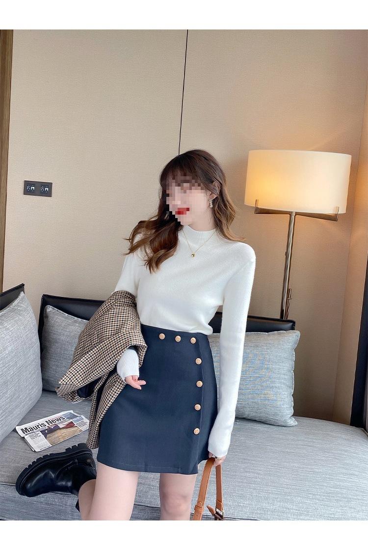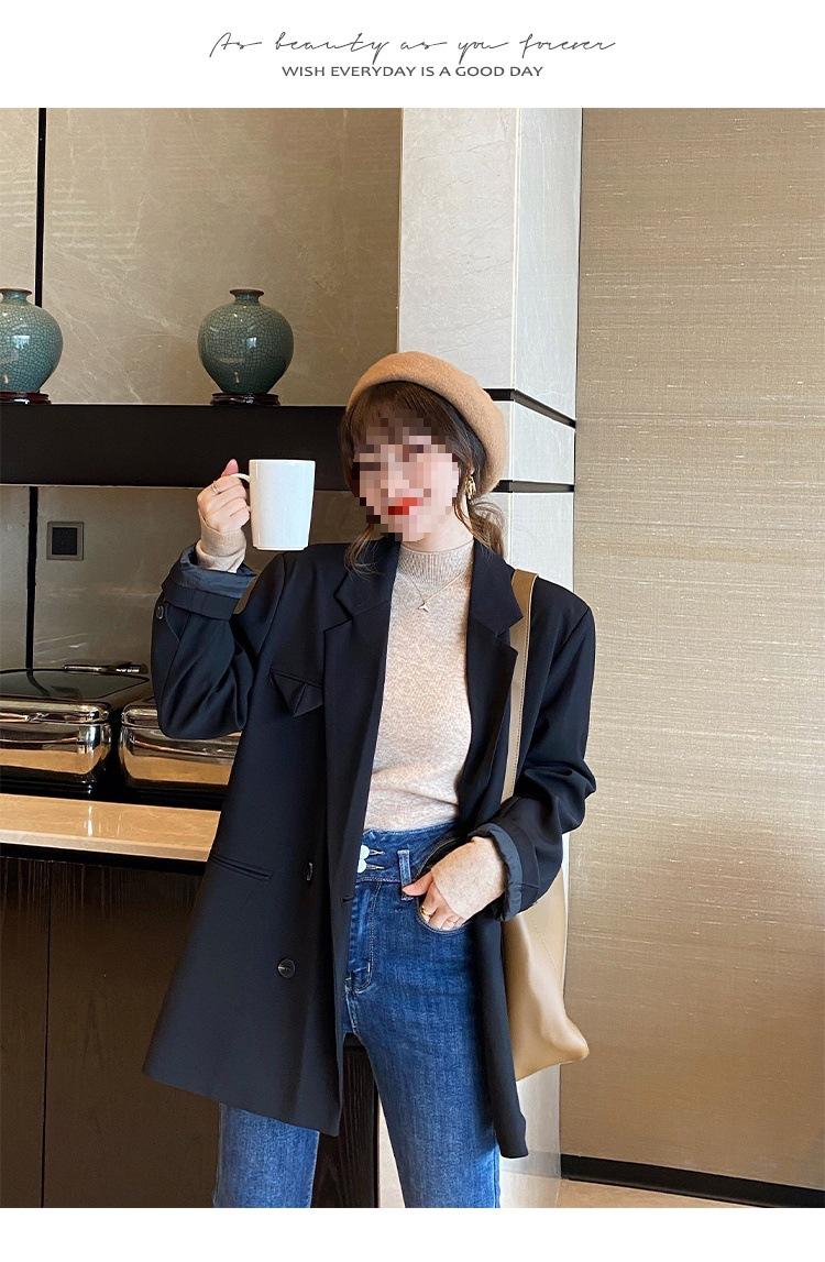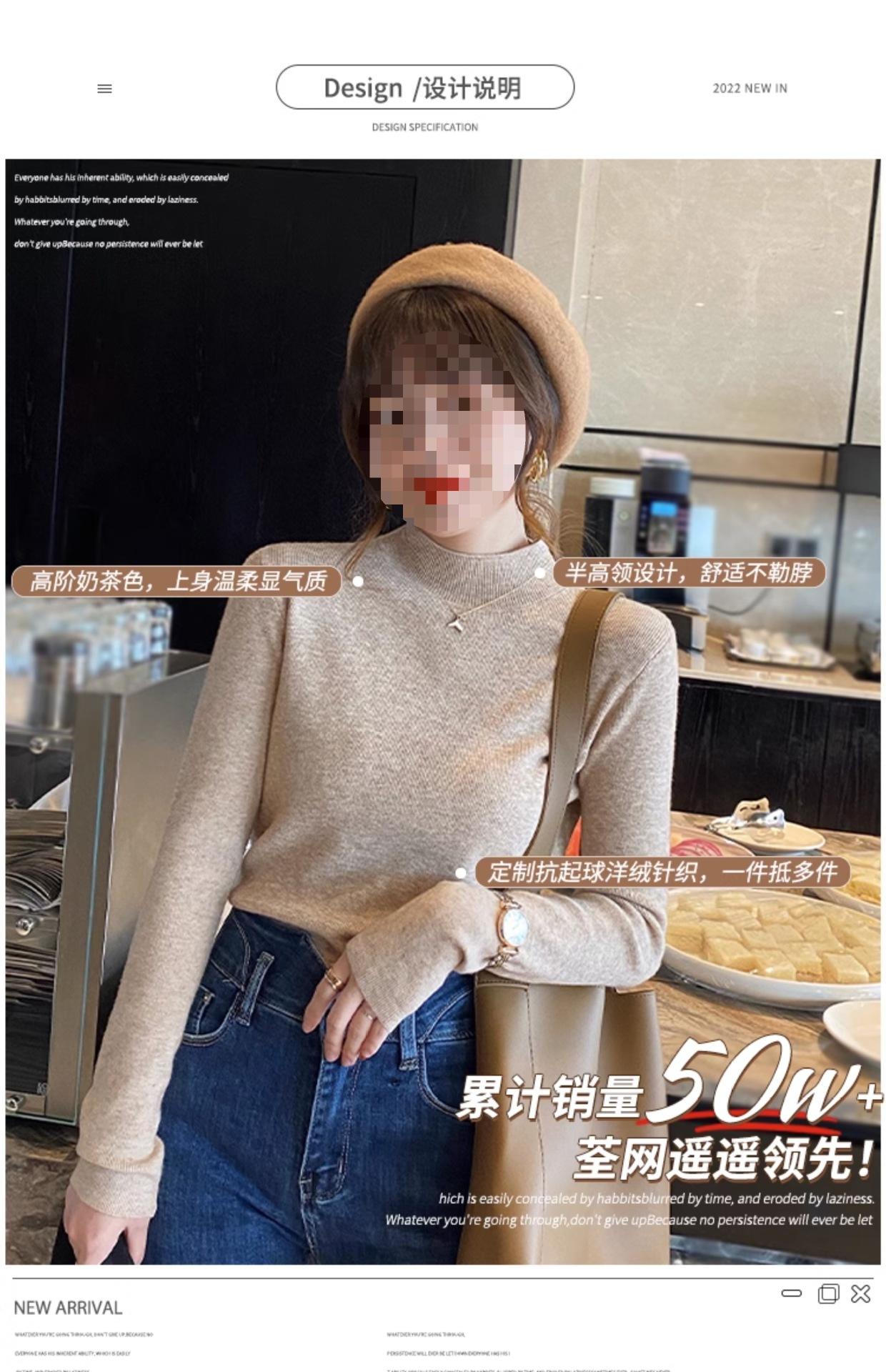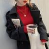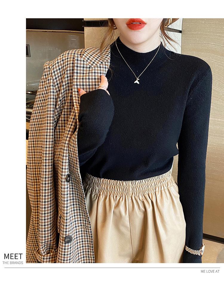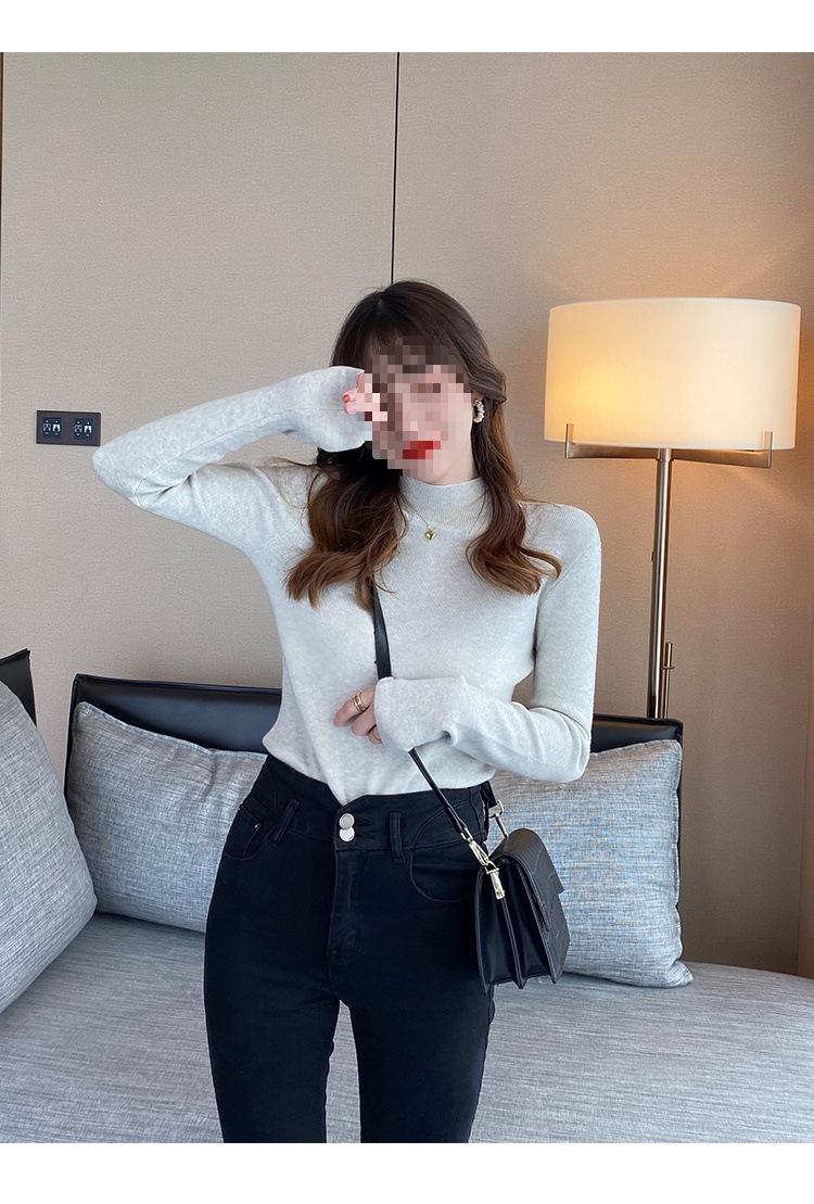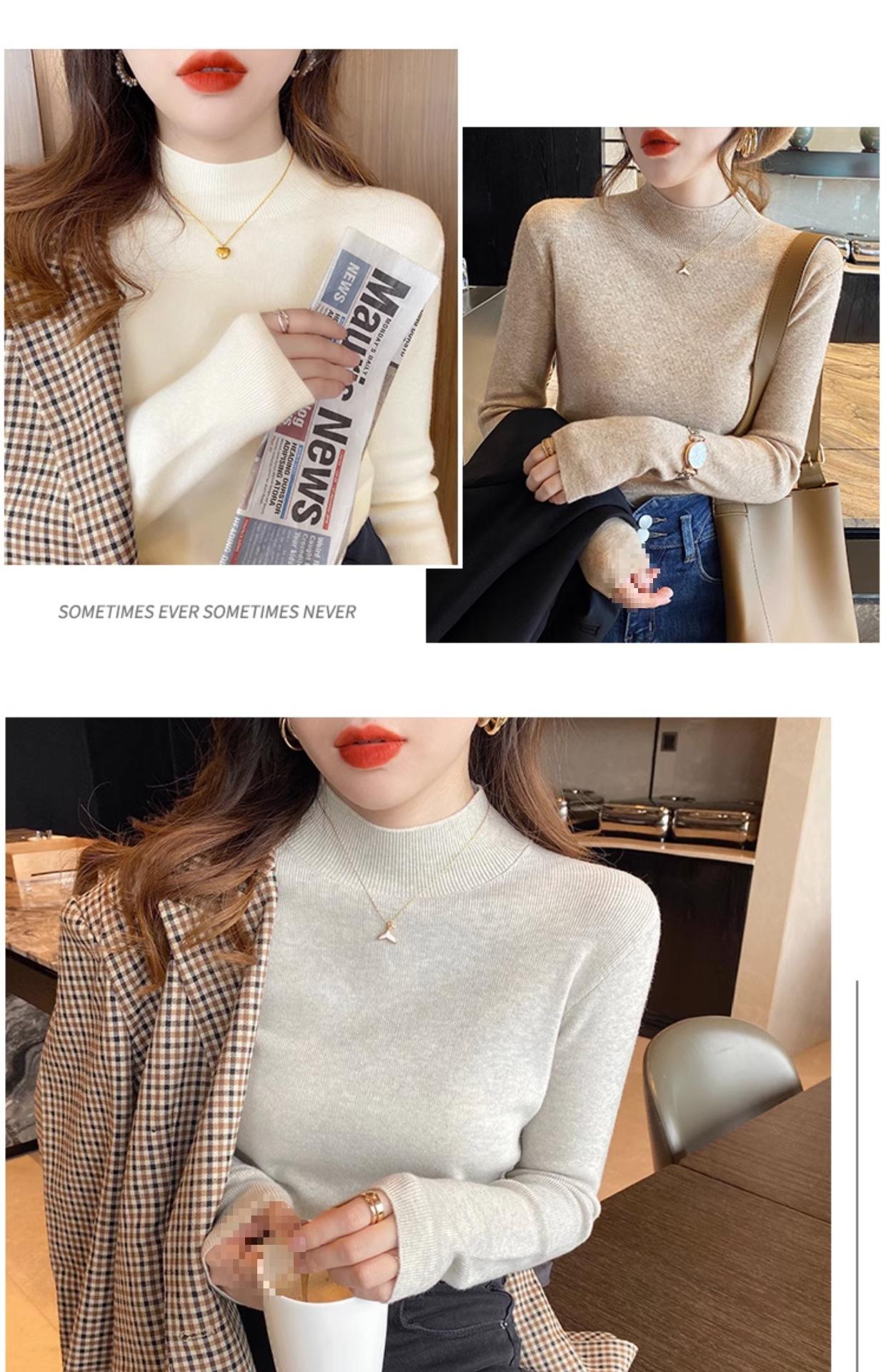 Suéter rosa holgado de estilo extranjero para mujer, camisa básica de punto con cuello alto y manga larga de primavera y otoño de 2024.