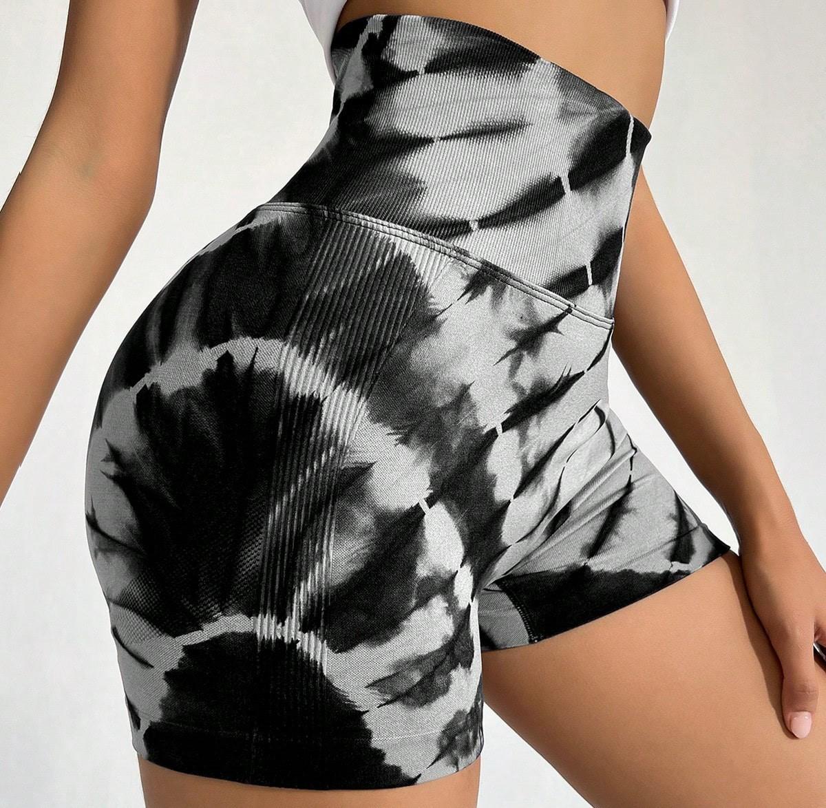 Mallas deportivas con efecto tie-dye, sin costuras y decoloradas, con efecto tie-dye, para levantamiento de cadera, con control de abdomen, de cintura alta, para yoga y fitness.