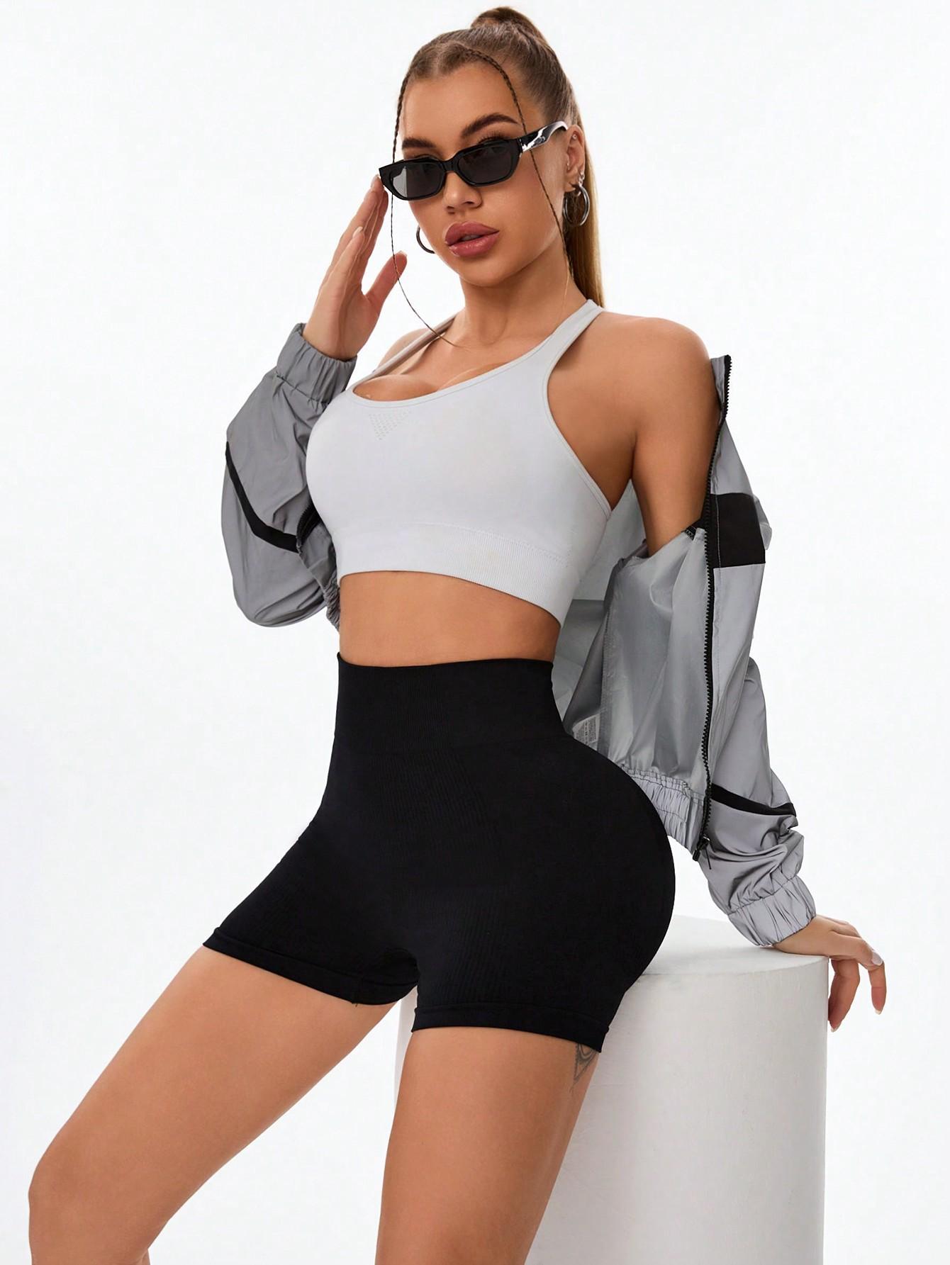 Conjunto deportivo de dos piezas con sujetador ajustado, pantalones y cintura alta para yoga al aire libre, estilo europeo y americano
