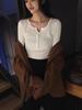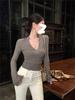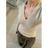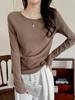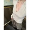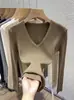 Suéter de cuello en V de color liso de estilo suave para mujer, otoño 2024, nuevo suéter interior adelgazante de manga larga.