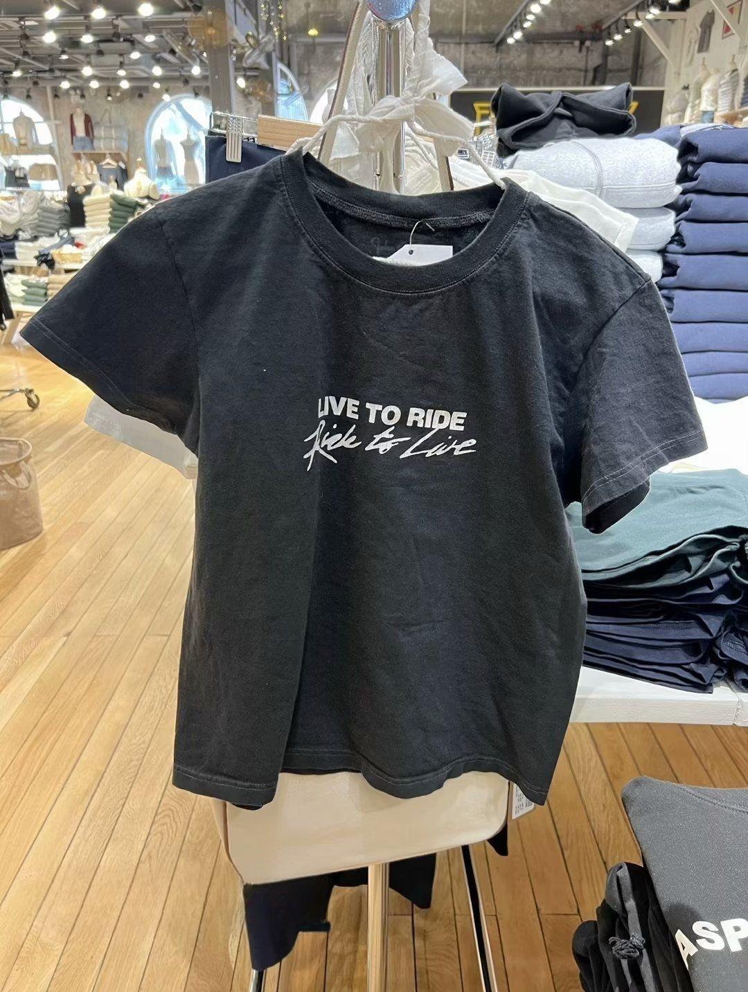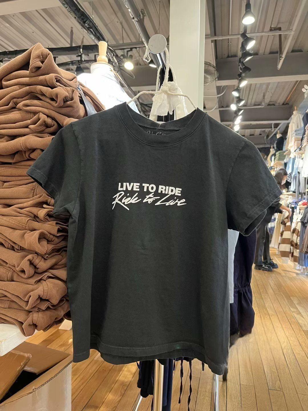 Camiseta de manga corta con cuello redondo y estampado de letras CHLOE LIVE TO RIDE en negro estilo americano de BM, top de chica sexy de BM