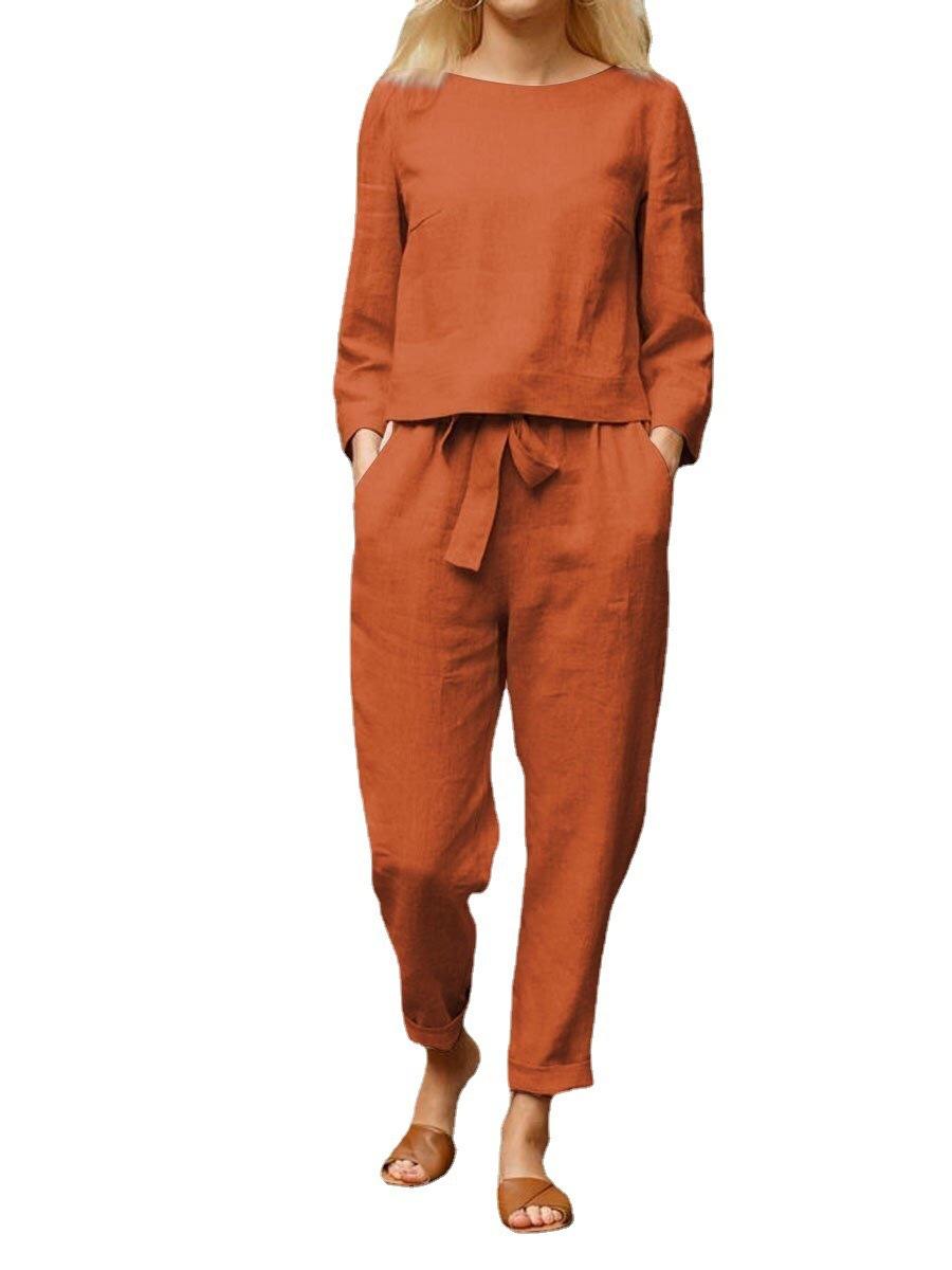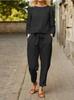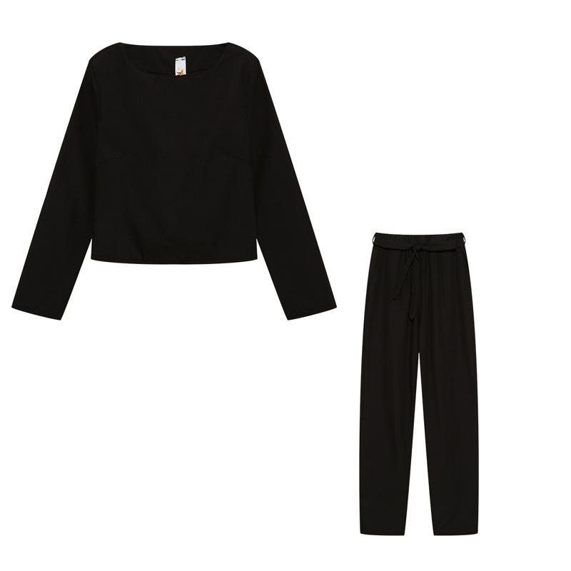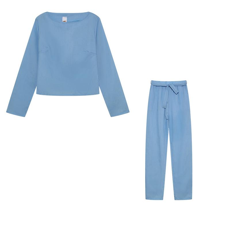 Conjunto de top y pantalón de manga larga con cuello redondo informal de color liso para mujer europea y americana de otoño 2023, disponible en Amazon AliExpress.