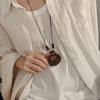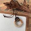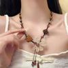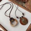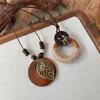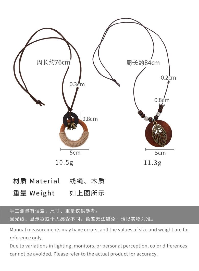 Collar de cuerda tejida estilo zen estilo nacional para mujer, estilo bohemio étnico, cadena larga tipo suéter, colgante de hoja dorada, accesorios