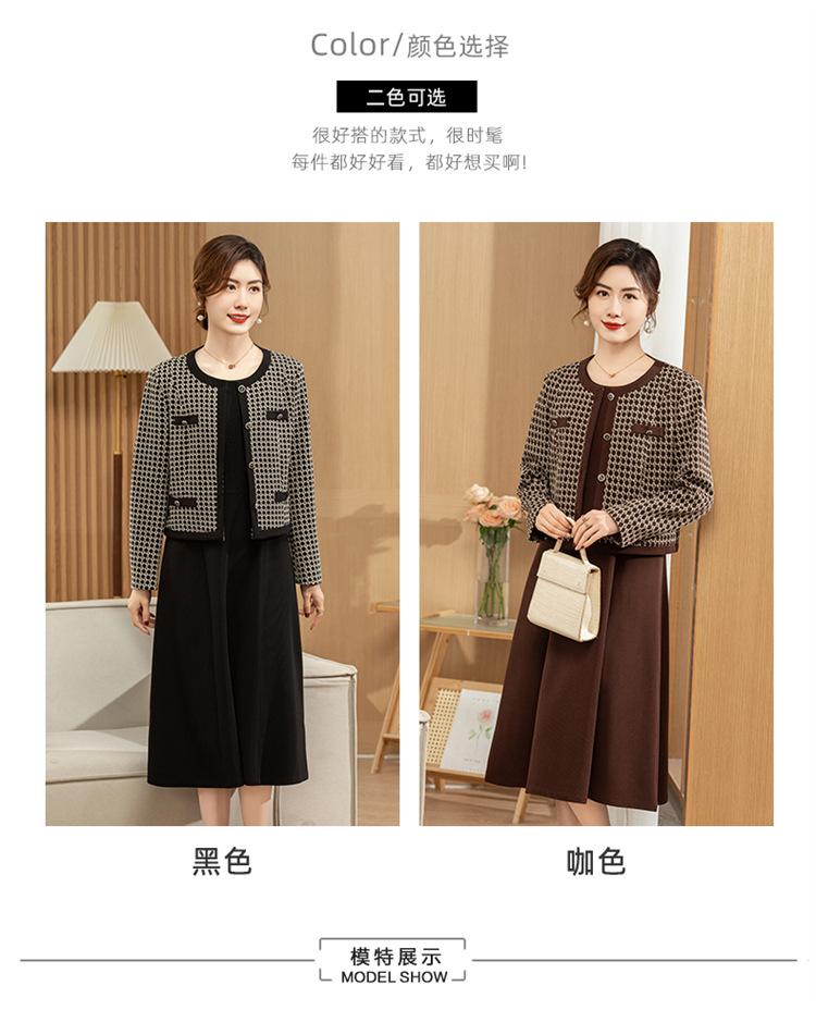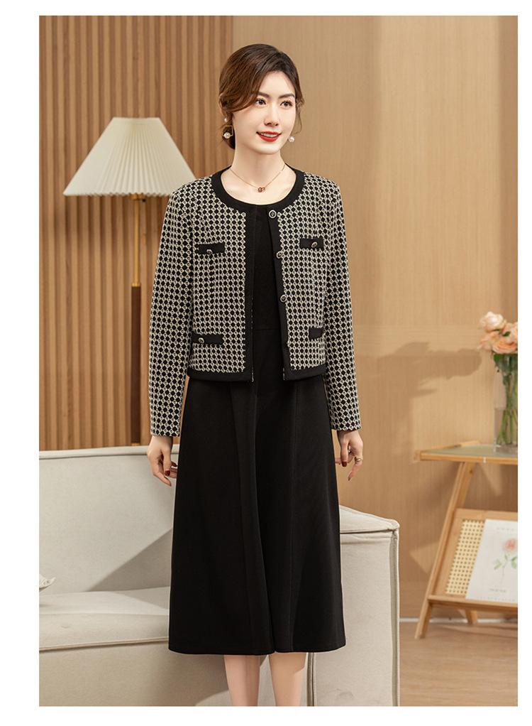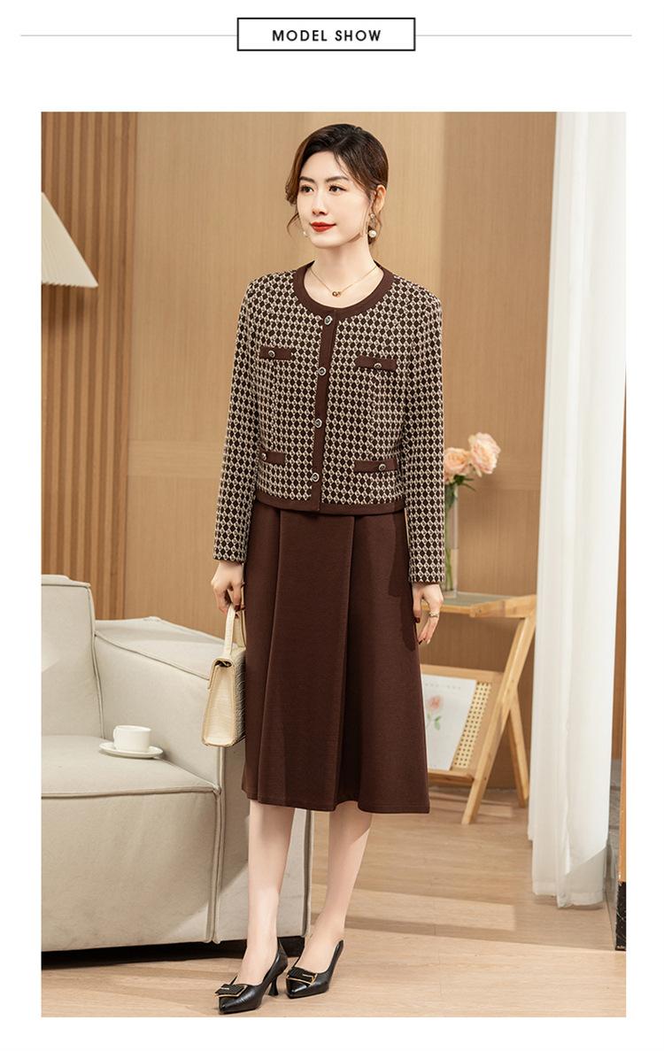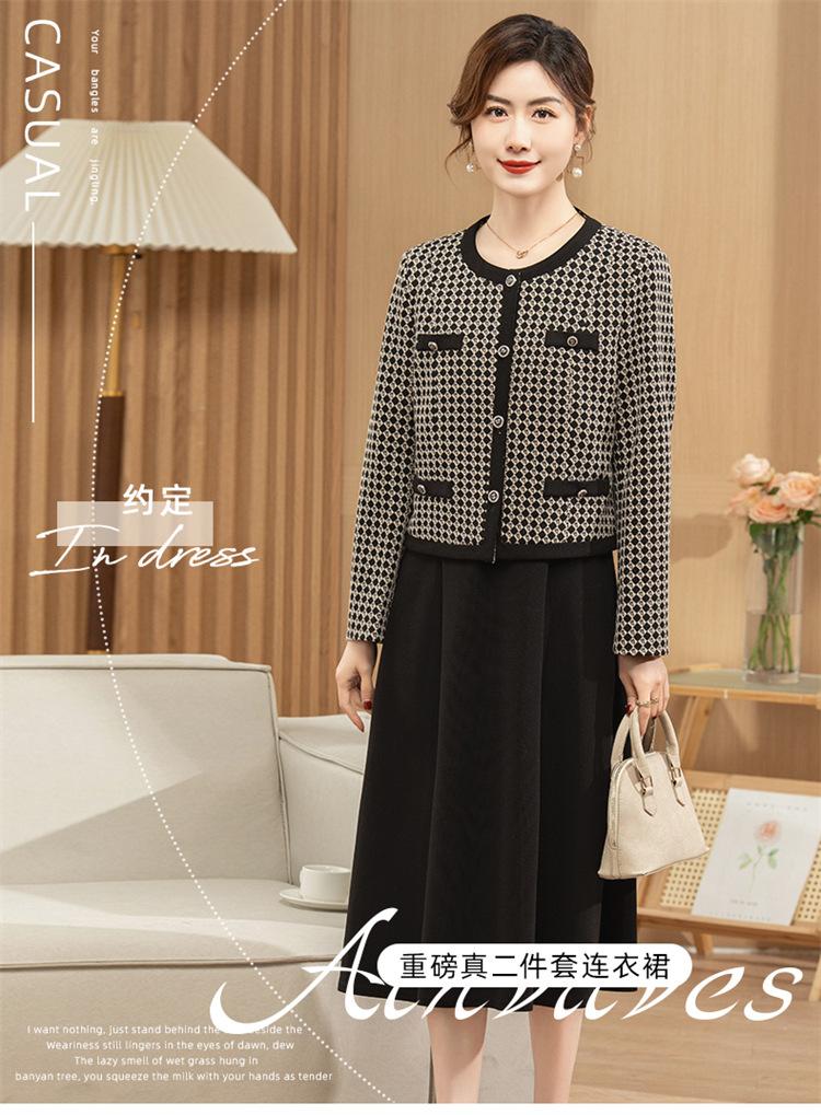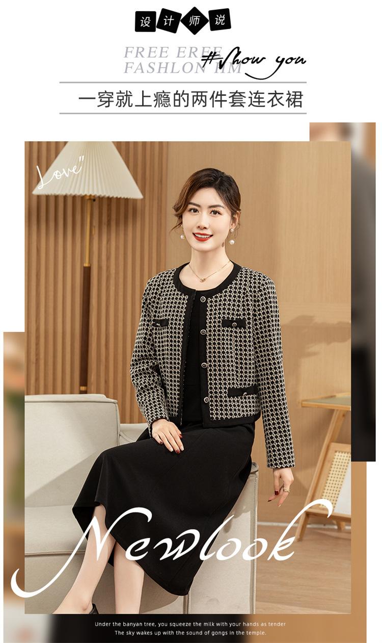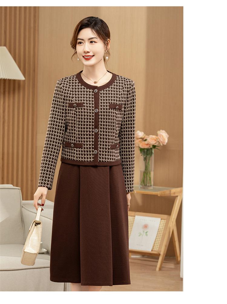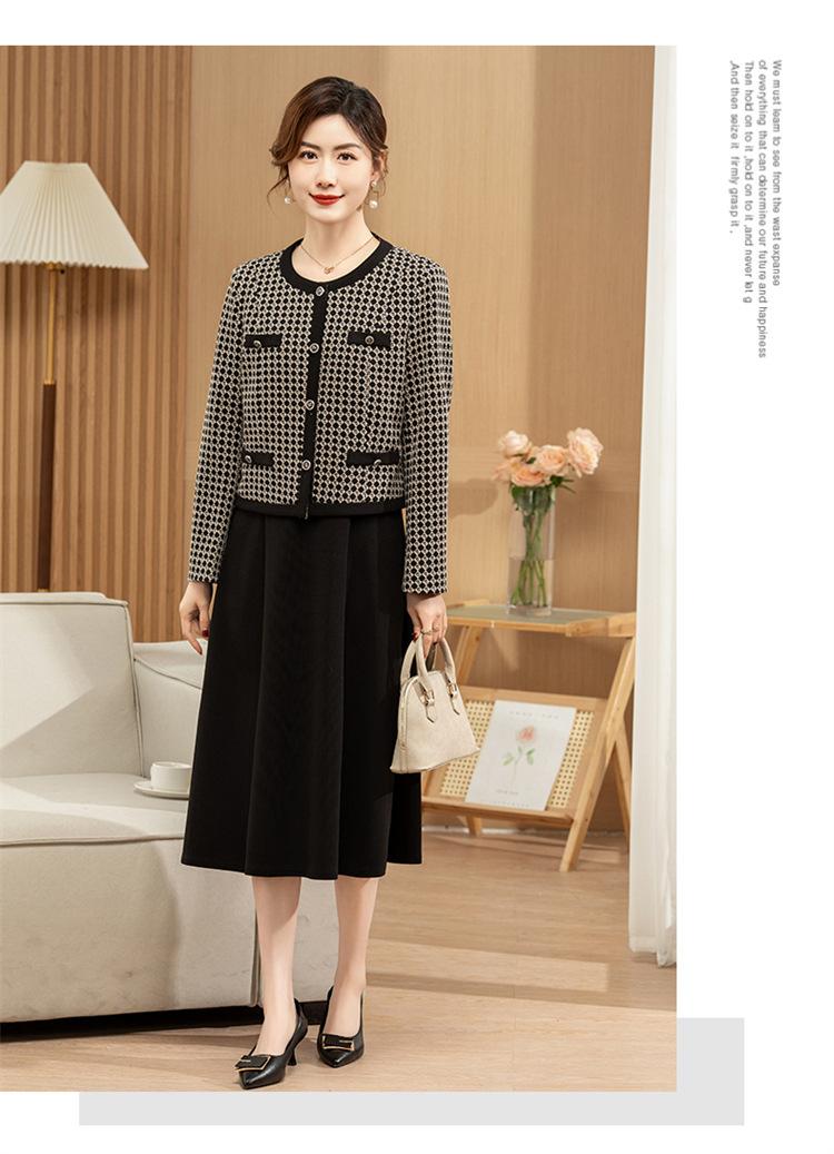 Ropa de primavera para mamá abrigo estilo Chanel vestido nuevo traje mujeres de mediana edad y mayores ancho top temperamental de dama conjunto de dos piezas