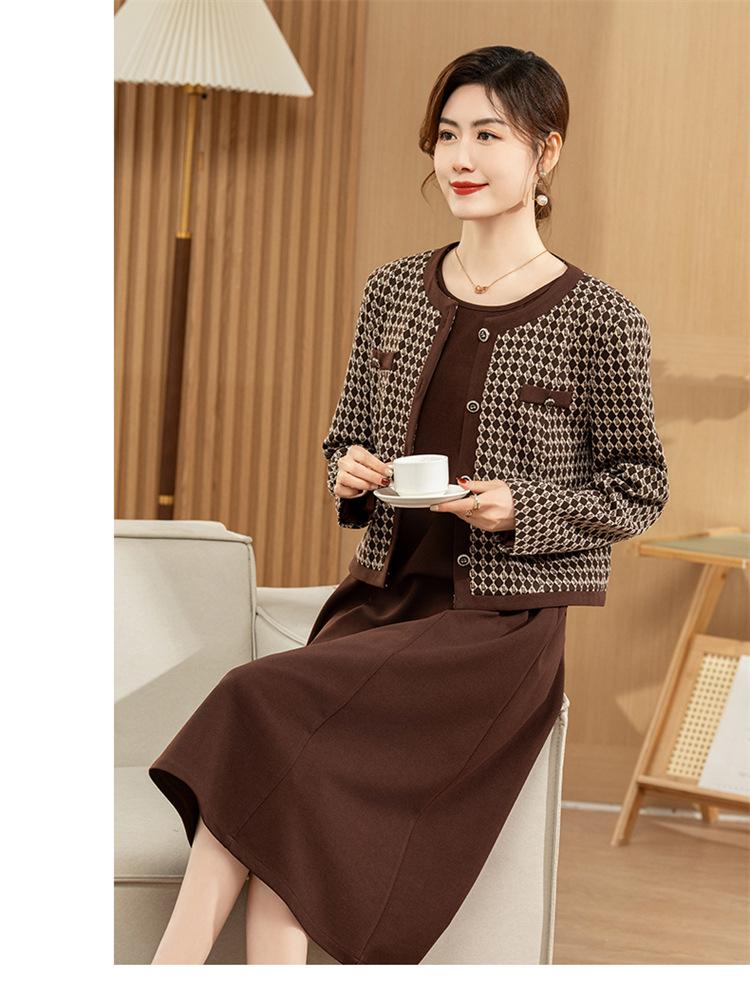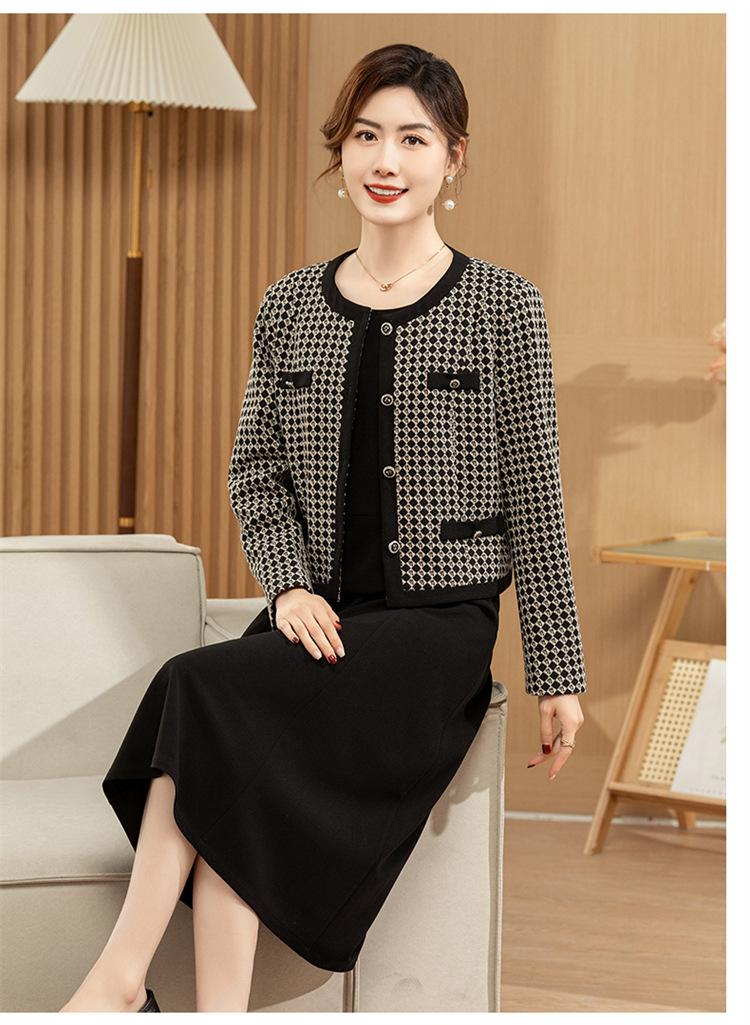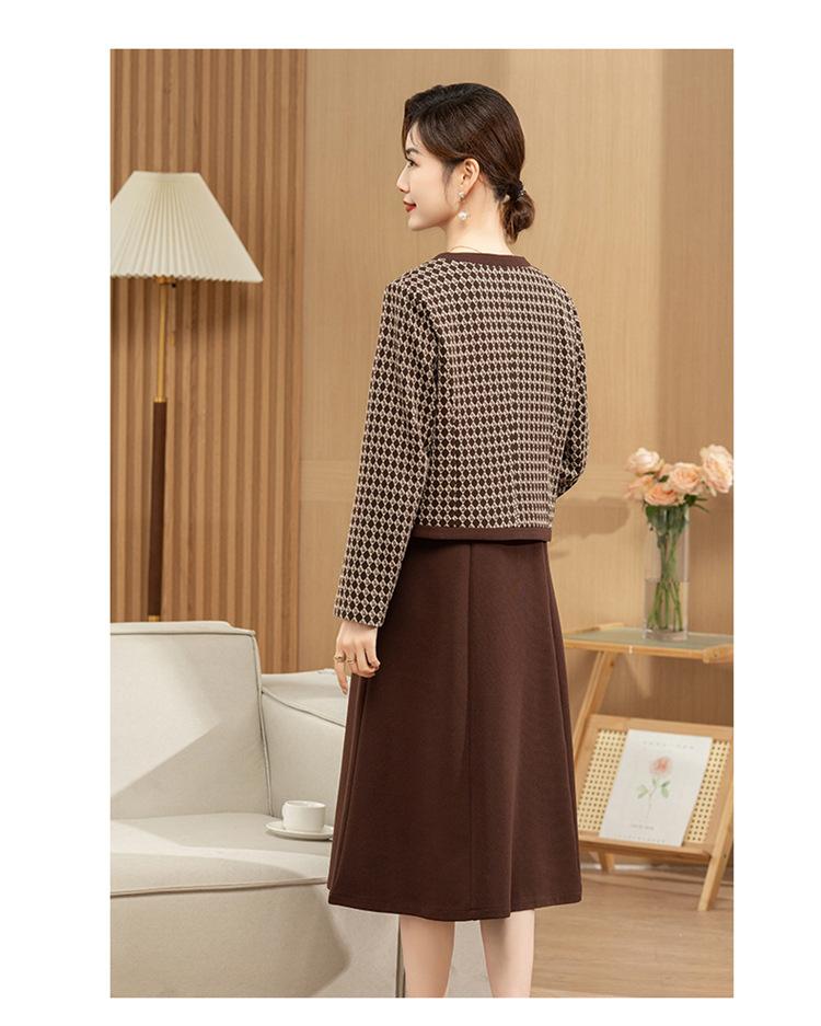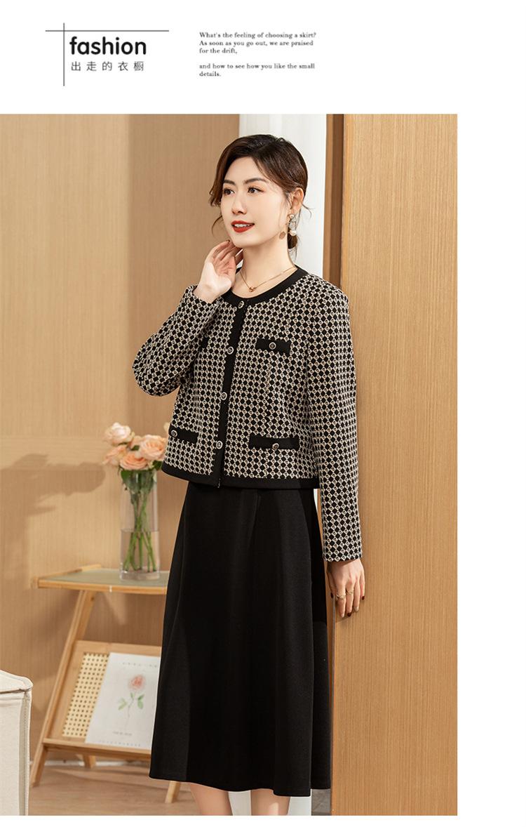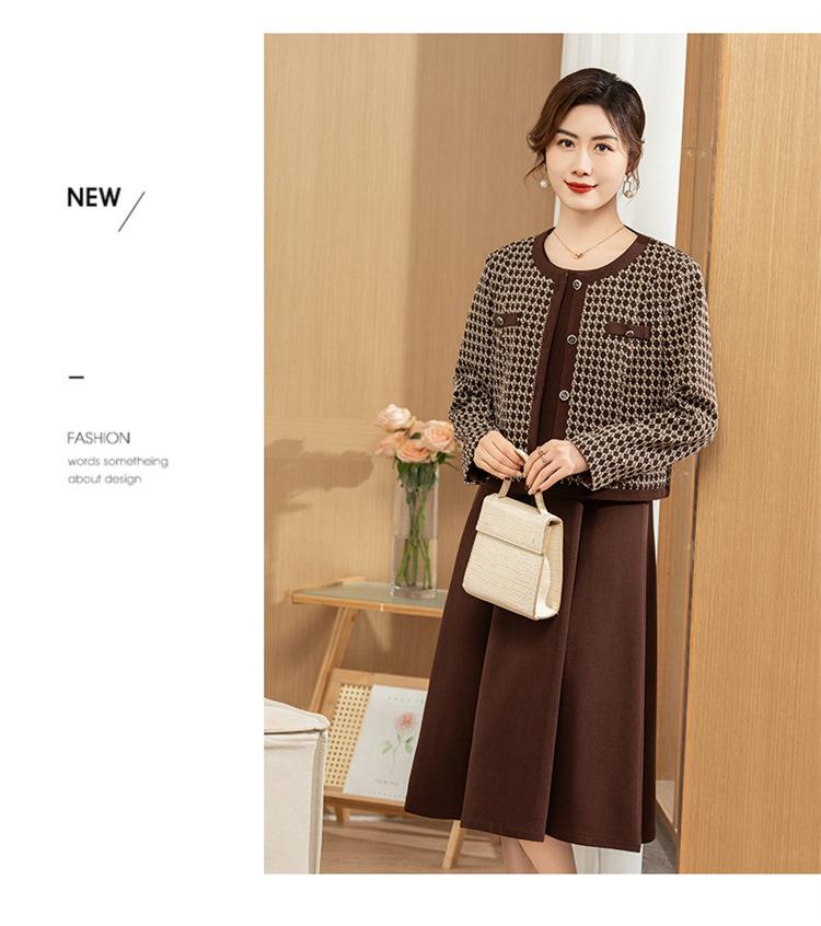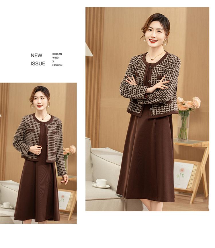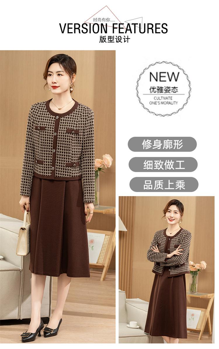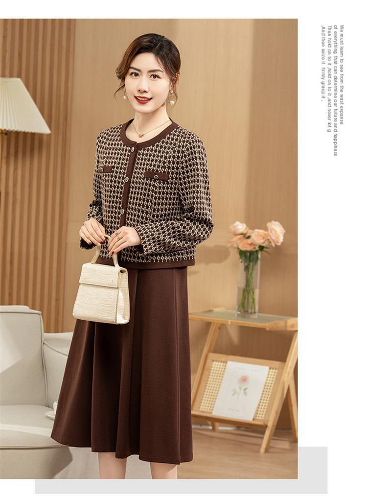 Ropa de primavera para mamá abrigo estilo Chanel vestido nuevo traje mujeres de mediana edad y mayores ancho top temperamental de dama conjunto de dos piezas