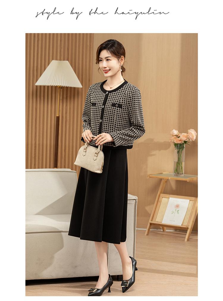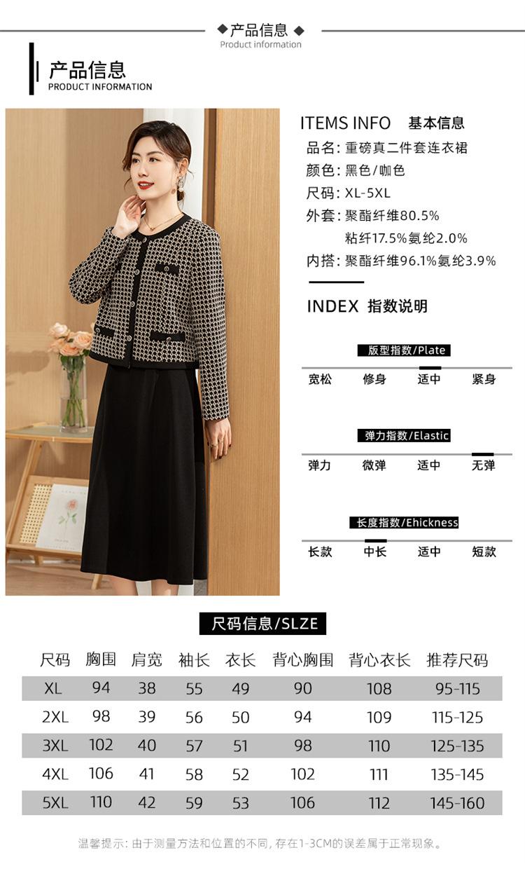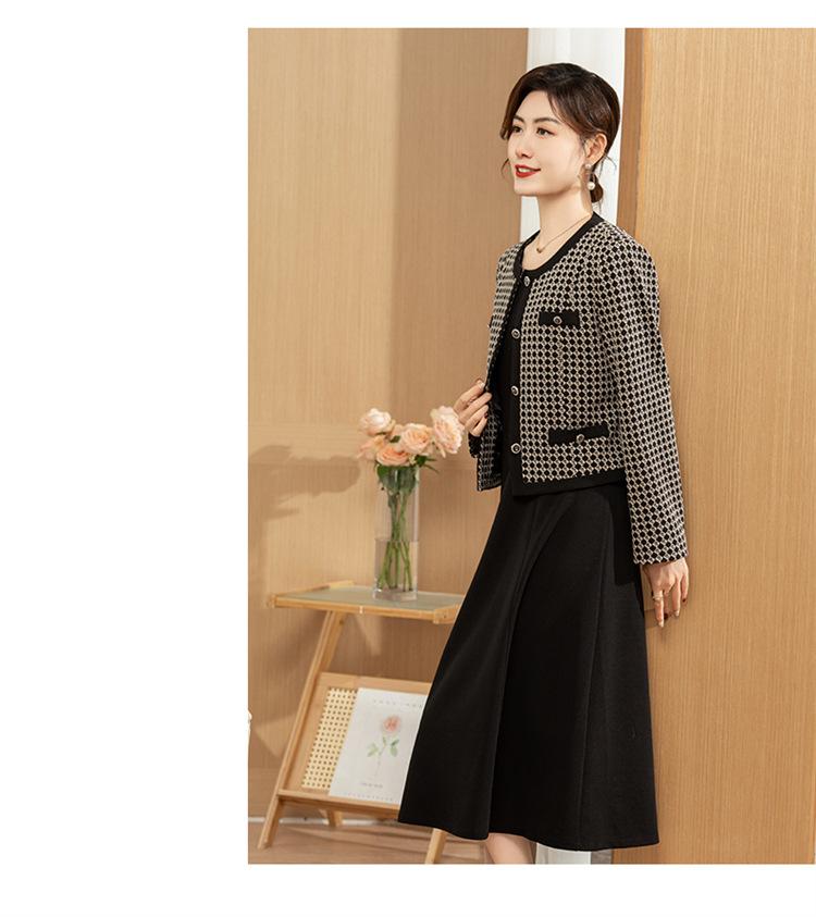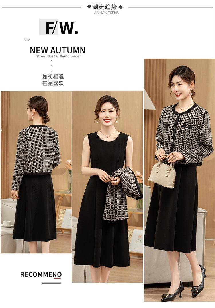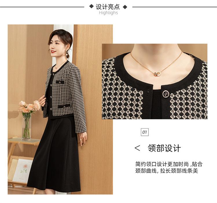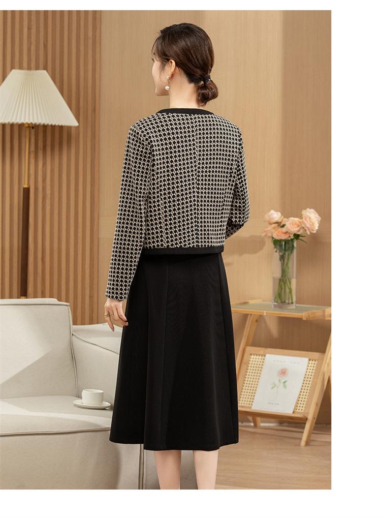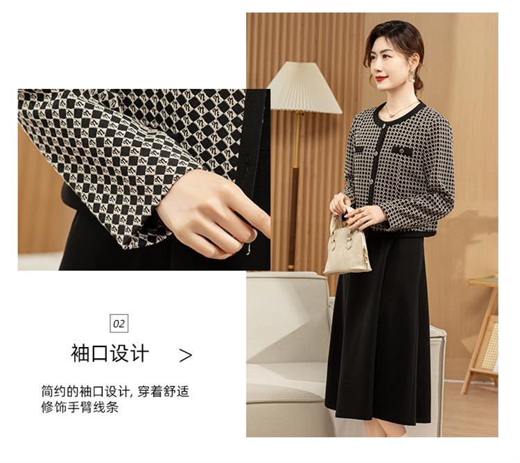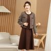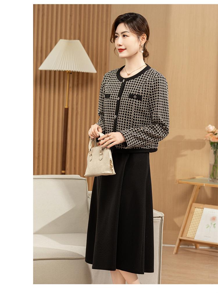 Ropa de primavera para mamá abrigo estilo Chanel vestido nuevo traje mujeres de mediana edad y mayores ancho top temperamental de dama conjunto de dos piezas