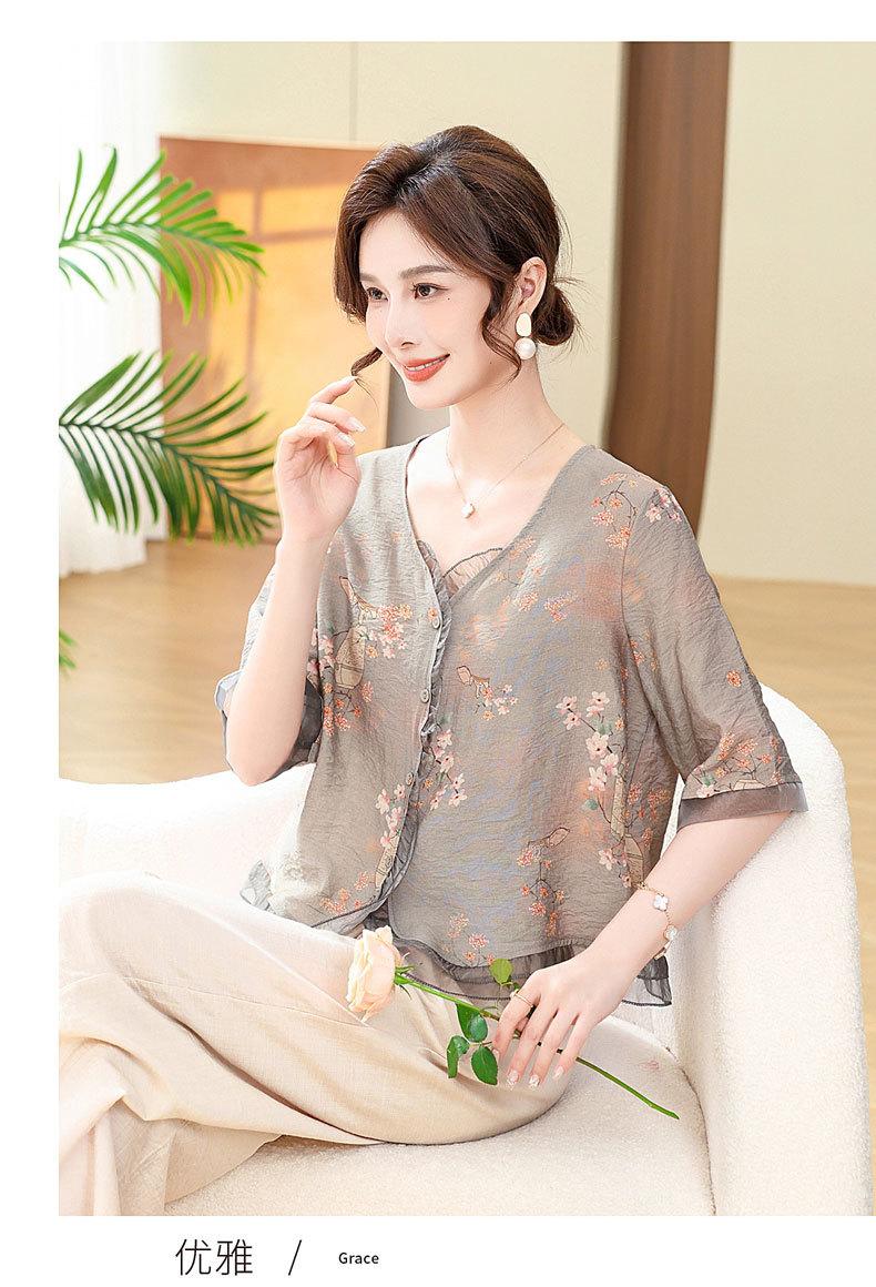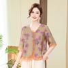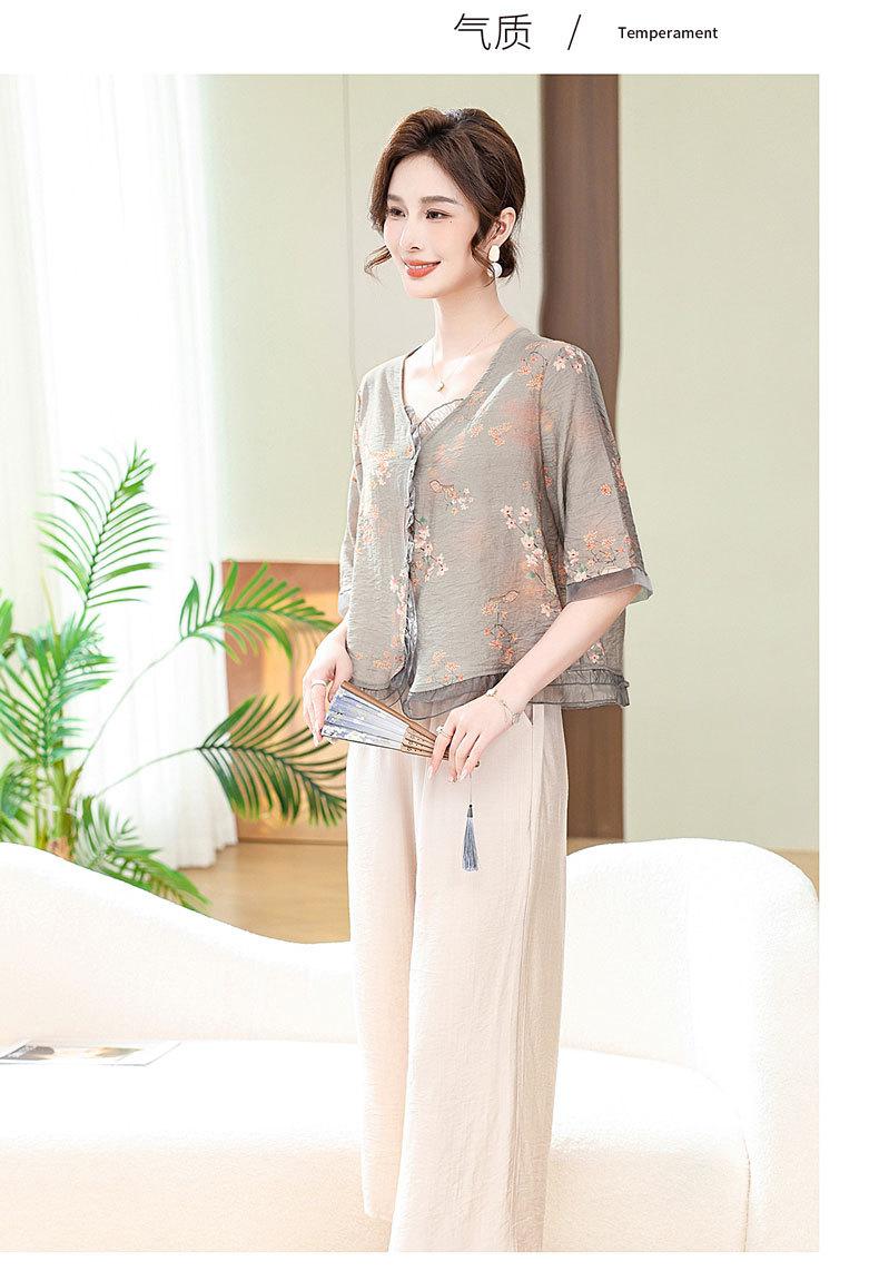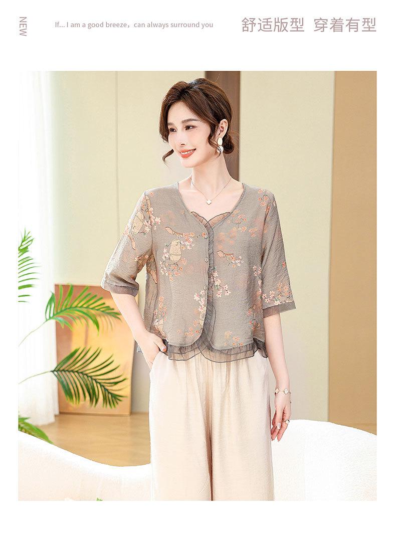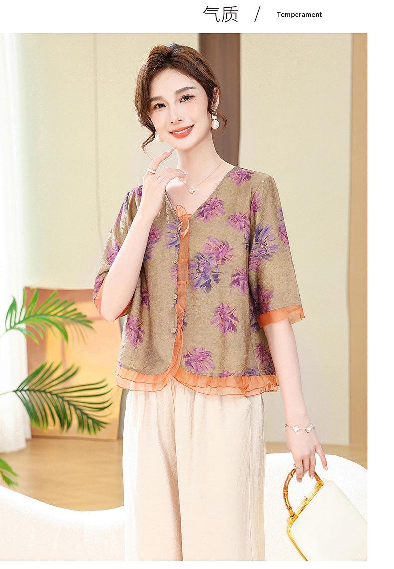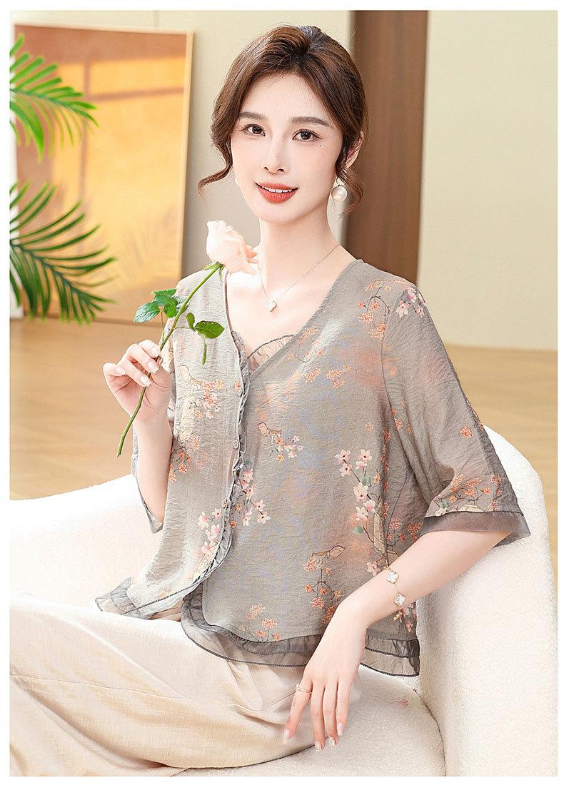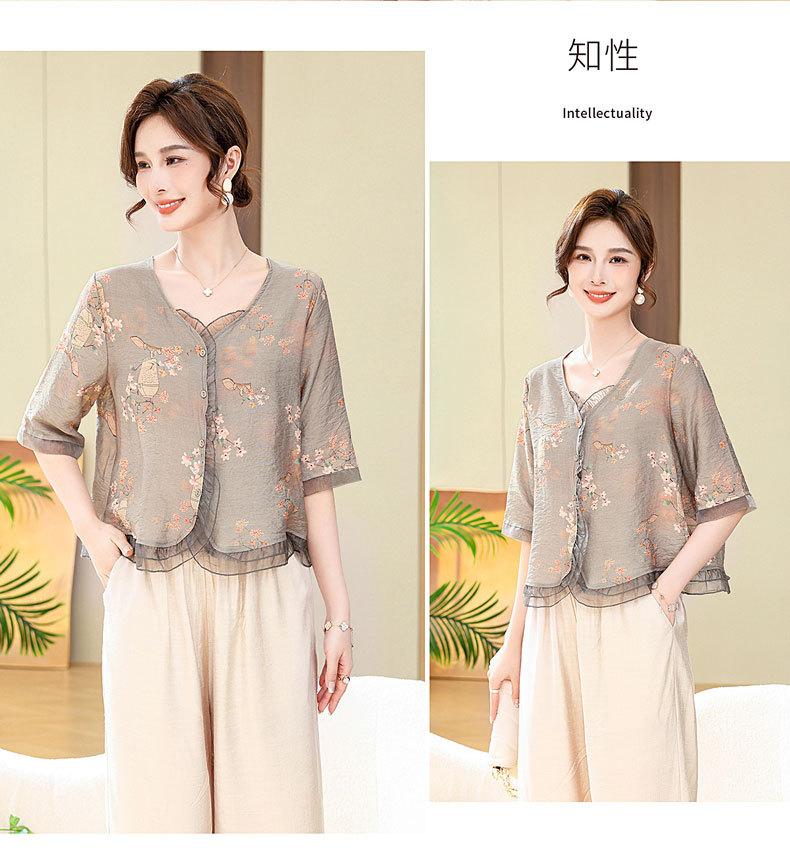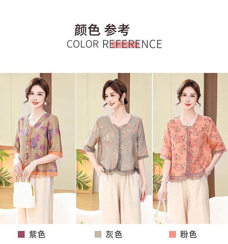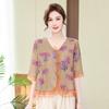 Top Delgado de Verano para Mujer Estilo Chino Corto Hilo de Gasa 2024 Nuevo 40 a 50 Años Estilo Extranjero Grado Superior