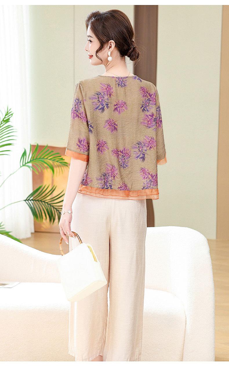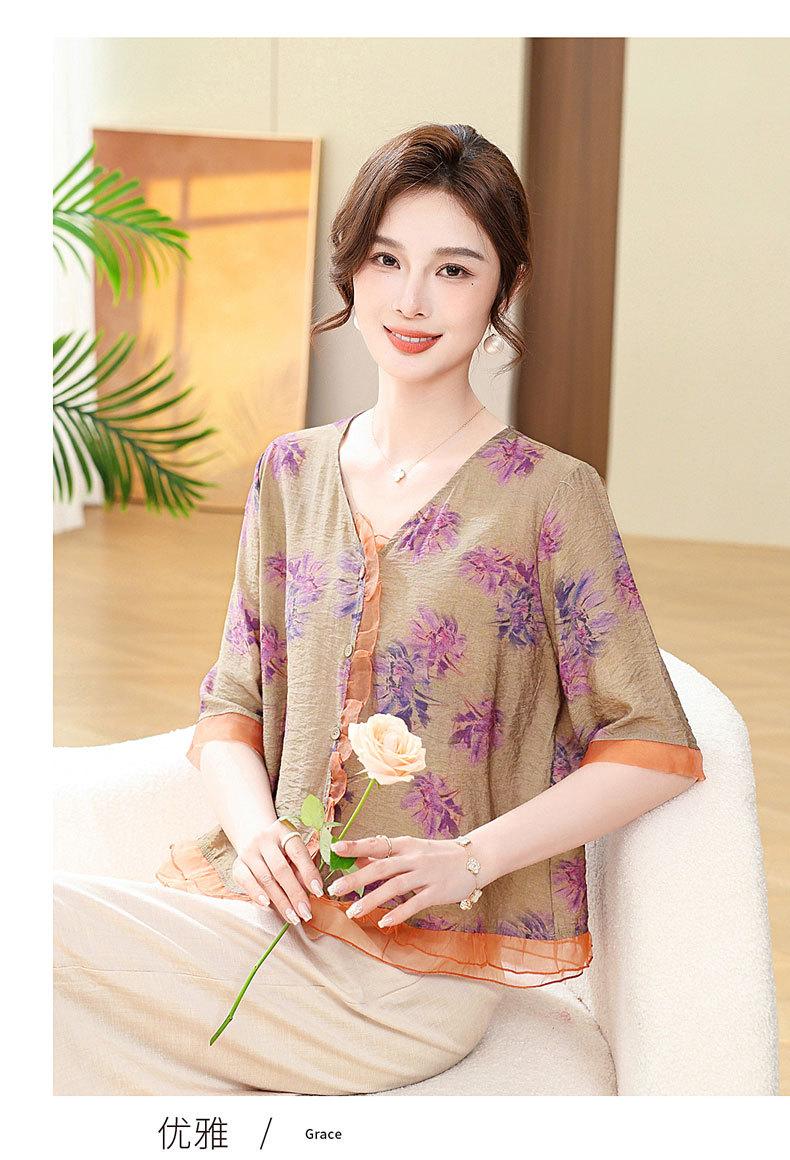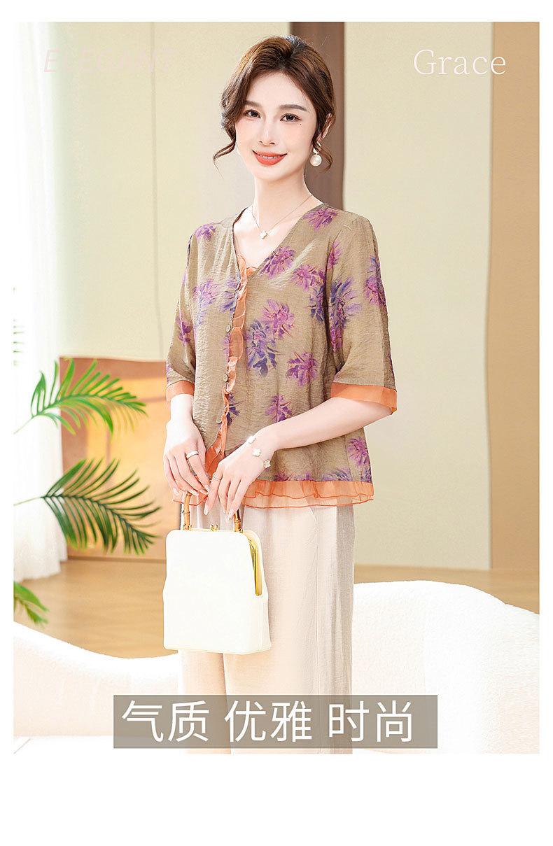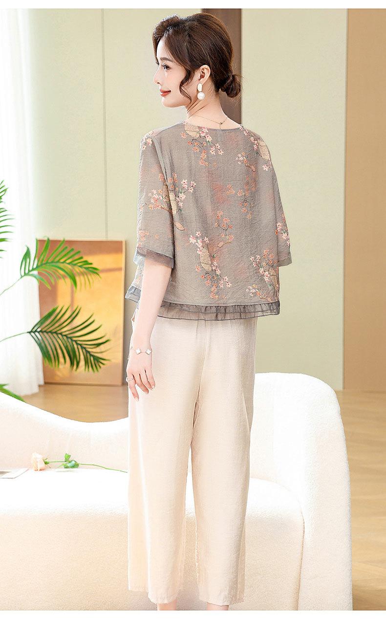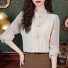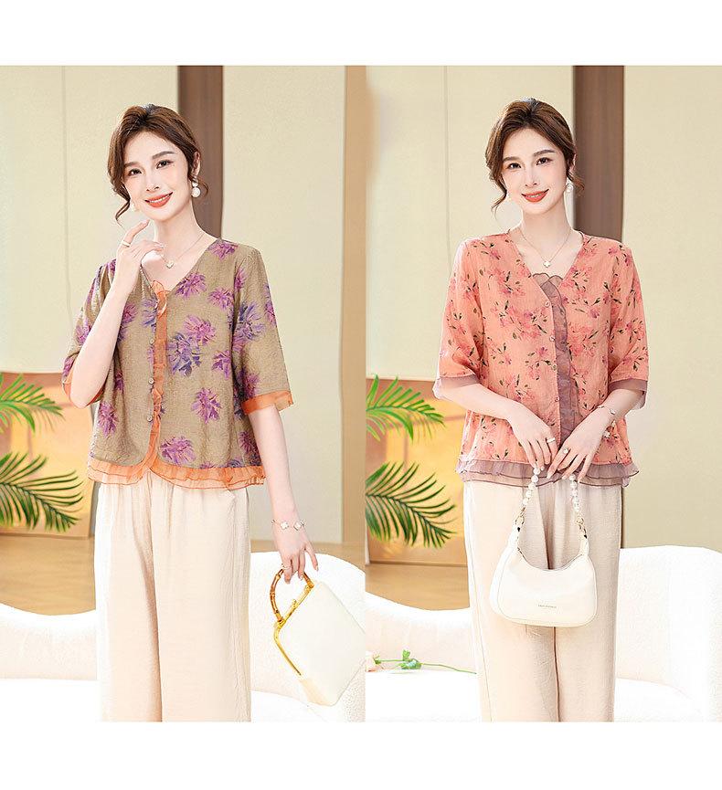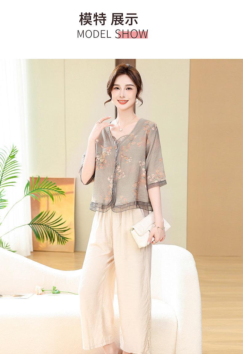 Top Delgado de Verano para Mujer Estilo Chino Corto Hilo de Gasa 2024 Nuevo 40 a 50 Años Estilo Extranjero Grado Superior