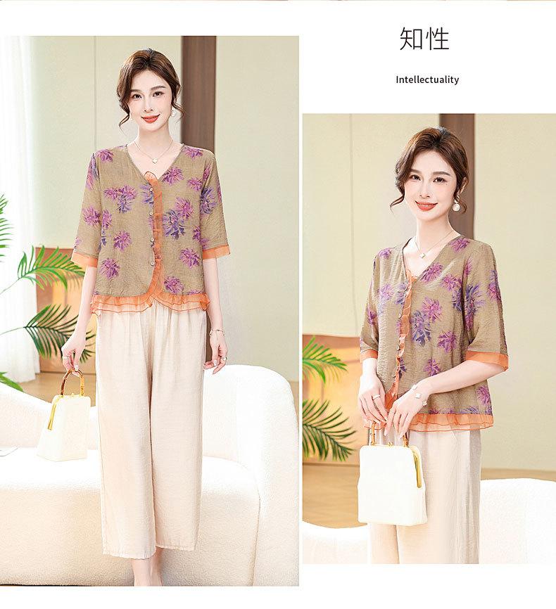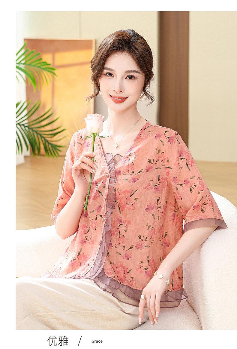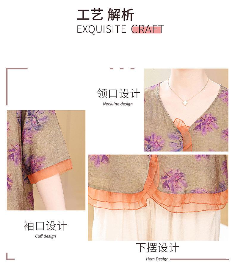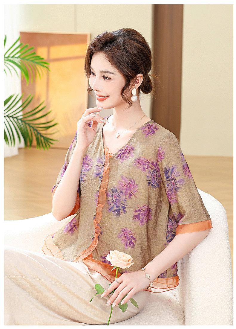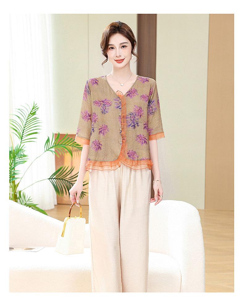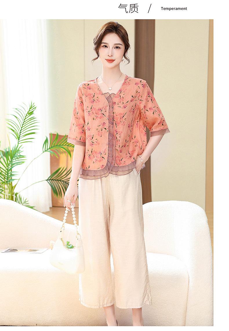 Top Delgado de Verano para Mujer Estilo Chino Corto Hilo de Gasa 2024 Nuevo 40 a 50 Años Estilo Extranjero Grado Superior
