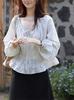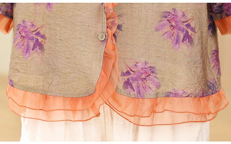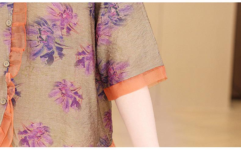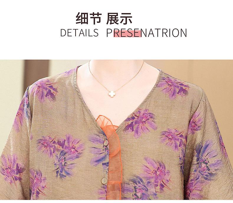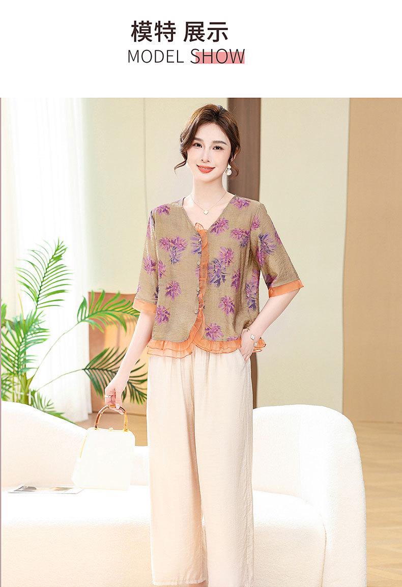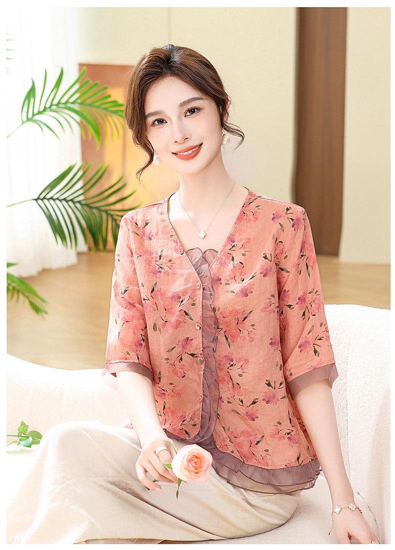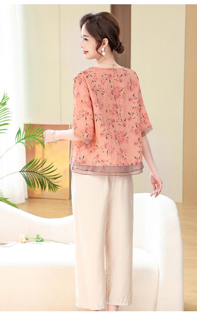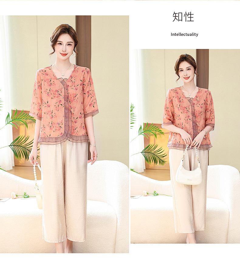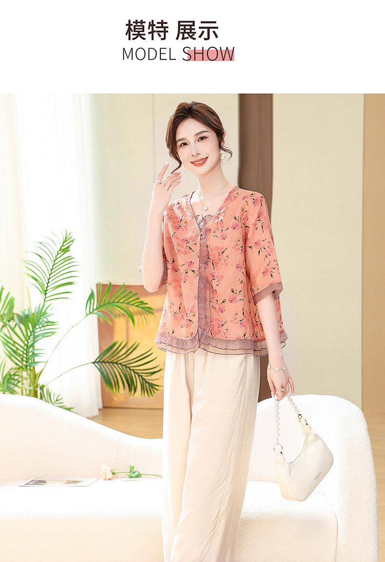Top Delgado de Verano para Mujer Estilo Chino Corto Hilo de Gasa 2024 Nuevo 40 a 50 Años Estilo Extranjero Grado Superior