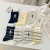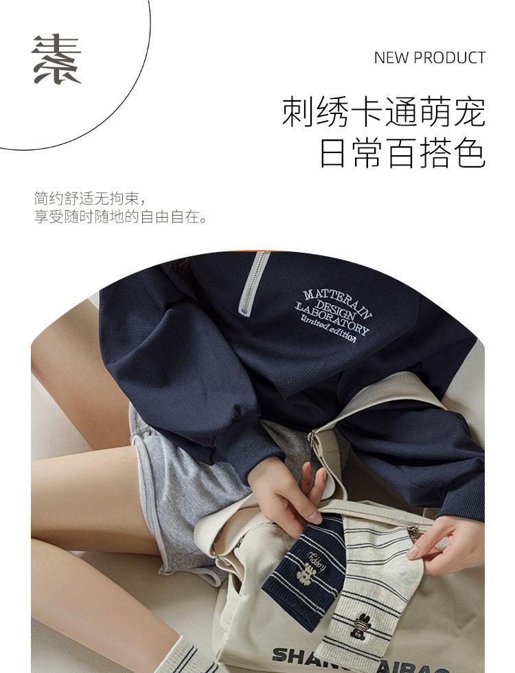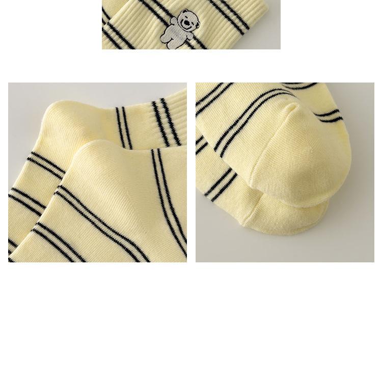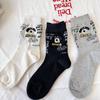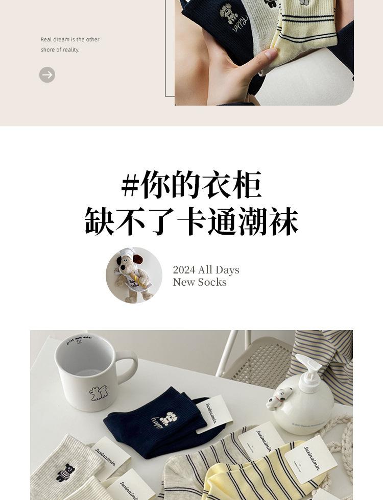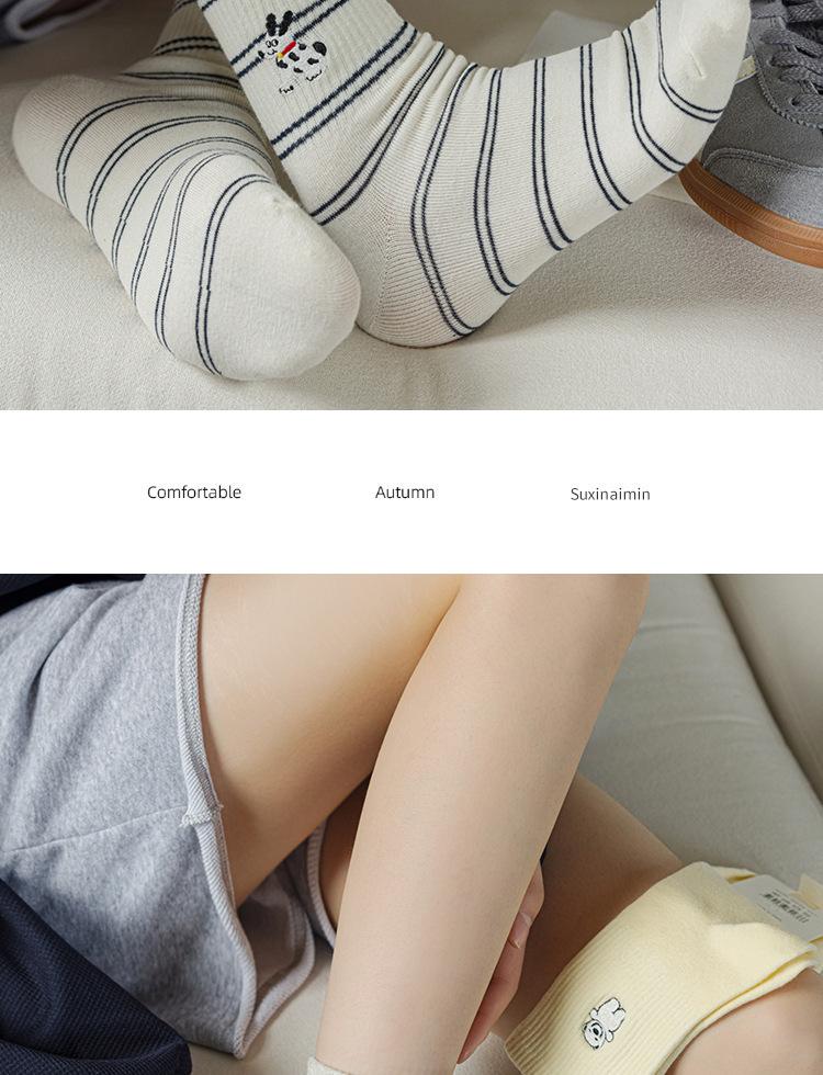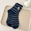 Calcetines nuevos de otoño con rayas y bonitos bordados de perro, calcetines de cachorro apilados, calcetines para mujer al por mayor