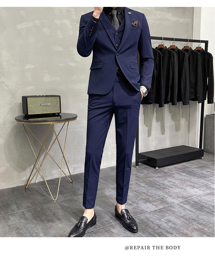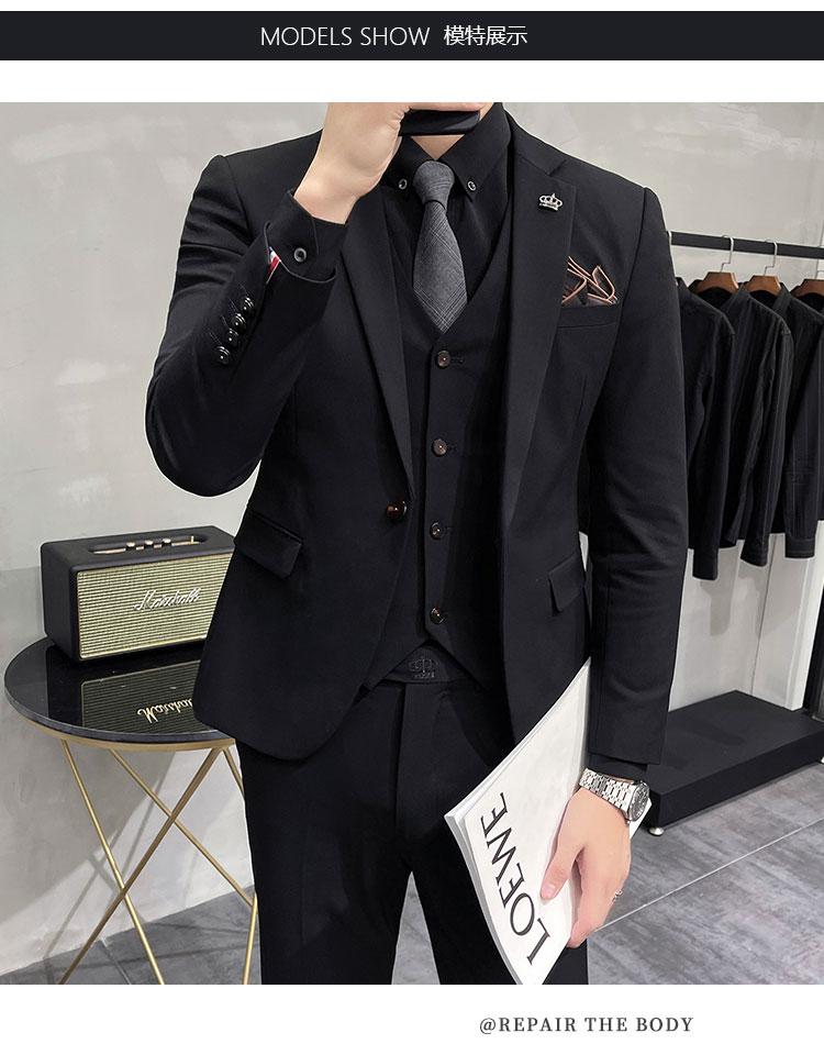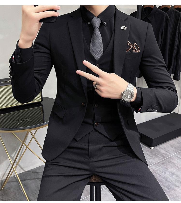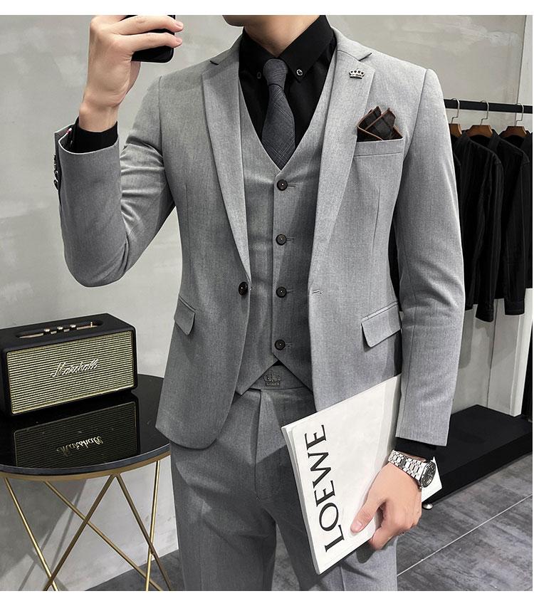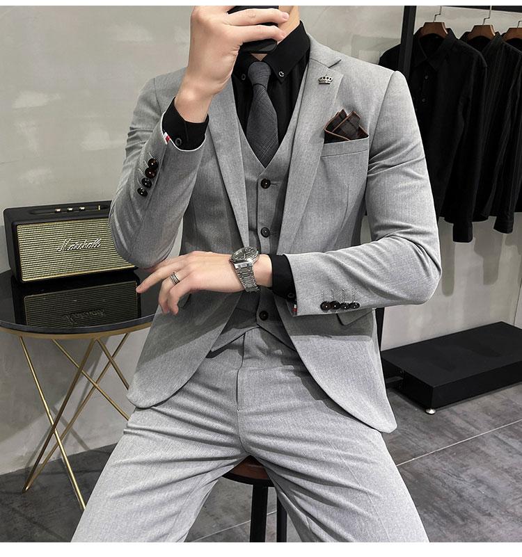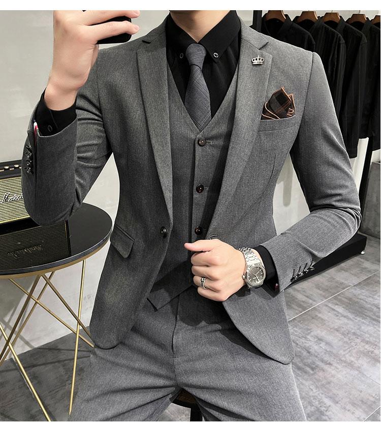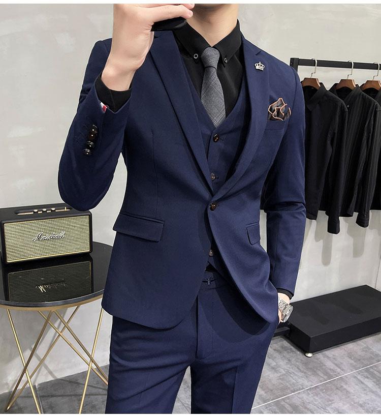 Traje Slim para Hombre de Cuatro Estaciones 2025 Traje de Tres Piezas para Hombre Ropa de Negocios Vestido de Banquete Traje para Hombre Hombre