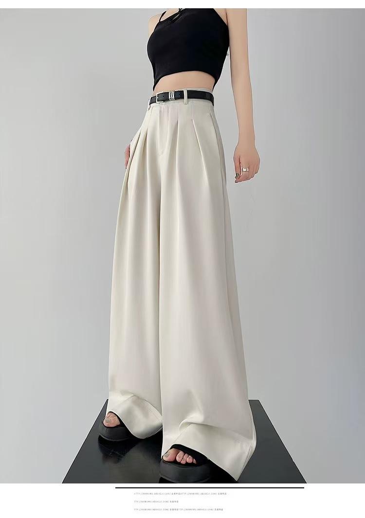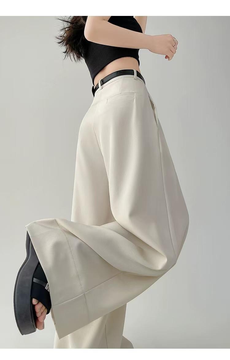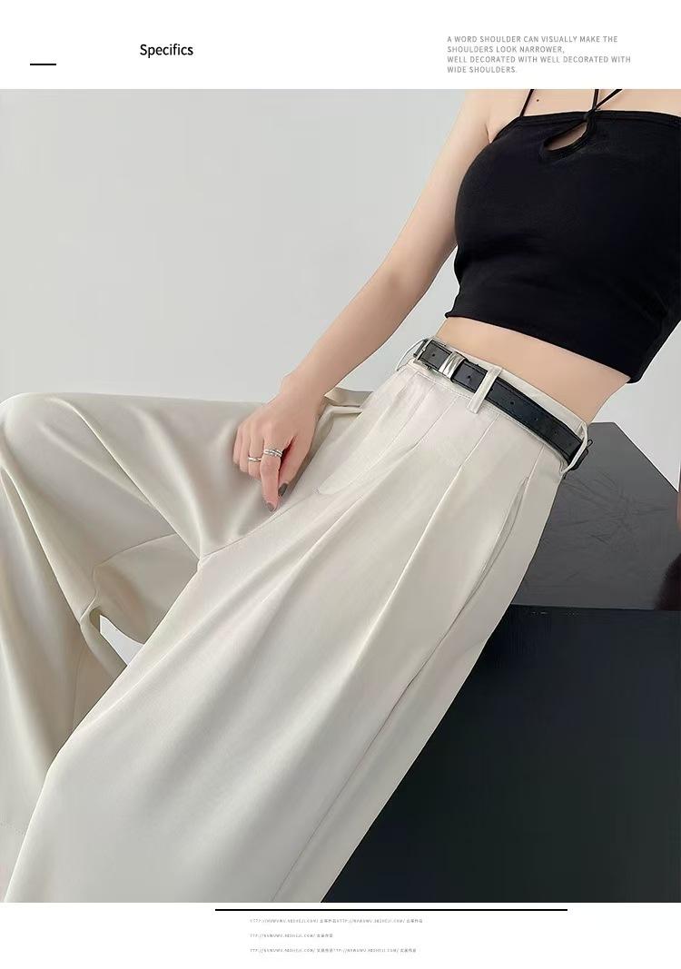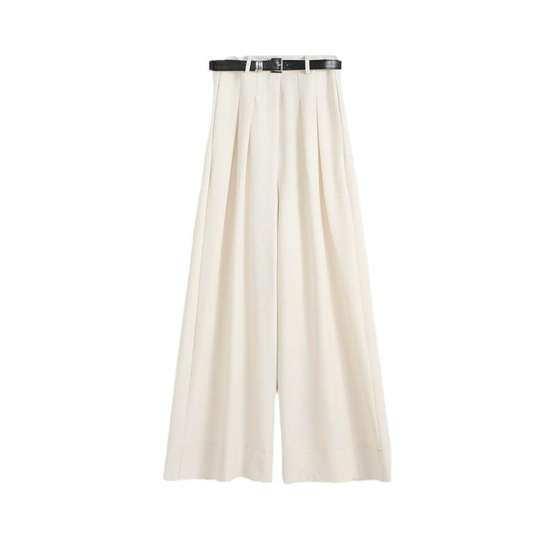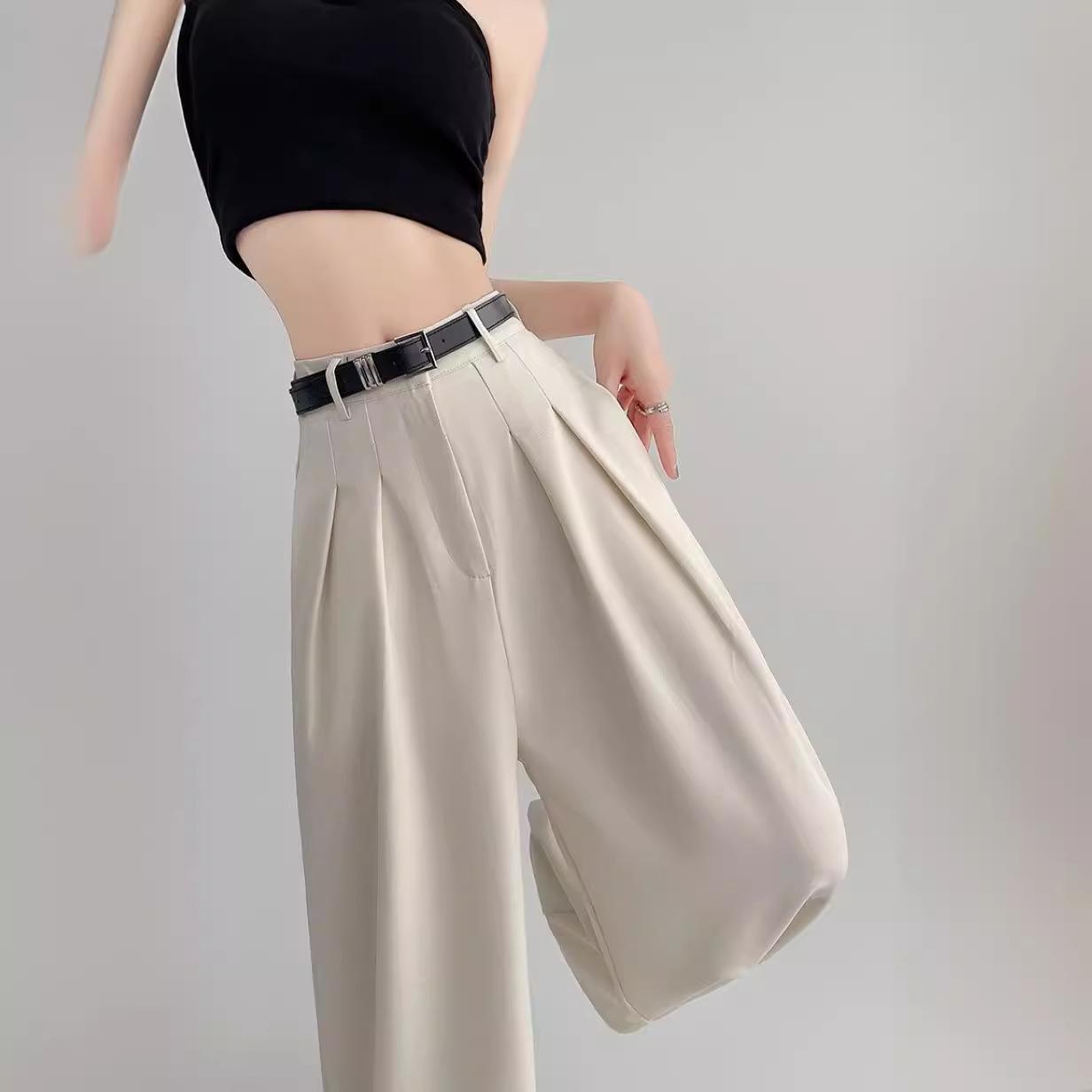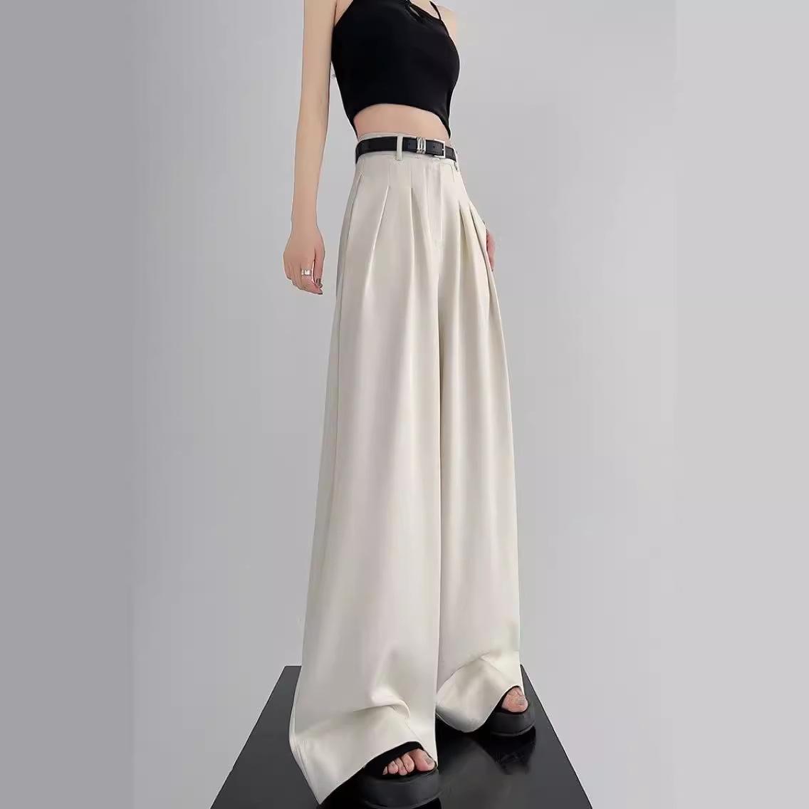 Pantalones de Traje de Alta Gama para Mujer Primavera y Verano 2024 Casual Elegante Cintura Alta Sueltos Drapeados Versátiles Rectos Pierna Ancha Largo hasta el Piso