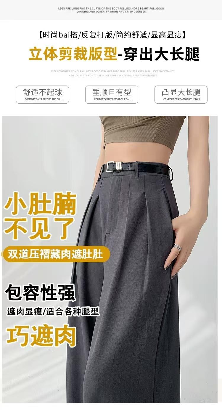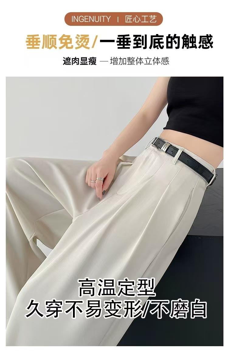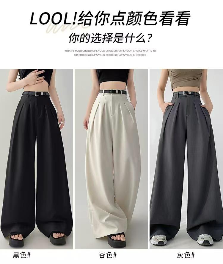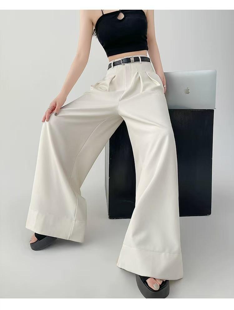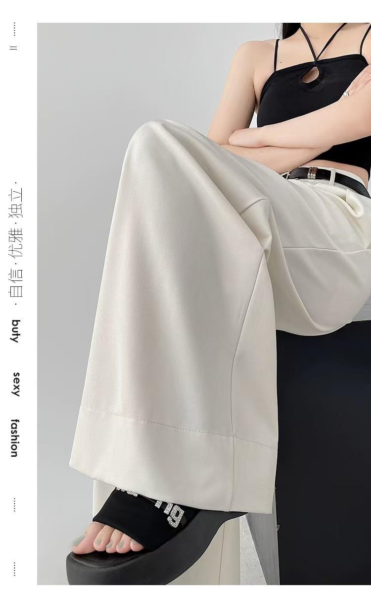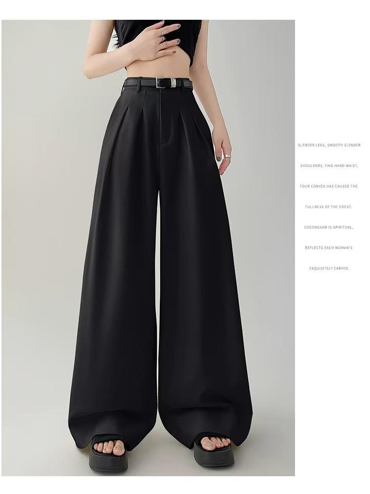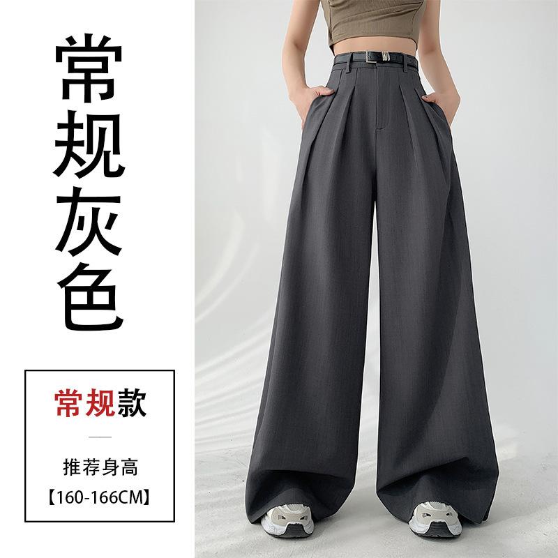 Pantalones de Traje de Alta Gama para Mujer Primavera y Verano 2024 Casual Elegante Cintura Alta Sueltos Drapeados Versátiles Rectos Pierna Ancha Largo hasta el Piso